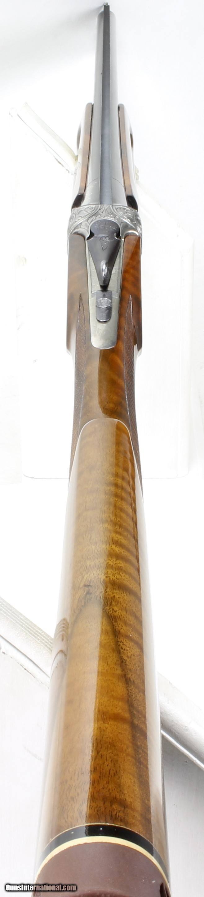 Description: Weatherby Regency Field Grade O/U 12Ga. Shotgun. SN #R01800. Made in Italy. ENGRAVED RECEIVER MARKED REVERA VASCO. ITALIAN MASTER ENGRAVER WHO DOES A LOT OF HIGH DOLLAR GUNS. LOP 13 7/8". Chamber 2 3/4". DAH 2 1/4"- DAC 1 1/2". Chokes are Top: Full & Bottom: Modified. 28" Vent Ribbed Barrel with EXCELLENT Bright and Shiny Bores. The Blued Barrel and Engraved Receiver are in EXCELLENT condition. VERY NICE High Grade Checkered Pistol Grip Stock and Forend. Rubber recoil pad. Single Select Gold Plated Trigger. VERY NICE ALL-AROUND O/U SHOTGUN. Weight: 7.3 lbs. Trigger Pull: 6 1/2 & 7 3/4 lbs. More photos available upon request. Ships to Lower 48 W/ Insurance $50.00. SOLD Shotgun Gauge: 12 Gauge Manufacturer: Weatherby Model: Regency Serial Number: R01800 Barrel Length: 28 Condition: Excellent Metal Condition: Excellent Wood Condition: Excellent Bore Condition: Excellent Barrel Type: O/U Butt Pad: Rubber LOP: 13 7/8 Finish: Blue / Silver Weight: 7.3 lbs. |