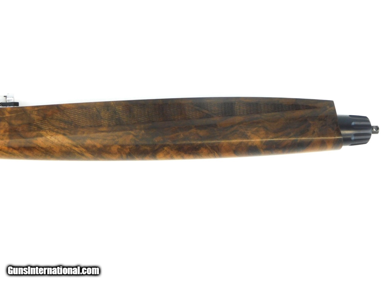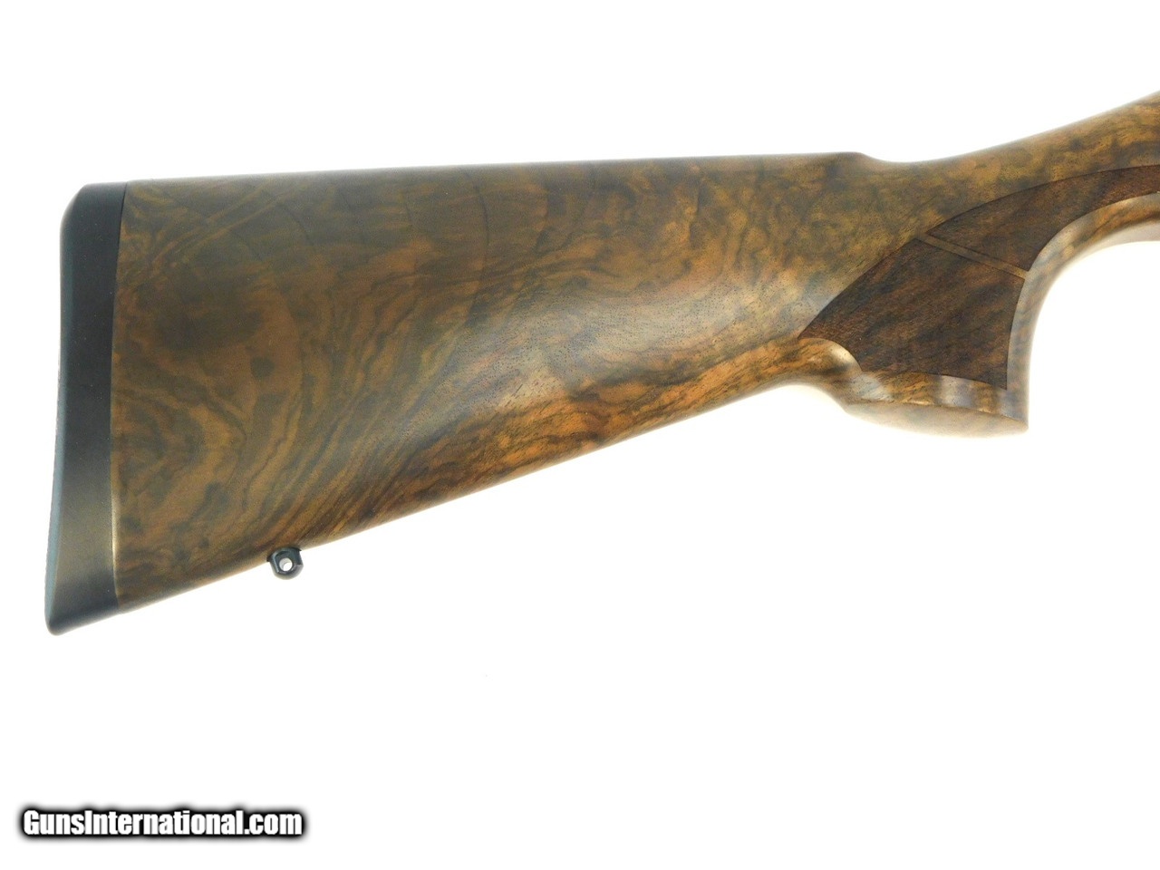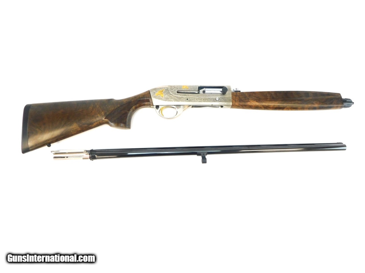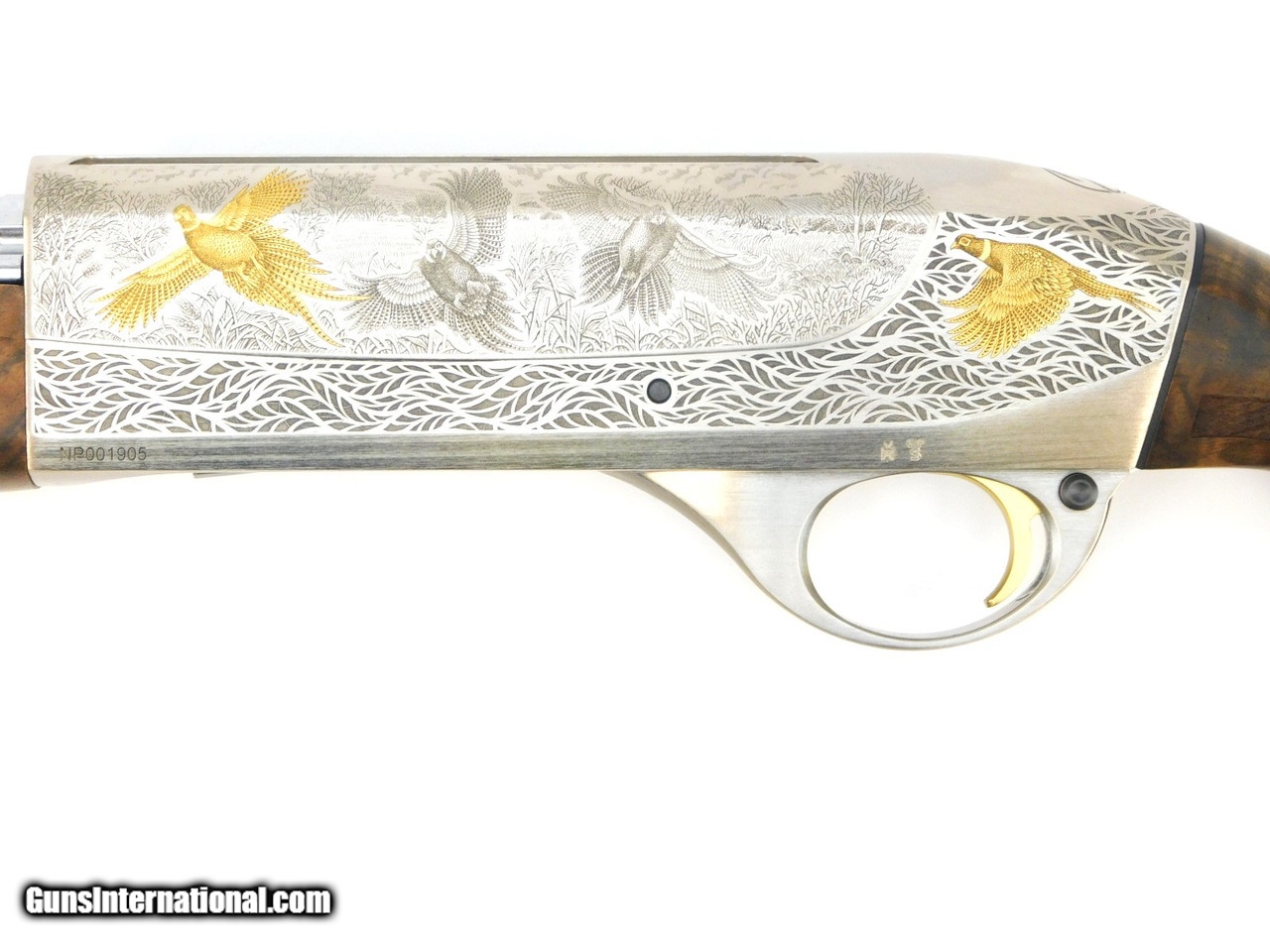 Description: Manufacturer: Weatherby Model: 18i Deluxe Limited Semi-Automatic SKU: IDL2028MAG Serial Number: NP001905 Gauge: 20 Gauge, 2.75" & 3" Capacity: 4 + 1 Rounds Barrel Length: 28" Ventilated Top Rib, Chrome Line Bore Chokes: Crio Plus Chokes in C, IC, M, I, F Receiver: Hand Polished Brushed Nickel with Custom Engraving and 24K Gold Inlays - Engraving done by Italian artist Bottega Incisioni di Cesare Giovanelli Stock: Exhibition Grade Walnut Stock and Forend, Matte Finish Length of Pull: 14.75" Overall Length: 49.5" Sights: LPA Fiber Weight: 6 lbs All items are factory new in box unless otherwise stated. Based on the information available to us, the above specifications describe this item to the best of our knowledge. For further information, please contact or visit the manufacturer's . SOLD |