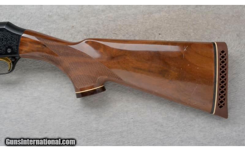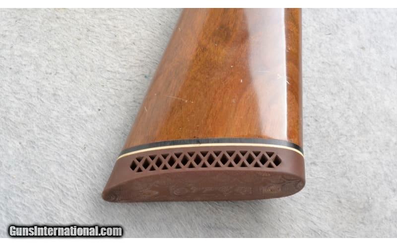 Description: This Weatherby Model Eighty-Two is a right hand semi-auto shotgun in 12 Ga. It has a 28 inch barrel with a ventilated rib. A brass bead front sight. With a 3 inch chamber it comes with an IC choke tube in the gun. The butt stock is a checkered grip walnut with a rosewood cap. The forearm is a checkered grip walnut with finger grooves. 12 Gauge SOLD Chambers: 3 inch. Metal Condition: Good. Shows light use. Barrel has some foreign substance on it. Wood Condition: Good. Some light handling marks. Bore Condition: Shiny. Barrels: 28 inch barrel with a ventilated rib. Stock Dimensions: LOP 14 inches. Fore End: Checkered grip walnut with finger grooves. Butt Pad: Weather brown rubber recoil pad. Weight: 8 Lb. 0 Oz. Sights: Brass bead front. Chokes: Comes with an IC choke tube. Item Location: Richfield, WI |