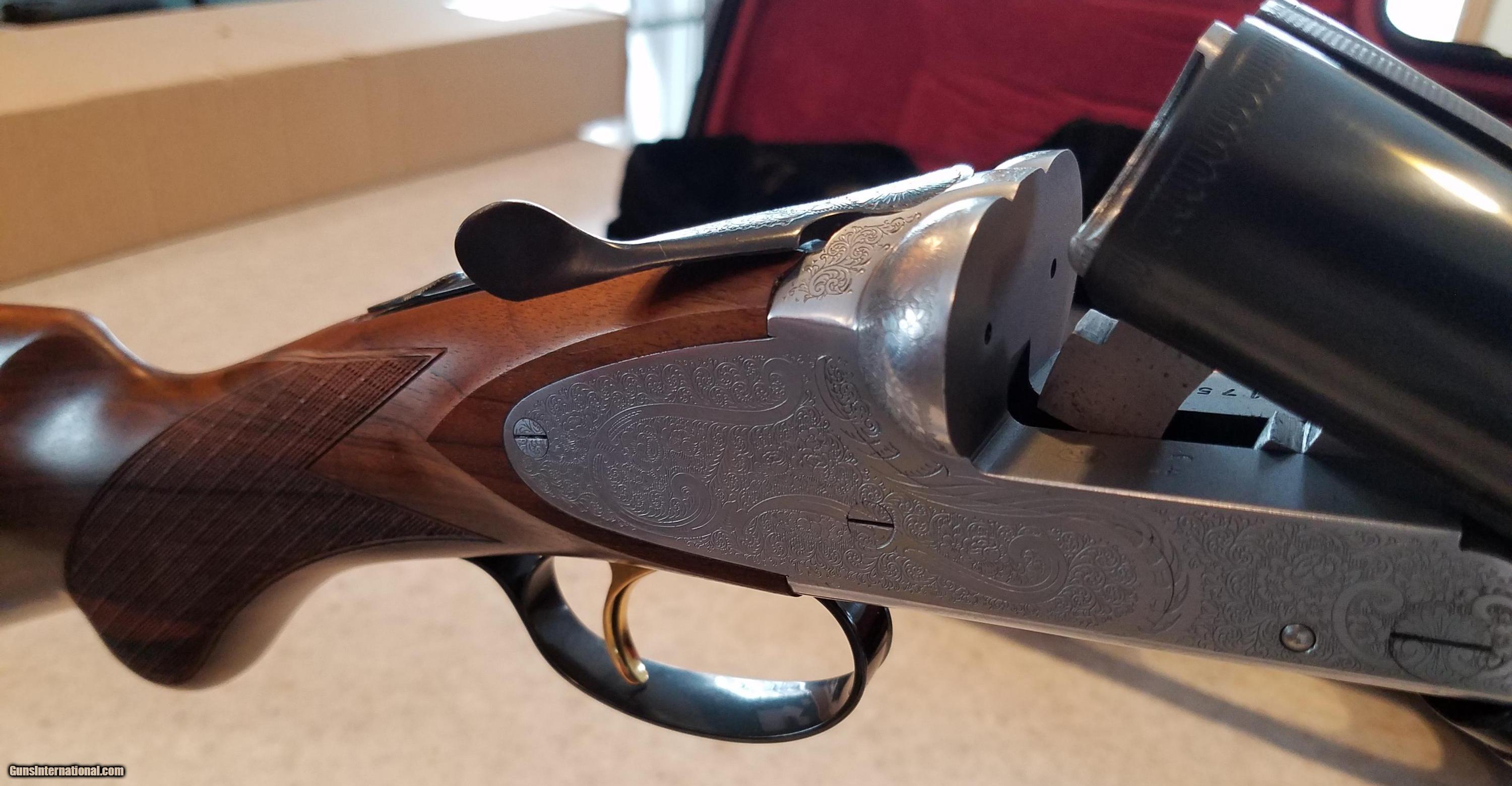 Description: This beautiful Weatherby has been on display for many years with very minimal use. This listing is a Weatherby Athena D'Italia 12ga. SxS with 28 inch barrel in 3". Included are 3 chokes; improved cylinder, modified, and full. Gun does not show any wear and includes the original case, papers, and shipping box. Gun is 99+%. Buyer pays shipping and insurance of $40. SOLD Manufacturer: Weatherby Model: Athena D'Italia Serial Number: FS1753 Chambers: 3 inch Ejectors: Auto Condition: Excellent Metal Condition: Excellent Wood Condition: Excellent Bore Condition: Excellent Barrels: 28 inch SxS Triggers: 1 Gauge Info: 12ga Stock: Walnut Stock Comb: 1 1/2 Stock Heel: 2 1/4 LOP: 14 Finish: Oil Finished Weight: 7.25lbs Sights: Single bead Chokes: 3 Case: Factory hard case |