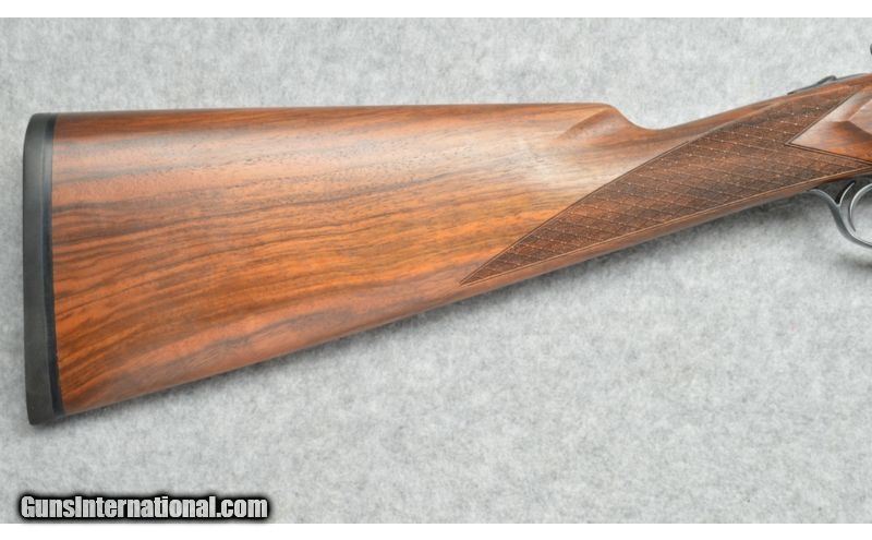 Description: SOLD Manufacturer: Modern Manufacture. Caliber Info: 20 Ga. Chambers: Side by side Break action, two round capacity. Receiver is nicely engraved. Metal Condition: Excellent, Wood Condition: Excellent, Bore Condition: Excellent, Barrels: 26 inch round blue barrels. Triggers: Dual triggers. Front right barrel, rear left barrel. Stock: Checkered straight grip (English style) walnut stock. Stock Dimensions: Front trigger is 14 3/8 inch length of pull, rear trigger is 13 3/8 inch length of pull, Fore End: Checkered walnut fore-end to match the stock. Butt Pad: Black rubber recoil pad. Weight: 6 pounds. Sights: Single brass bead at the muzzle. Chokes: Interchangeable chokes. Item Location: Berlin, MA |