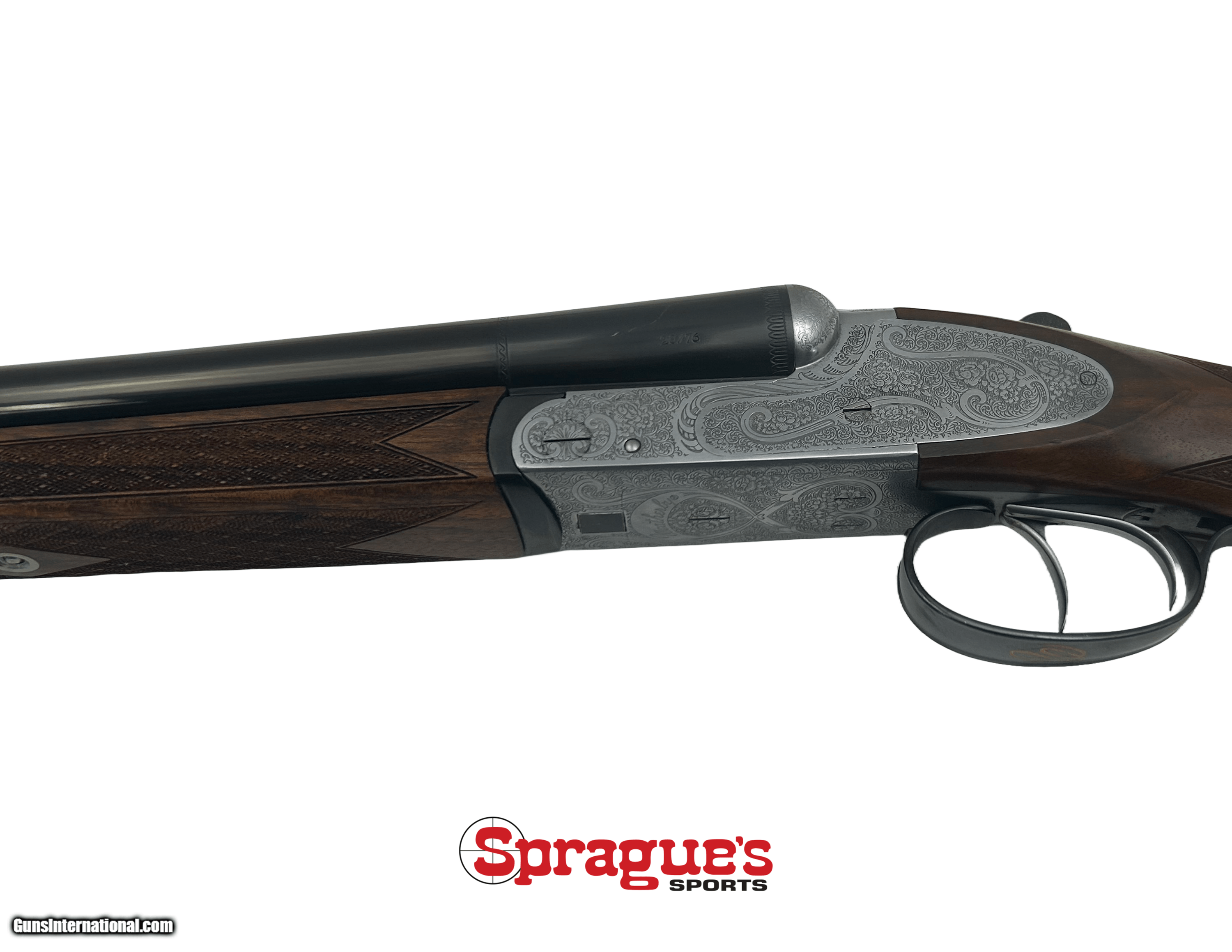 Description: Weatherby D'Italia Made by Fausti 20ga 26inch Description: Manufacturer: Weatherby Model: Athena D'Italia Gauge: 20 GA Manufactured: 2005-2011 Barrels: 26" solid rib fluid steel barrels Front Sight: Metal bead Finish: Blued Action: CoinFinish Side Plate SXS, mechanically solid, extractors, double triggers Grip Stock: Excellent Scottishcheckered straight grip stock - splinter forearm, 95% (+/-) wood finish with a few handling dings/dents to the butt stock, straight comb, near perfect scotish checkering Condition: Excellent used condition in and out! Recoil Pad: RBlack Rubber pad Length Of Pull: 14 3/8" LOP Weight: 6.5lbs Serial Number: FS1346 Sprague's Number: 146942 Add 3% for credit card Shipping will be actual cost. Call shipping at 928-726-0022 SOLD Shotgun Gauge: 20 Gauge |