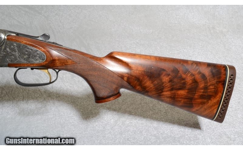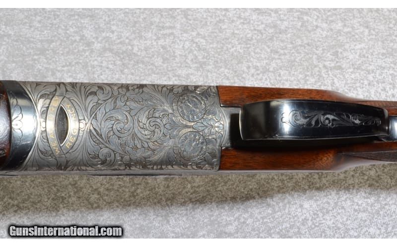 Description: this shotgun is coupled with a stunning high grade level factory stock that illustrates a detailed wood grain full of tiger stripe designs, sun bursts, and dark wood grain patterns flowing throughout. These?were?manufactured in Italy and imported for only a few years from 1972 to 1980. Their reliability and?beauty makes them highly?sought after and the limited production run has made them into a rare collectible, especially ones with high grade wood like this. The?engravings add beautiful depth and character to the firearm. Since it was hand engraved each stroke?of the engraver's tool tells a story and elevates this shotgun to a true work of art (engraver?signature under trigger guard). The underside of the receiver is also marked "WEATHERBY / REGENCY"?in gold. The top left side of the monobloc is marked "Weatherby / 12?GAUGE" while the top right side of the monobloc is marked "MADE IN ITALY". This shotgun comes with a ventilated brown factory Weatherby recoil pad, dual?ejectors, single selective trigger (SST), and a vented rib which facilitates rapid target acquisition. Additionally, this shotgun has barrels of full and modified chokes, and the barrel bores are in excellent condition.?This beautiful shotgun would make a wonderful addition to anyone's collection. 12 Gauge SOLD Metal Condition: Excellent Condition Fully Engraved Receiver Wood Condition: Beautiful Fine Grade Walnut with Deep Figuring Barrels: 28" Over/Under Barrels Triggers: Selectable Trigger Stock Dimensions: "13 7/08"" LOP 1 3/8"" DAC, 2 1/4"" DAH, 1/4"" Cast Off Fore End: Fine Walnut Modified Beaver Tail with Diamond Checkering Weight: 7 3/8 Lbs Sights: Vented Rib with Front Bead Chokes: Modified / Improved Cylinder Item Location: Tulalip, WA |