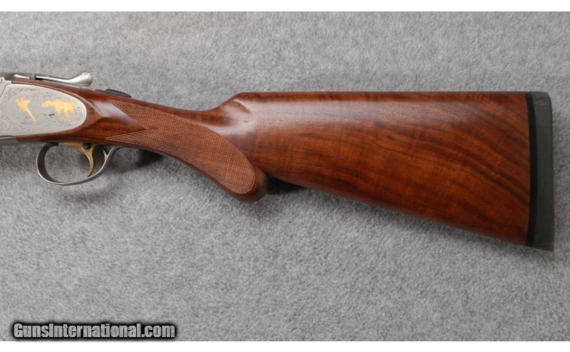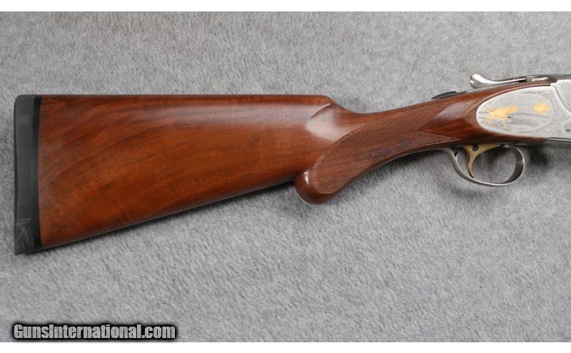 Description: 12 Gauge SOLD Chambers: "3"", over and under. Metal Condition: Very good. Wood Condition: Very good. Bore Condition: Very good. Barrels: "28"", blued. Triggers: Single selective. Stock Dimensions: "1 1/2"" DAC, 2 1/4"" DAH, 14 1/4"" LOP. Fore End: Matching checkered walnut. Butt Pad: Rubber pad. Weight: 7 Lb. 14 Oz. Sights: Vent rib with single bead. Chokes: Removable choke system. Item Location: Dundee, MI |