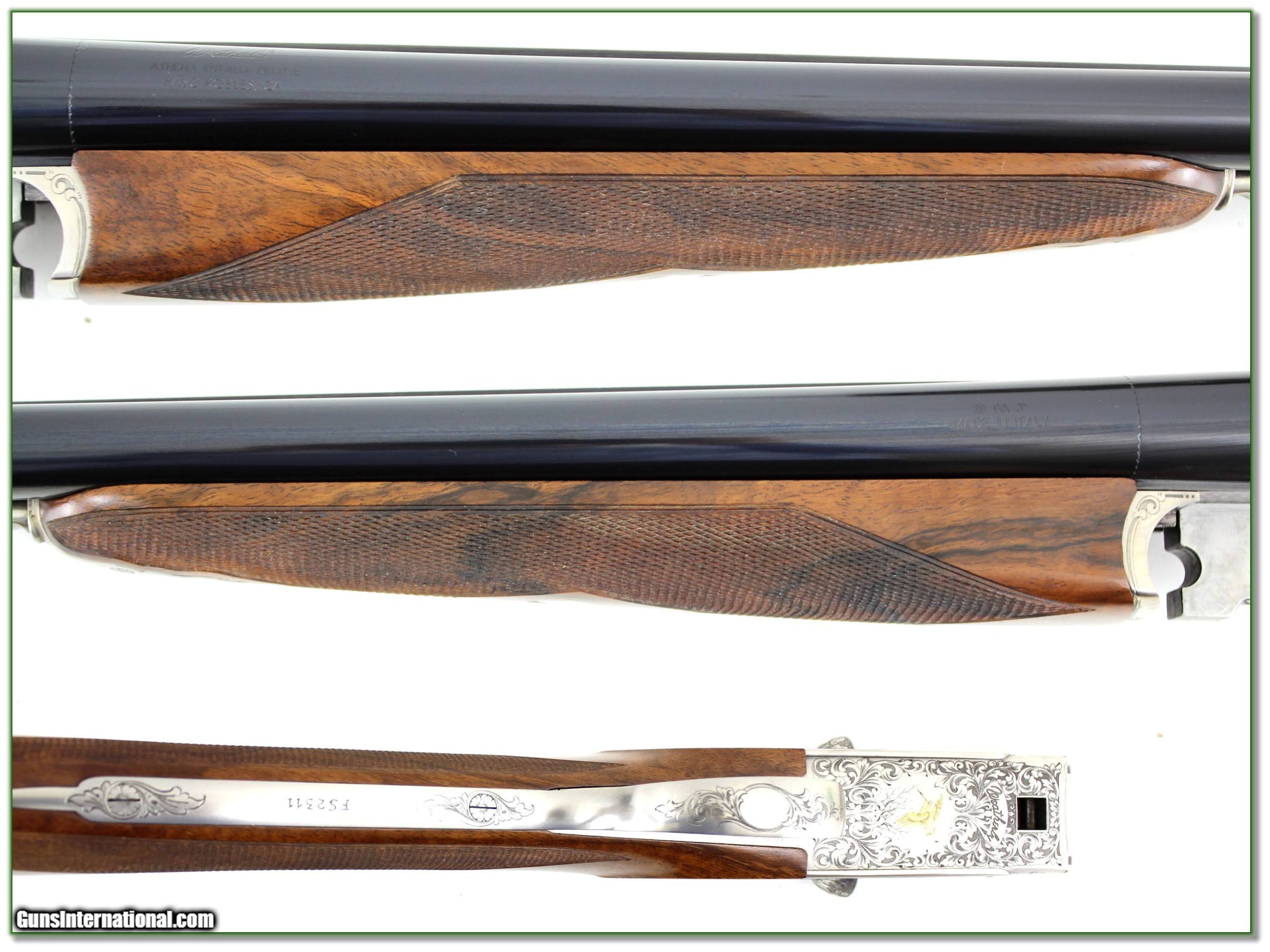 Description: This is a special order Weatherby D’Italia Deluxe Custom 20 Ga. They were made by Fausti in Italy and cost $7625 back in 2006. Only a few were made and this one in new, unfired in makers case. It has hand engraved game scenes and 24 LPI hand checkering on the beautiful walnut. It has 26in barrels and a 14in LOP and weighs 5lbs, 14 oz. It will make a fine addition to your collection of be an impressive field gun! Either way it’s a real Shooting Investment. I am selling this one on consignment and as such lay-a-way can’t be used. It does of course have the standard 3-day inspection. Shipping and insurance is $79. Please email me with any questions or larger pictures. (Consign your quality firearms with Shooting Investments for only 12%! Let me know if you have any you would like to sell!) 20-1255 Payment: Payment is by Money Order, Cashiers Check or Personal Check. I can now also accept Credit Cards (MasterCard, Visa, Discover & American Express) with a 3% convenience fee. Shipping: The shipping charge will be listed in each description. It is $39 for most firearms. Some heavy guns or those insured for over $2000 will be higher. Shipments to Alaska and Hawaii are higher because air shipment is required. Most firearms are shipped on Tuesday and Thursday and usually in 5 days of receipt of payment. We package all shipments carefully and insure them. Optics are shipped Priority Mail and most other non-firearm shipments are shipped First Class. Returns: Our return policy is simple. If for any reason you are not pleased with your purchase, you may return your item for a full refund of purchase price. Ammunition cannot be returned. It is important to us that you are happy. Guns cannot be fired or dissembled before returning them and they must be returned in the same condition as received. Notification of a return must occur with-in 3 days of receipt at your dealer. Shipping, convenience and dealer fees are not refundable and are the responsibility of the buyer. Lay-a-way: If needed, we offer a 60 day lay-a-way option on most firearms. It is 1/3 now, 1/3 in 30 days and 1/3 in 60 days. Lay-a-way firearm sales are final and if not completed the first payment cannot be returned. Consigning your firearms with Shooting Investments: We will help you get top dollar for your firearms. While most local guns shops charge 20% or more, our fee is only 12% with a minimum of $75. At your local gun shop it might take months to sell. Selling on-line provides instant access to thousands of interested buyers. You won’t find any other on-line dealer willing to sell your firearms for only 12% or listing every gun on 3 separate s. Selling through an House typically costs the seller 15% and the buyer an addition 15% (so 30%) and you have to wait several months to sell and longer to receive funds. If properly priced, we will sell your firearms in a few weeks. Send us an email or give us a call and we’ll explain how easy it is for you to get top dollar. Trading: Trading for use is really just buying your gun to re-sell. If you have a gun you want to trade, please email a picture and we will let you know what we can give or it. You will always get more if we sell it for you on consignment. Help for California Buyers: We are happy to ship to California. It is the buyer’s responsibility to make sure any item you buy is legal in your state. We are also happy to help with your purchase of a firearm from someone other than us. If you see a gun you would like to buy but the seller can’t or won’t ship to California they can ship to use and we’ll then ship it to your California dealer. The cost for this service is only $30 + shipping. Let us know if we can help! SOLD |