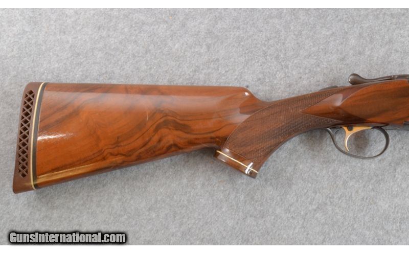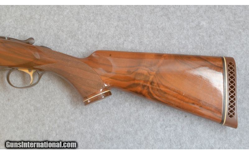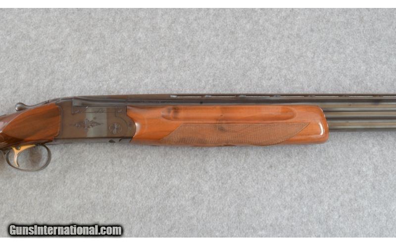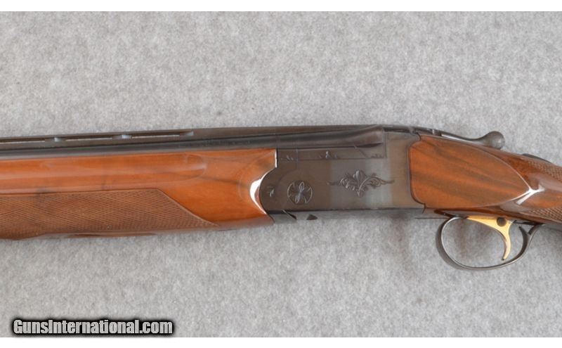 Description: 12 Gauge SOLD Chambers: 3 inch (7.62 cm) Metal Condition: Very good. Wood Condition: Very good with a few small scratches, but nothing serious. Bore Condition: Clean and clear. Barrels: 28 inches (0.71 m) Triggers: Standard gold colored trigger. Stock Dimensions: Wood with checked pistol grip. Fore End: Wood with checked grip. Butt Pad: Soft Rubber. Weight: 7 lb. 12 oz. Sights: Vented rib with gold colored BB front. Chokes: Screw in chokes. Item Location: Lone Tree, CO |