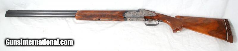 Description: WEATHERBY Regency 12 gauge O/U, Acanthus engraved coin finish sideplated action w/ Greener crossbolt, 28" bbls. w/ 2 3/4" chambers, Flat ventilated rib, Chokes: Bottom .722 / .024 / M & Top .724 / .042 / F, Single selective trigger, Automatic ejectors, Manual Safety, Highly figured pistol grip stock w/ diamond cap & Pachmayr White Line recoil pad, Fluted field-style forearm, Stock Dimensions: DC: 1 3/8" x DH: 2 1/8" x Cast: 1/4" off at Heel x LOP: 14 3/8", Weight: 7 lb. 8 oz., Condition: VG-Excellent, Made in Italy by Angelo Zoli circa 1972, Serial #R02330 (P7312) FIELDSPORT: $1295. To see and enjoy the entire inventory of fine shotguns, rifles and handguns on display in the Fieldsport Gun Room, please visit us at: FieldsportLTD SOLD |
