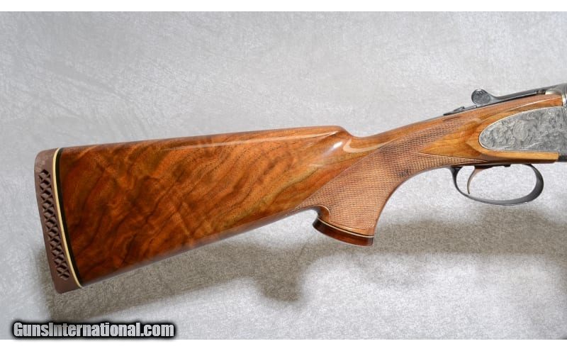 Description: Weatherby Regency Field Grade – this shotgun is coupled with a stunning high grade level factory stock that illustrates a detailed wood grain full of tiger stripe designs, sun bursts, and dark wood grain patterns flowing throughout. These?were?manufactured in Italy and imported for only a few years from 1972 to 1980. Their reliability and?beauty makes them highly?sought after and the limited production run has made them into a rare collectible, especially ones with high grade wood like this. The?engravings add beautiful depth and character to the firearm. Since it was hand engraved each stroke?of the engraver's tool tells a story and elevates this shotgun to a true work of art (engraver?signature under trigger guard). The underside of the receiver is also marked "WEATHERBY / REGENCY"?in gold. The top left side of the monobloc is marked "Weatherby / 12?GAUGE" while the top right side of the monobloc is marked "MADE IN ITALY". This shotgun comes with a ventilated brown factory Weatherby recoil pad, dual?ejectors, single selective trigger (SST), and a vented rib which facilitates rapid target acquisition. Additionally, this shotgun has barrels of full and modified chokes, and the barrel bores are in excellent condition.?This beautiful shotgun would make a wonderful addition to anyone's collection. 12 Gauge SOLD Metal Condition: Excellent With Highly Engraved Receiver Wood Condition: Excellent Highly Figured European Walnut Barrels: 28 Triggers: Selectable Trigger Stock Dimensions: "13 7/8"" LOP, 1 3/8"" DAC, 2 1/4"" DAH 1/4"" Cast Off Fore End: Diamond Checkered Fine Walnut Weight: 7 3/4 lbs. Sights: Vented Rib with Front Bead Chokes: Modified / Improved Cylinder Item Location: Tulalip, WA |