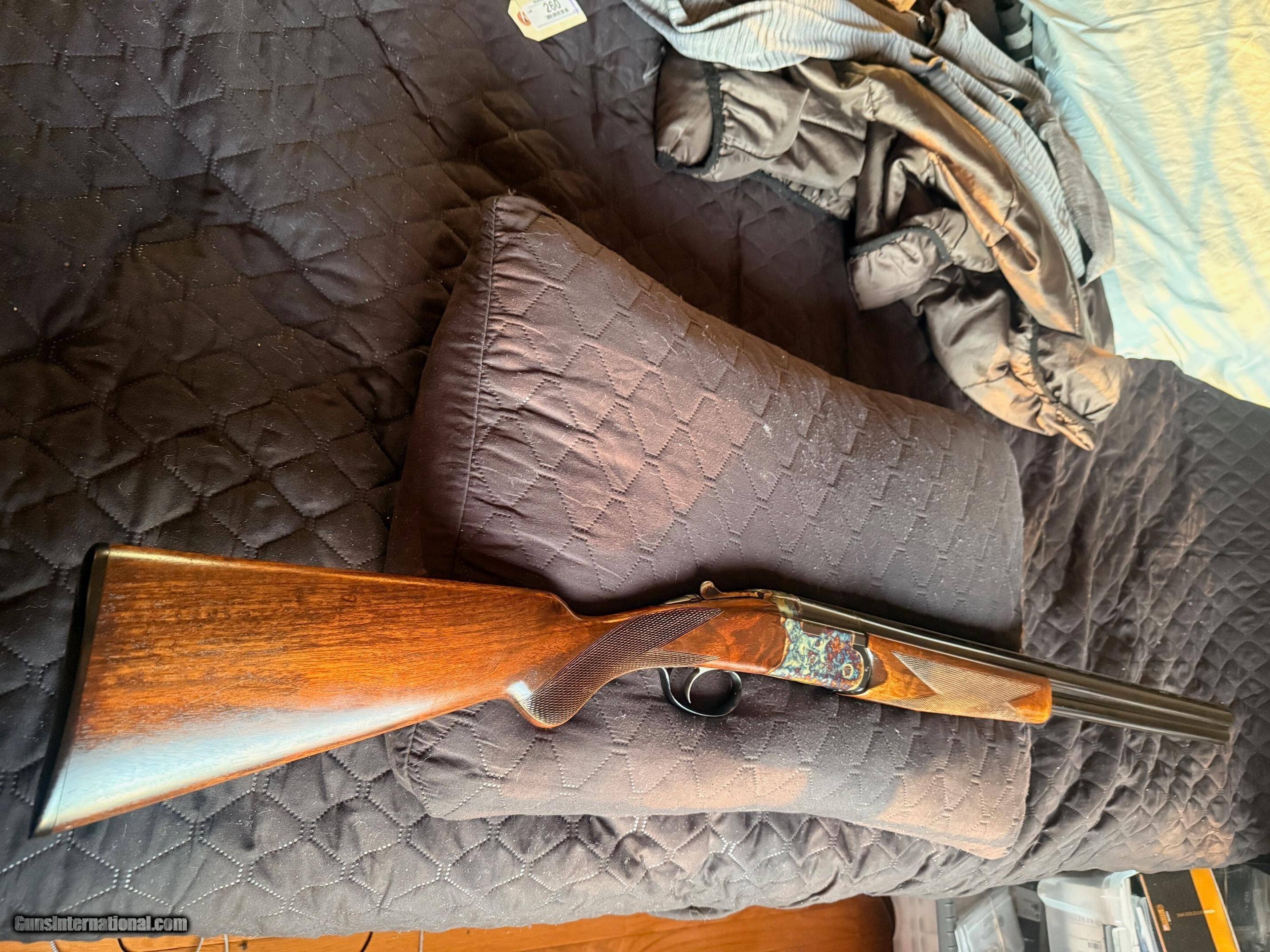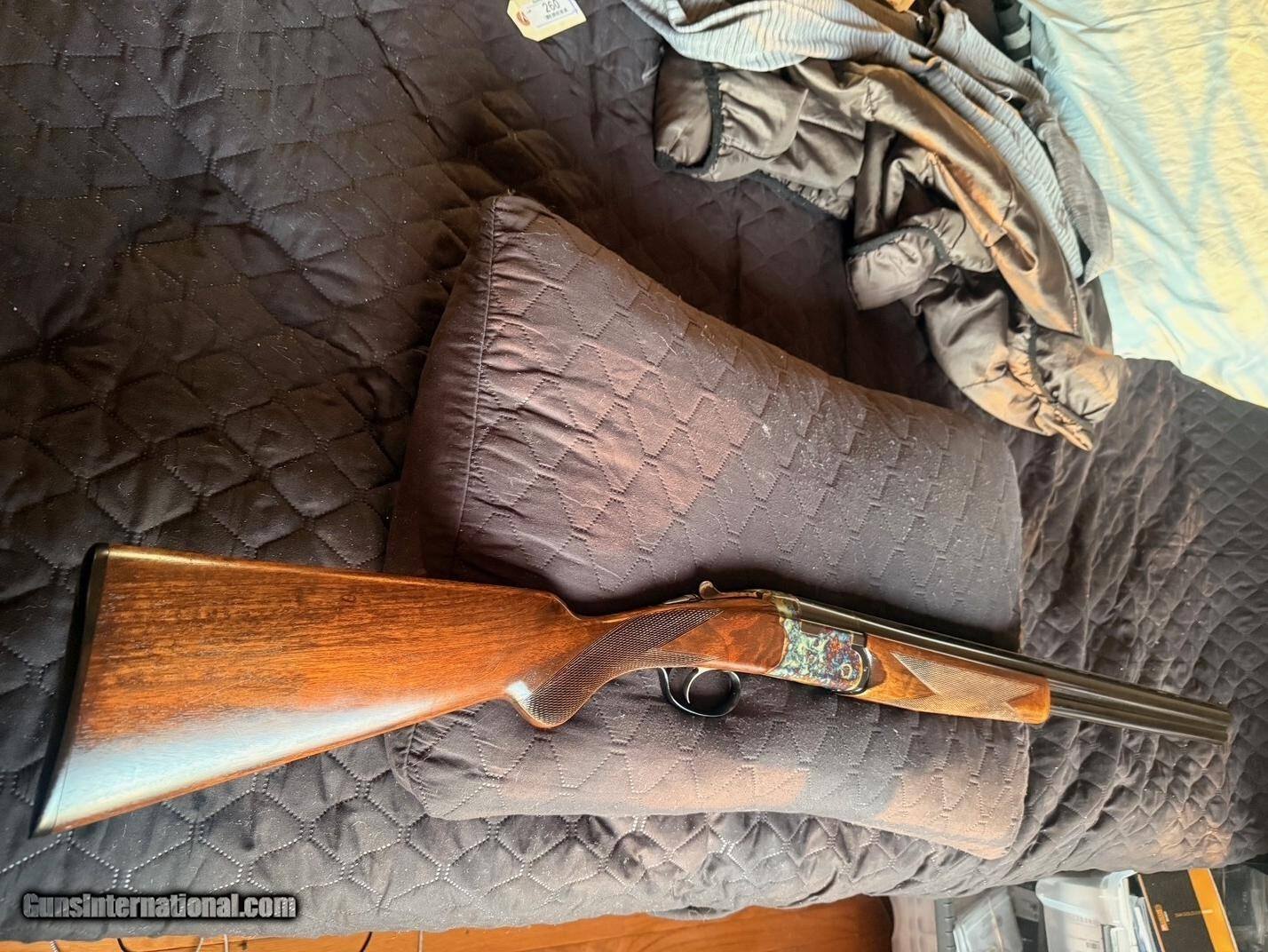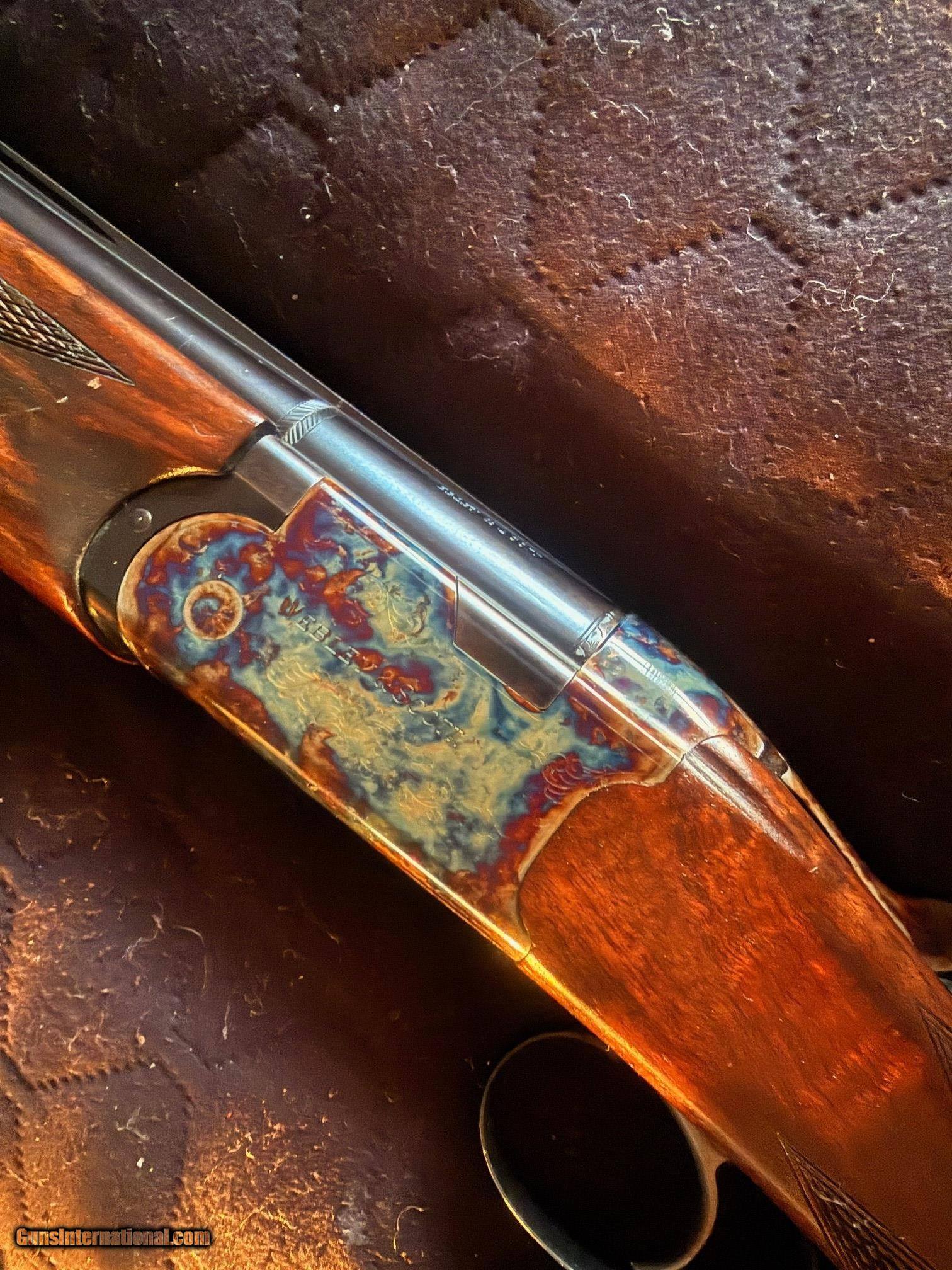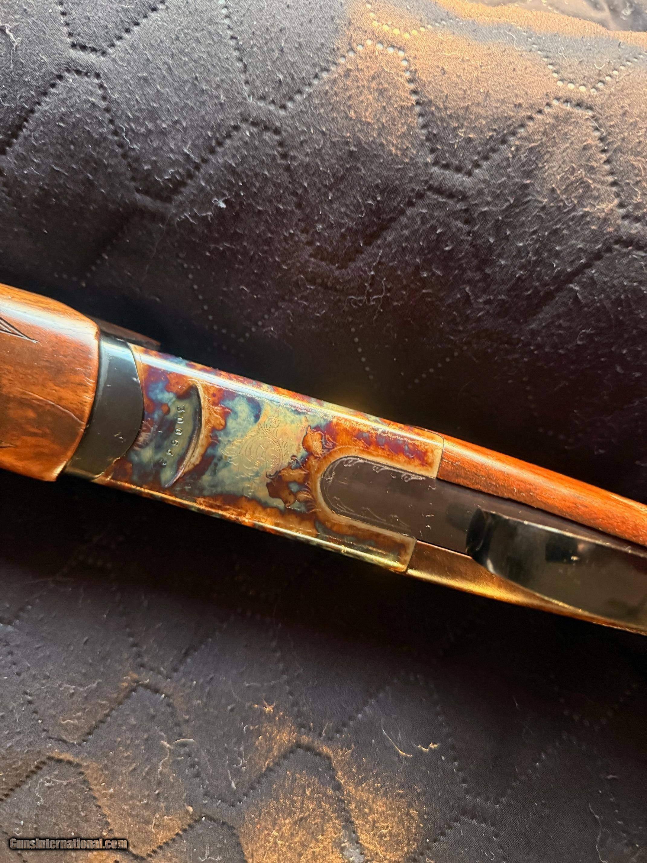 Description: Beautiful Webley & Scott 1012 O/U 12 Gauge Shotgun - Excellent Condition. Outstanding case colors. Excellent high-grade wood. Classic English styling. Many guns these days are light and tinny; this W&S has real depth and a solid feel to it, yet still retains a good balance and an overall fit and finish that looks great. It has a lightly scrolled, beautifully case-hardened receiver. The furniture is richly oiled and in excellent condition. Stock Walnut is grade 2+; so, better than most guns in this price range, and has a medium colour figuring with an oiled finish, with generous proportions, with a long length of pull. The butt stock has a small amount of cast to align the eye down the rib perfectly, and the comb is quite straight. To release the barrels, you have the typical lever release catch that securely clamps in place, but is also easy to unlatch. The walnut is good and dense, hence very strong and feels so; it gives a very good heft to the W&S without being unbalanced, and it soaks up recoil very well, see the field test. Barrels Typical monobloc design and lock up with large rear bite and barrels swivelling on two captive pins in the action wall. The ejectors are well timed and strong with some nice jewelling to the monobloc sides, and the fit of the lugs into the action recesses is good and tight. It feels very strong and well-finished. Overall, the finish is great, with a very deep blue blacking finish, carrying on the Webley tradition. You have a 10mm rib with a serrated finish to eliminate reflections and a single bead for sighting. There are shallow vents below and joining the barrels, eight and seven, respectively; this is the Sporter model. The Game version has a solid rib. Barrels are stamped Made in Italy and chrome-lined for longevity and chambered for 2 3/4-inch cartridges. Action As stated, it’s a monobloc system and is quite large and made from steel. It is well machined with very few tooling marks. The action being made from a single block of chrome moly steel, has a bright coin finish that suits the Webley and is accented by stylish scroll machine-cut engraving. This is actually nicely done and quite deeply cut, so it looks so much better than some of the shallow, almost stamped engraving you can see these days; nice one, W&S! The top lever to open the action is easy and has a lot of bite to it, sitting far right for plenty of wear in it. The barrels lock into the action via a full-width bolt at the back and bottom of the action face that locks directly into the ‘lump’ below the bottom barrel, standard monobloc style. The barrels also hinge on stub pins inset into the front of the action sides. The hammers are mechanical, not inertia; so, each pull drops a firing pin on a cartridge and does not rely on the first shot to set the second barrel’s hammer. You also have a non-auto safety; again, my preference is with the traditional left position for the top barrel and right for the bottom barrel. When you open the action, the barrels need to be pushed down, as the new ejectors are very strong and eject the cases with gusto! Trigger-wise, it’s a large, smooth-surfaced trigger blade with a medium-weight pull and a generous trigger guard. Overall, an extremely well-made gun. This is a used item. While we do not test-fire our used firearms, we perform an inspection and function check to ensure that they are fully functional to the best of our ability. Layaway: 1/3 down, 90 days Shipping $60 Insurance is an extra that must be requested and paid for by the buyer 3-day inspection period for non-firing or disassembly Payment: Personal Check, Money Order, Cert. Check, or Zelle New shipping hard case $20 upon request 20% restocking fee on all returned items randywine2000yahoo (703) 858-2881 Curio/Relic: Yes Shotgun Gauge: 12 Gauge Manufacturer: Webley & Scott Model: 1012 Serial Number: 300532 Barrel Length: 28 Bore Info: Bright Chambers: 2 3/4 Ejectors: Yes Condition: Excellent Metal Condition: Excellent Wood Condition: Excellent Bore Condition: Excellent Barrels: O/U Barrel Type: O/U Action: Boxlock Triggers: Single-selective Stock: French Walnut Butt Pad: Factory Plate LOP: 14 3/4 Rib: Vented Finish: Satin Oil Manufacture Date: 1974 Chokes: Modified over Improved Modified Engraving: Case Hardened Light Scroll Engraving Case: Optional Grips: Checkered Pistol Price: $1,799.00 Buy Now Contact Seller |