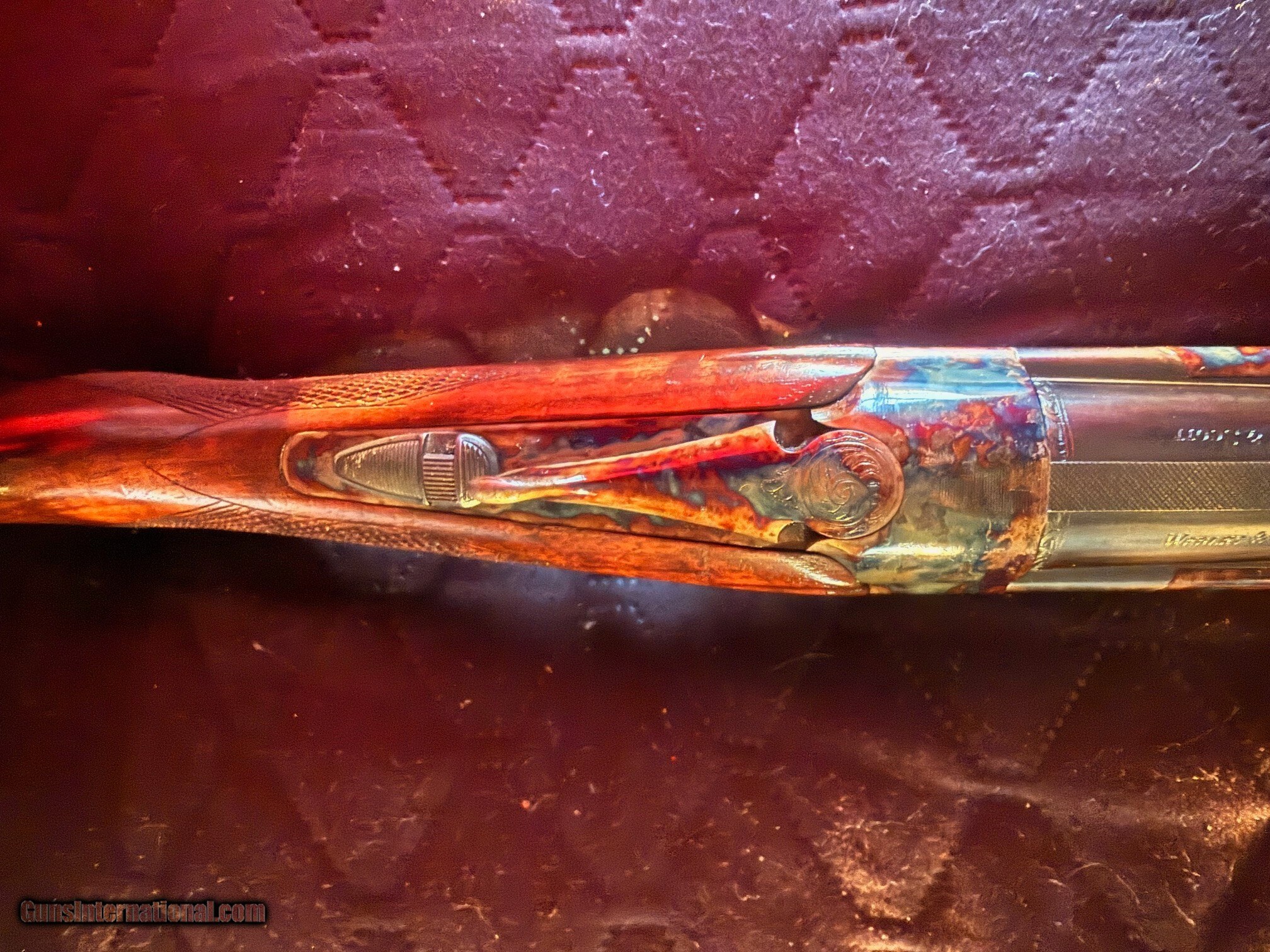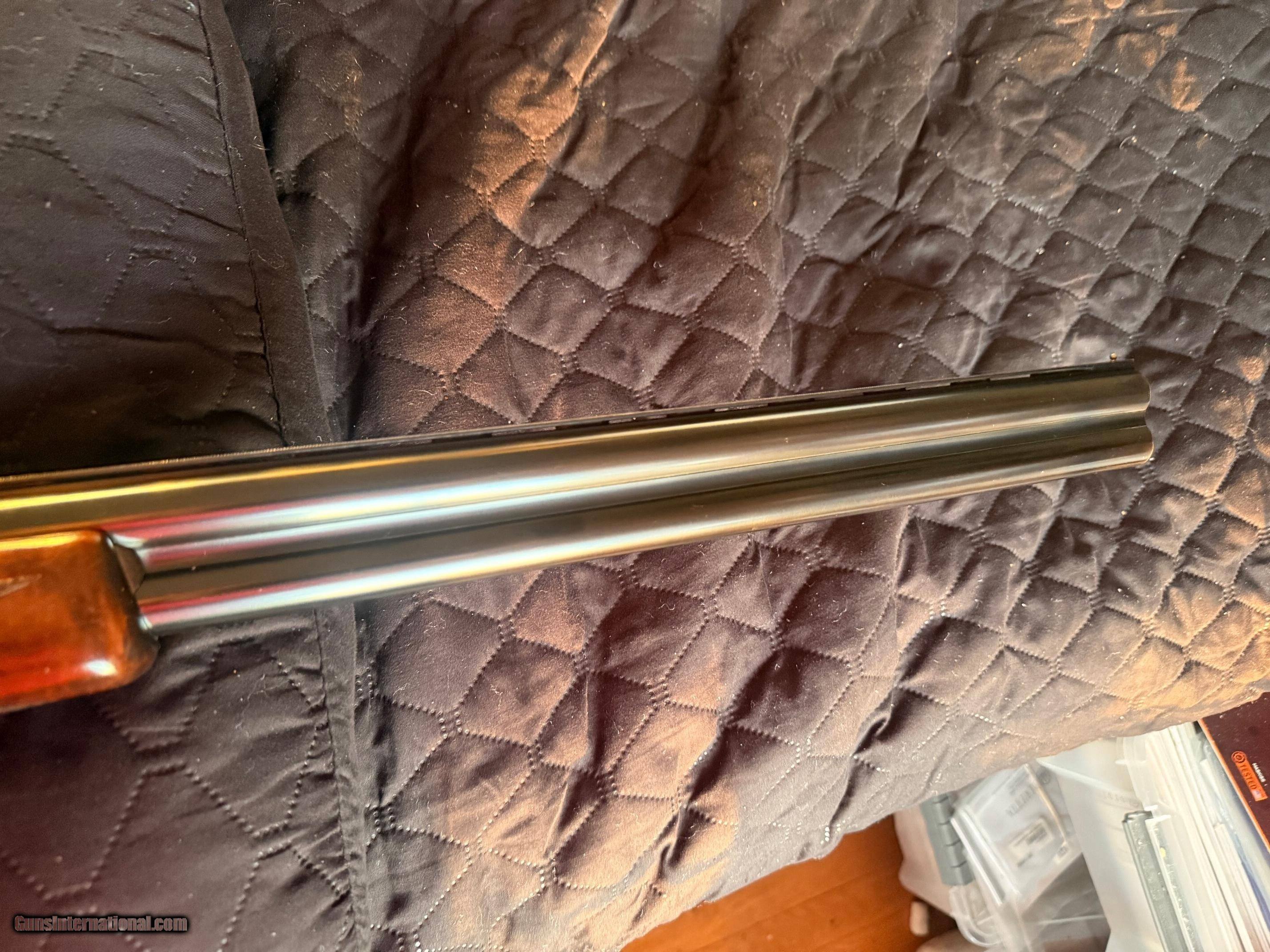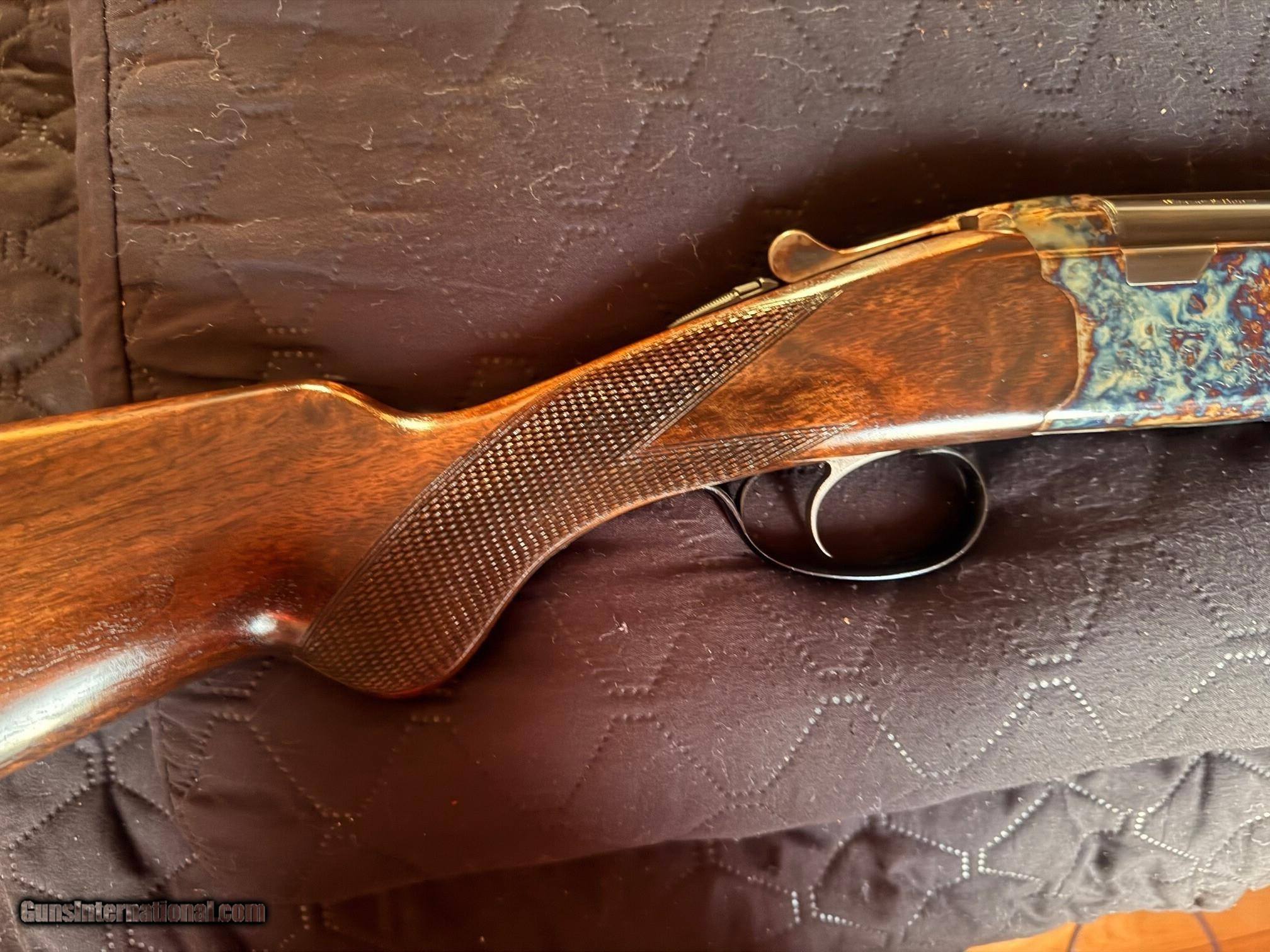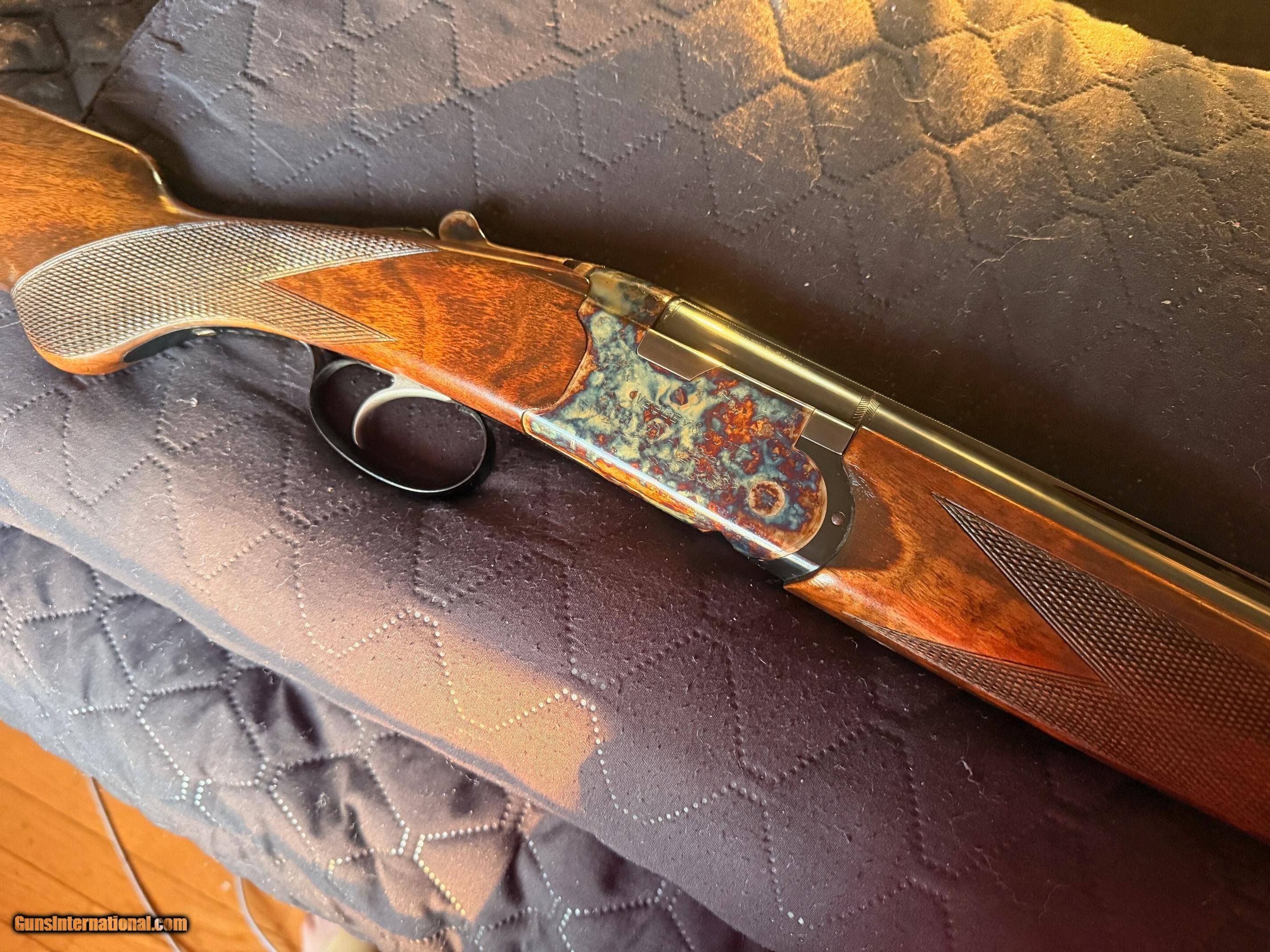 Description: Beautiful Webley & Scott 1012 O/U 12 Gauge Shotgun - Excellent Condition. Outstanding case colors. Excellent high-grade wood. Classic English styling. Many guns these days are light and tinny; this W&S has real depth and a solid feel to it, yet still retains a good balance and an overall fit and finish that looks great. It has a lightly scrolled, beautifully case-hardened receiver. The furniture is richly oiled and in excellent condition. Stock Walnut is grade 2+; so, better than most guns in this price range, and has a medium colour figuring with an oiled finish, with generous proportions, with a long length of pull. The butt stock has a small amount of cast to align the eye down the rib perfectly, and the comb is quite straight. To release the barrels, you have the typical lever release catch that securely clamps in place, but is also easy to unlatch. The walnut is good and dense, hence very strong and feels so; it gives a very good heft to the W&S without being unbalanced, and it soaks up recoil very well, see the field test. Barrels Typical monobloc design and lock up with large rear bite and barrels swivelling on two captive pins in the action wall. The ejectors are well timed and strong with some nice jewelling to the monobloc sides, and the fit of the lugs into the action recesses is good and tight. It feels very strong and well-finished. Overall, the finish is great, with a very deep blue blacking finish, carrying on the Webley tradition. You have a 10mm rib with a serrated finish to eliminate reflections and a single bead for sighting. There are shallow vents below and joining the barrels, eight and seven, respectively; this is the Sporter model. The Game version has a solid rib. Barrels are stamped Made in Italy and chrome-lined for longevity and chambered for 2 3/4-inch cartridges. Action As stated, it’s a monobloc system and is quite large and made from steel. It is well machined with very few tooling marks. The action being made from a single block of chrome moly steel, has a bright coin finish that suits the Webley and is accented by stylish scroll machine-cut engraving. This is actually nicely done and quite deeply cut, so it looks so much better than some of the shallow, almost stamped engraving you can see these days; nice one, W&S! The top lever to open the action is easy and has a lot of bite to it, sitting far right for plenty of wear in it. The barrels lock into the action via a full-width bolt at the back and bottom of the action face that locks directly into the ‘lump’ below the bottom barrel, standard monobloc style. The barrels also hinge on stub pins inset into the front of the action sides. The hammers are mechanical, not inertia; so, each pull drops a firing pin on a cartridge and does not rely on the first shot to set the second barrel’s hammer. You also have a non-auto safety; again, my preference is with the traditional left position for the top barrel and right for the bottom barrel. When you open the action, the barrels need to be pushed down, as the new ejectors are very strong and eject the cases with gusto! Trigger-wise, it’s a large, smooth-surfaced trigger blade with a medium-weight pull and a generous trigger guard. Overall, an extremely well-made gun. This is a used item. While we do not test-fire our used firearms, we perform an inspection and function check to ensure that they are fully functional to the best of our ability. Layaway: 1/3 down, 90 days Shipping $60 Insurance is an extra that must be requested and paid for by the buyer 3-day inspection period for non-firing or disassembly Payment: Personal Check, Money Order, Cert. Check, or Zelle New shipping hard case $20 upon request 20% restocking fee on all returned items randywine2000yahoo (703) 858-2881 Curio/Relic: Yes Shotgun Gauge: 12 Gauge Manufacturer: Webley & Scott Model: 1012 Serial Number: 300532 Barrel Length: 28 Bore Info: Bright Chambers: 2 3/4 Ejectors: Yes Condition: Excellent Metal Condition: Excellent Wood Condition: Excellent Bore Condition: Excellent Barrels: O/U Barrel Type: O/U Action: Boxlock Triggers: Single-selective Stock: French Walnut Butt Pad: Factory Plate LOP: 14 3/4 Rib: Vented Finish: Satin Oil Manufacture Date: 1974 Chokes: Modified over Improved Modified Engraving: Case Hardened Light Scroll Engraving Case: Optional Grips: Checkered Pistol Price: $1,799.00 Buy Now Contact Seller |