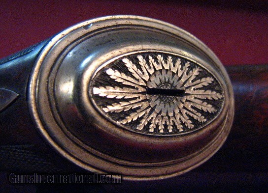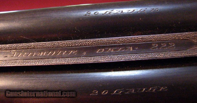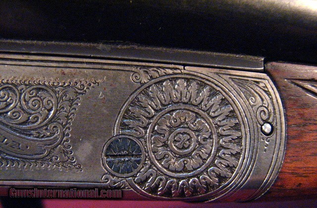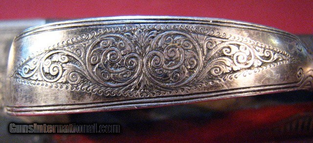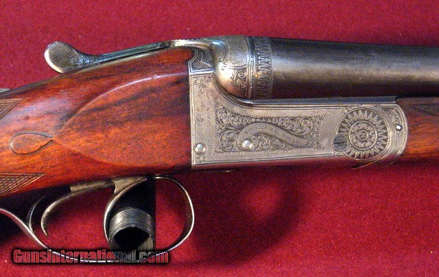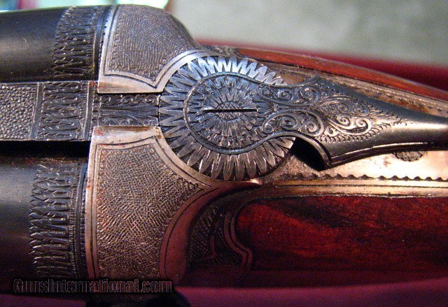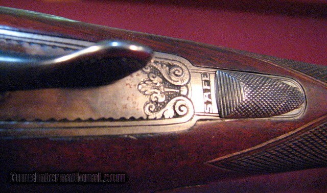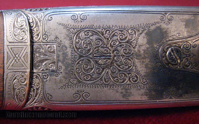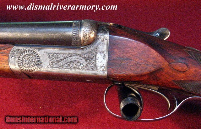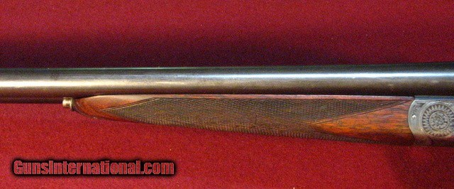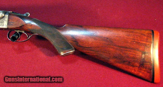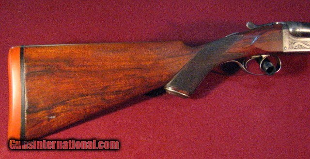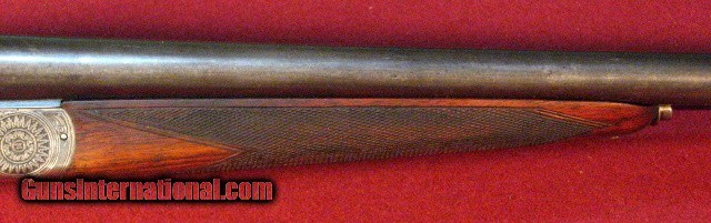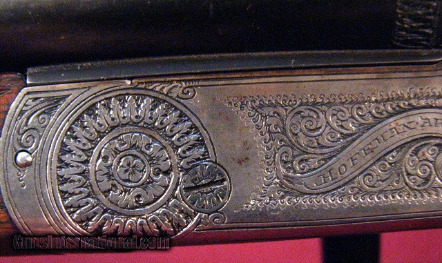 Description: Hoffman Arms Company, Ardmore, Oklahoma 20 Gauge with 28" M/F dovetail lump ejector barrels with silver front bead, stippled rib, and rib extension third fastener. English nitro proofs. Chambers are 2 3/4" Bores are bright and shiney with slight roughness but no pitting. Bores measure .617 right and .619 left. Receiver, trigger guard and grip cap have 70% coverage of scroll engaving by the great Rudolph Kornbrath. Stocked in a nice piece of English Walnut with receiver drop points. LOP is 14 5/8" to a fairly hard Silver's pad. DAC 1 3/8" DAH 2 1/4" Cast off approximately 1/4". This piece weighs in at 6lb 4oz This is a great collector piece also very suitable for use in the field. It is in 80% overall condition with thinning barrel blue. Receiver, trigger guard, and grip cap have gone silver. It is all original, unrefinished , and unmolested. Just a great piece of early 20th Century Americana. Griffin & Howe was formed in June of 1923. In October of 1923 James Howe left to join the Hoffman Arms Company in Cleveland, Ohio., also organized in June of 1923. They were moved to Ardmore, Oklahoma in 1925 and were Griffin & Howe's only major competitor until their doors were closed in 1930 by the Great Depression. Rudolph Kornbrath is considered the finest engraver of the early 20th Century. His career ended with a stroke in 1937. This shotgun bears Hoffman # 222 so most likely built in 1925 shortly after their move to Oklahoma. Price: $7,495.00 Buy Now Contact Seller |