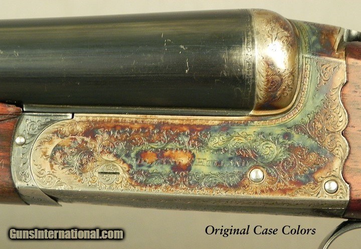 Description: #37015, Holland & Holland, 98 New Bond Street, London: An Original 12 Bore Holland & Holland Model Northwood Deluxe Anson & Deeley Boxlock Ejector Made 1959 with 28" Dovetail Lump Barrels at .728 .009 & .021" (Imp.Cyl. & Mod.), Original 2 1/2" chambers, Proved at 3 Tons, Scalloped action back, Double triggers, Splinter forend with a Frontal Anson & Deeley release, Straight hand stock at 14 3/4 x 1 1/2 x 2 1/4" over a full face checkered butt, Only 6 lbs. 6 oz., 85% coverage of scroll engraving, A very nice piece of wood with a lot of fiddleback and excellent black/brown contrast, It is one of the better pieces of wood I have seen on a Model Northwood, This piece retains 94% original case colors, 97% original barrel blue, The wood with original finish that remains 96% with very light scattered handling marks, The checkering is at 99%, The bores are excellent plus and it remains smack on the face. The whole is cased in an original leather cornered Canvas trunk with original trade labels. This piece handles and points with ease and is the ideal light upland gun at 6 lbs. 6 oz. for those that want a very attractive priced English game gun. This gun is marked Holland & Holland, 98 New Bond Street. This piece most likely was made by A. A. Brown in Birmingham in 1959 for H&H to be sold out of London. Later in 1979 Webley & Scott became W & C Scott Gunmakers Ltd. Then in 1985 Holland & Holland acquired the Scott name and now had a factory in Birmingham. With this acquisition they now had skilled craftsmen to provide a supply of quality boxlock game guns. Curio/Relic: Yes Shotgun Gauge: 12 Gauge Price: $5,400.00 Contact Seller |