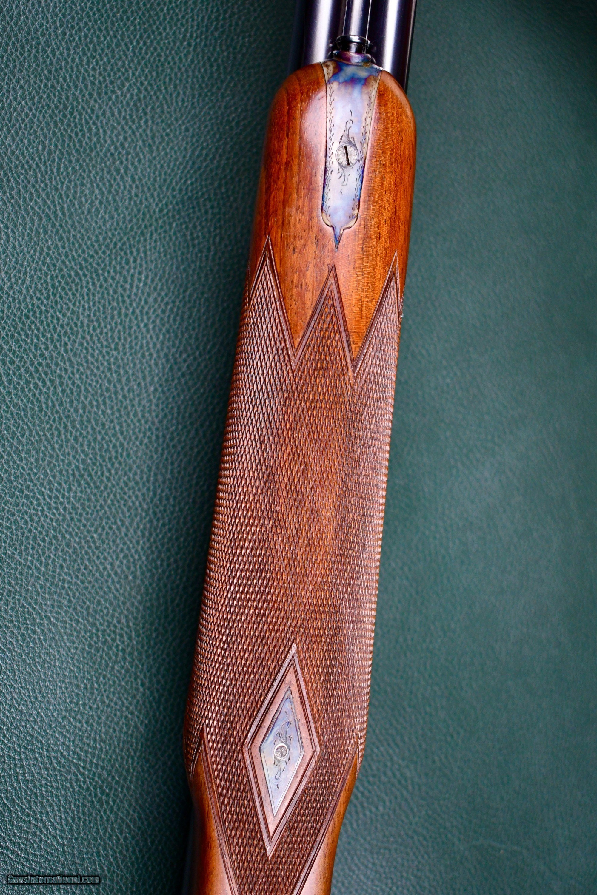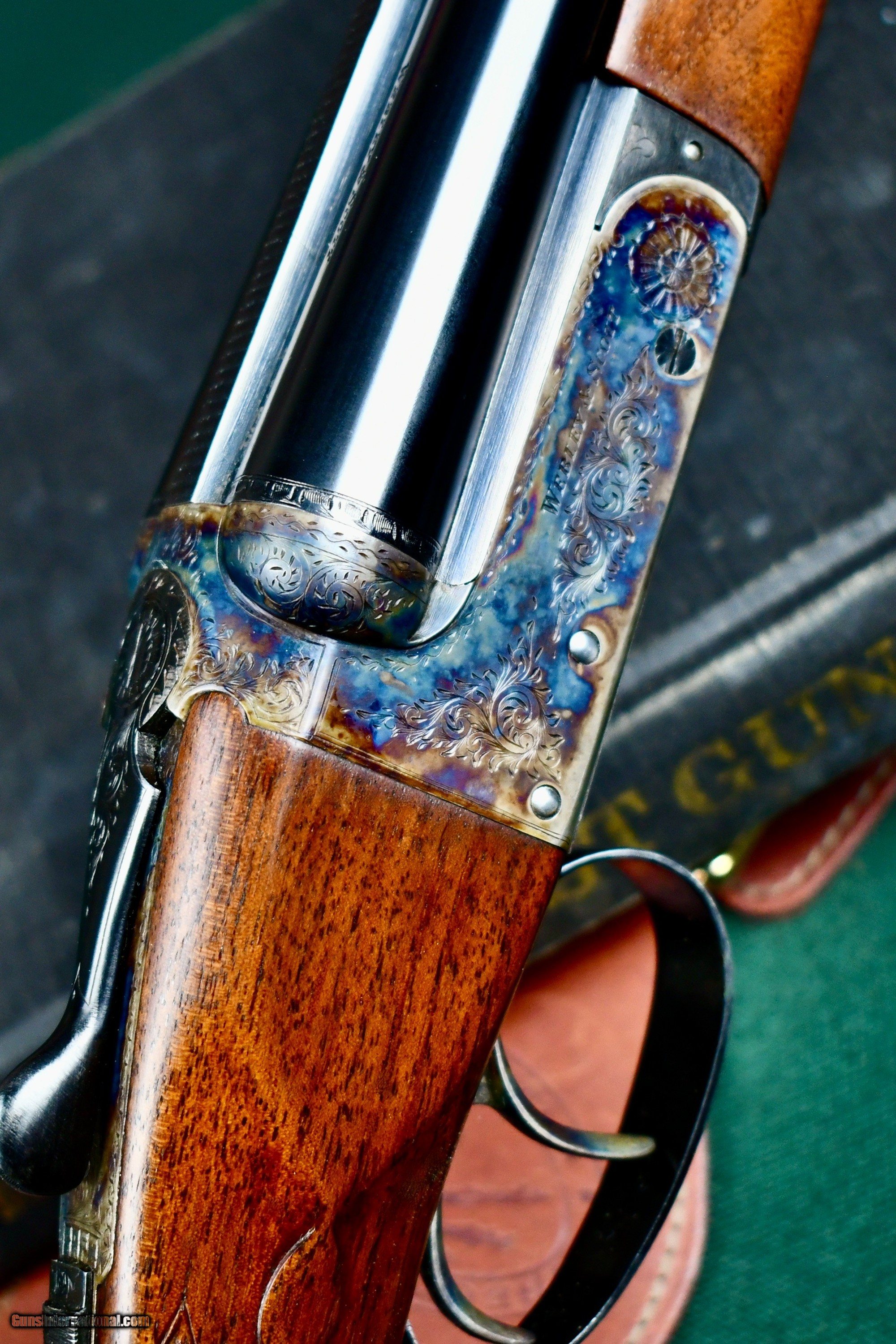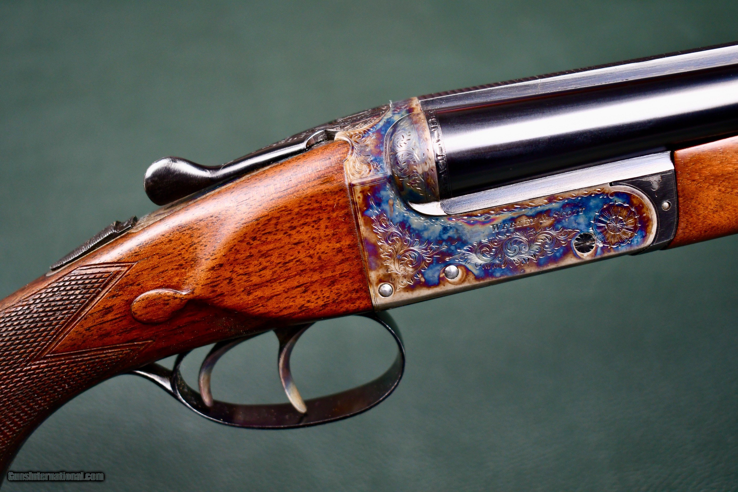 Description: FANTASTIC "ABSOLUTELY AS NEW CONDION" -- PETITE MODEL 728 28ga WEBLEY SCOTT IN ITS L.O.M CASE -- FACTORY SLIM BEAVERTAIL FOREND -- DOUBLE TRIGGERS THAT STILL RETAIN ALL OF THEIR CASE HARDENING COLOR -- 26" IC/MOD -- PISTOL GRIP WITH PURDEY STYLE FULL LENGTH TRIGGER GUARD THAT TERMINATES TO A FACTORY METAL GRIP CAP -- FACTORY BUTTPLATE -- ALL SCREWS ARE UNTOUCHED -- MATTED GAME RIB -- SINGLE FRONT BEAD SIGHT -- EJECTORS -- ANSON DEELEY NOSE RELEASE -- THIS GUN RETAINS ALL OF ITS FACTORY APPLIED FINISHES WITH VIBRANT COLOR, BLUE AND VARNISH -- A TRUE TIME CAPSULE! THESE ARE SOME OF THE FINEST LITTLE GUNS TO COME OUT OF ENGLAND IN THE 1960'S AND REPRESENT A TREMENDOUS VALUE IN TODAYS MONEY -- THE 728 WAS BUILT TO SCALE AND DESIGNED FOR THE AMERICAN UPLAND MARKET -- A LAST BASTION OF BEST QUALITY ENGLISH GAME GUN IN AN AFFORDABLE PLATFORM, IMPORTED THRU ABERCROMBIE AND FITCH AND BUILT TO THEIR HIGHEST STANDARDS. AT "GREENES", WE LITERALLY HAVE ACCESS TO HUNDREDS OF SMALLBORE AMERICAN AND EUROPEAN COLLECTABLE LONGARMS -- FEEL FREE TO CALL WITH YOUR NEEDS -- WHY FIGHT THE EXPENSIVE AND AGGRAVATING CROWDS FOR THAT ONE IN FIFTY CHANCE. WE HAVE THEM AND YOU ARE NOT GOING TO PAY A 20% BUYERS PREMIUM. STOP HITTING THE "BID NOW" BUTTON, PICK UP THE PHONE AND CALL ME! Factory Parker Brothers skeet and field guns..... We have them. Factory Graded Winchester 21's....... Not a problem English and European O/u and SXS's Rare and hard to find Colts and S&W hand guns I have been providing hard to find smallbore American and English long guns to collectors and dealers since 1997. Give us a try call , text or email. you have nothing to lose except 20% of your money! SOLD Shotgun Gauge: 28 Gauge Manufacturer: WEBLEY SCOTT Model: 728 Serial Number: 138100 Barrel Length: 26 Chambers: 2 3/4 Ejectors: YES Condition: EXCELLENT AS NEW Metal Condition: EXCELLENT AS NEW Wood Condition: EXCELLENT AS NEW Bore Condition: EXCELLENT Action: BOXLOCK Triggers: 2 Stock: FULL PISTOL Stock Comb: 1 1/2 Stock Heel: 2 1/4 Fore End: PETITE BEAVERTAIL Butt Pad: FACTORY PLATE LOP: 14 1/8 Rib: SOLID MATT GAME RIB Finish: CASE COLOR / BLUE Weight: 5lbs 6oz Sights: 1 Choke Left: MOD Choke Right: IC Case: YES L.O.M |