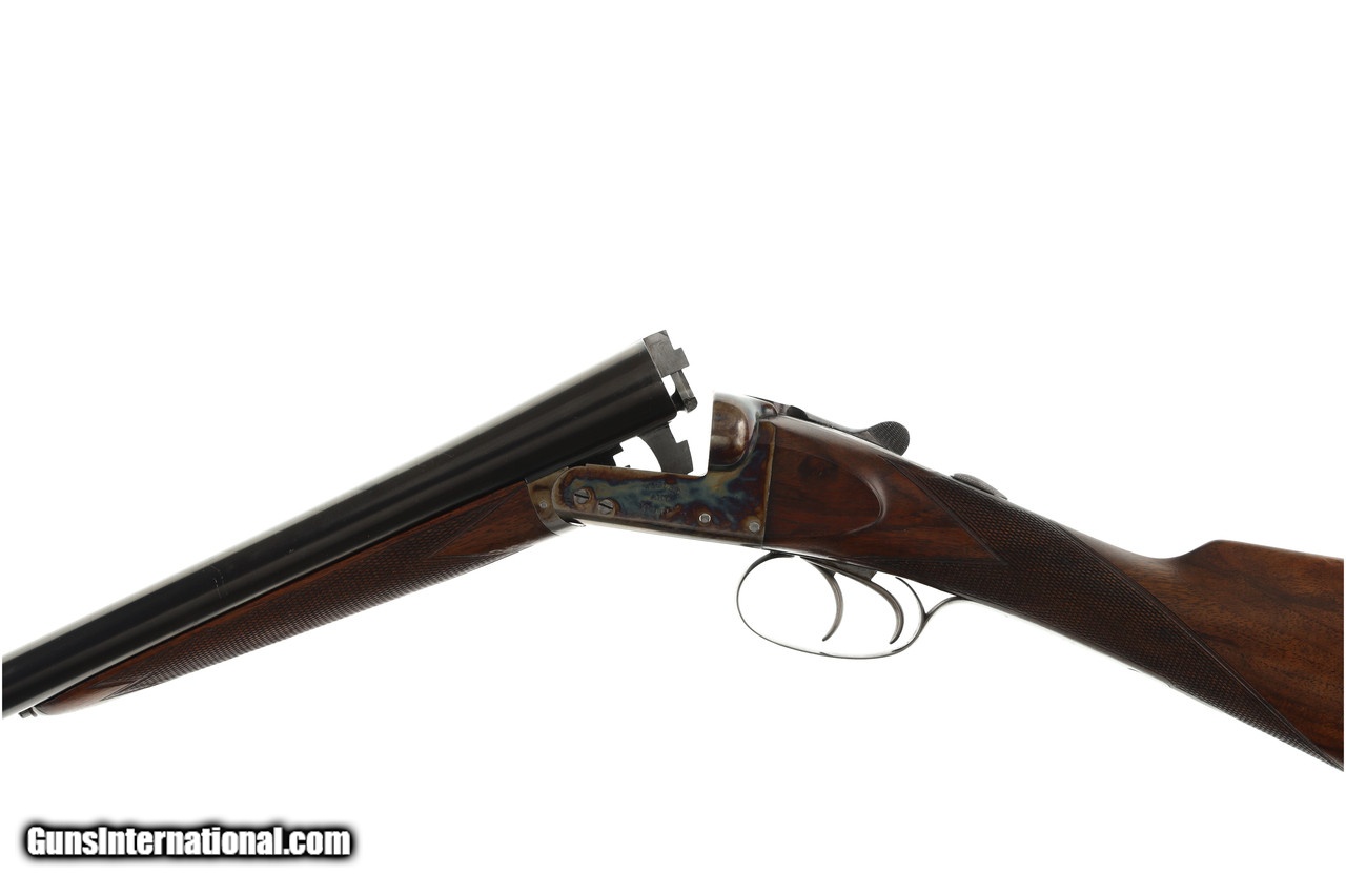 Description: Gun is in very good overall condition with some light handling marks. Manufactured in: USA Hand: Right Hand Action Finish: Case Colored Barrel Length: 30" Barrel Condition: Very Good Stock Finish: Original Stock Condition: Very Good Type of Butt: Wood Grip: Straight Grip Forend: Checkered Cast Amount: 1/8" Extra Barrels: No. SOLD Manufacturer: Webley & Scott Model: BLE Chambers: 2 5/8 Ejectors: Extractors Condition: Preowned Metal Condition: Very Good Action: Sidelock Triggers: Double Gauge Info: 12 Gauge Stock Comb: 1 1/2 Stock Heel: 2 1/4 Stock Cast: Off Fore End: Checkered LOP: 14 5/8 Rib: File Cut Chokes: IC/F Extras: No. Case: Leather |