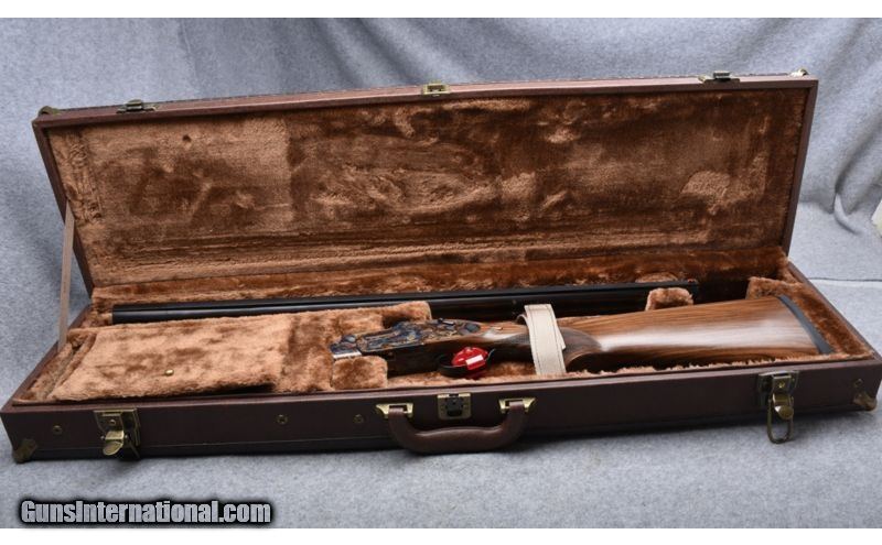 Description: This is a Webley & Scott model 3012K, over-under 12 gauge shotgun, with a 28 inch barrel. The fixed chokes are modified over improved cylinder. The finish is blue steel, with straw colored action. The action is also engraved. The butt stock has a rubber recoil pad. Length of pull is 14 3/4 inches. Drop at comb is 1 3/8 inches. Drop at heel is 1 3/4 inches. The metal finish is excellent with minor handling marks. The wood condition is excellent with minor handling marks, and small imperfections from use.the bore is bright and smooth. Also included is simulated leather luggage case. SOLD Caliber Info: 12 gauge Chambers: 3 inch Metal Condition: Excellent with minor handling marks, blemishes Wood Condition: Excellent with minor handling marks, blemishes Bore Condition: Bright smooth bore, no pits Barrels: 28 inches Stock: Checkered wrist with rubber butt plate Fore End: Checkered Butt Pad: Rubber energy absorbing Weight: 8 pounds 4 ounces Sights: Bead front Chokes: Modified over improved cylinder Extras: Simulated leather luggage case. Item Location: Reno, NV |