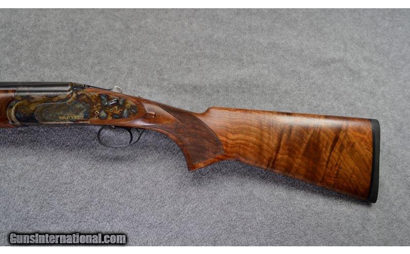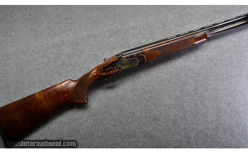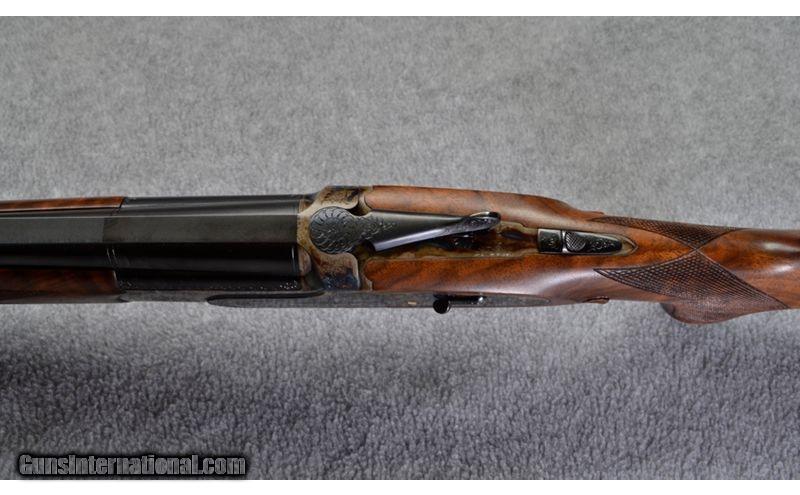 Description: Case hardened side-lock receiver with subtle scroll work. ANIB. Comes in a plush luggage case with choke set. 20 Gauge SOLD Metal Condition: Excellent. Like new. Wood Condition: Excellent. Like new. Barrels: 28" vented barrel with wide rib. Triggers: Single textured trigger Stock Dimensions: 14-3/4 inch LOP Fore End: Checkered Schnabel fore end. Butt Pad: Rubber Pad Sights: Single red fiber optic front sight. Chokes: Five piece choke Set Item Location: Thornton, CO |