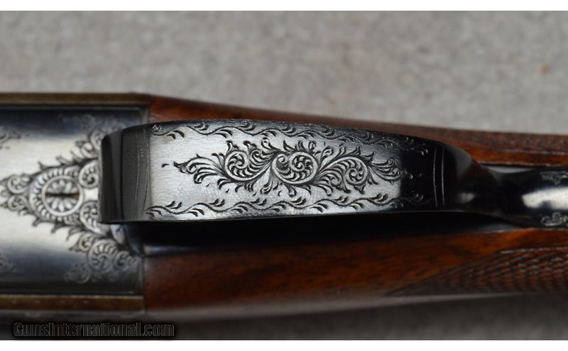 Description: Engraved Webley & Scott shotgun with Abercrombie & Fitch markings in excellent condition. Proofed at the Birmingham proof house in 1960. The boxlock receiver shows fine scroll work and features double triggers and tang mounted safety. Includes canvas bound takedown case with cleaning tools and two snap caps. Overall excellent condition with minor handling marks. Bore & Stock measurements (R/L) Bores 9" from the breech both proofed at .615" and measure .617/.616", bore constriction .11/.019", minimum wall thickness .033/.031" LOP: 14 3/8" DAC: 1 1/8" DAH: 1 15/16" 20 Gauge SOLD Chambers: 2 3/4 Metal Condition: Excellent Wood Condition: Excellent Bore Condition: Clean Barrels: 26 Triggers: Double Butt Pad: Etched wood Weight: 5 lb 8 oz Sights: Single Bead Item Location: Fort Worth, TX |