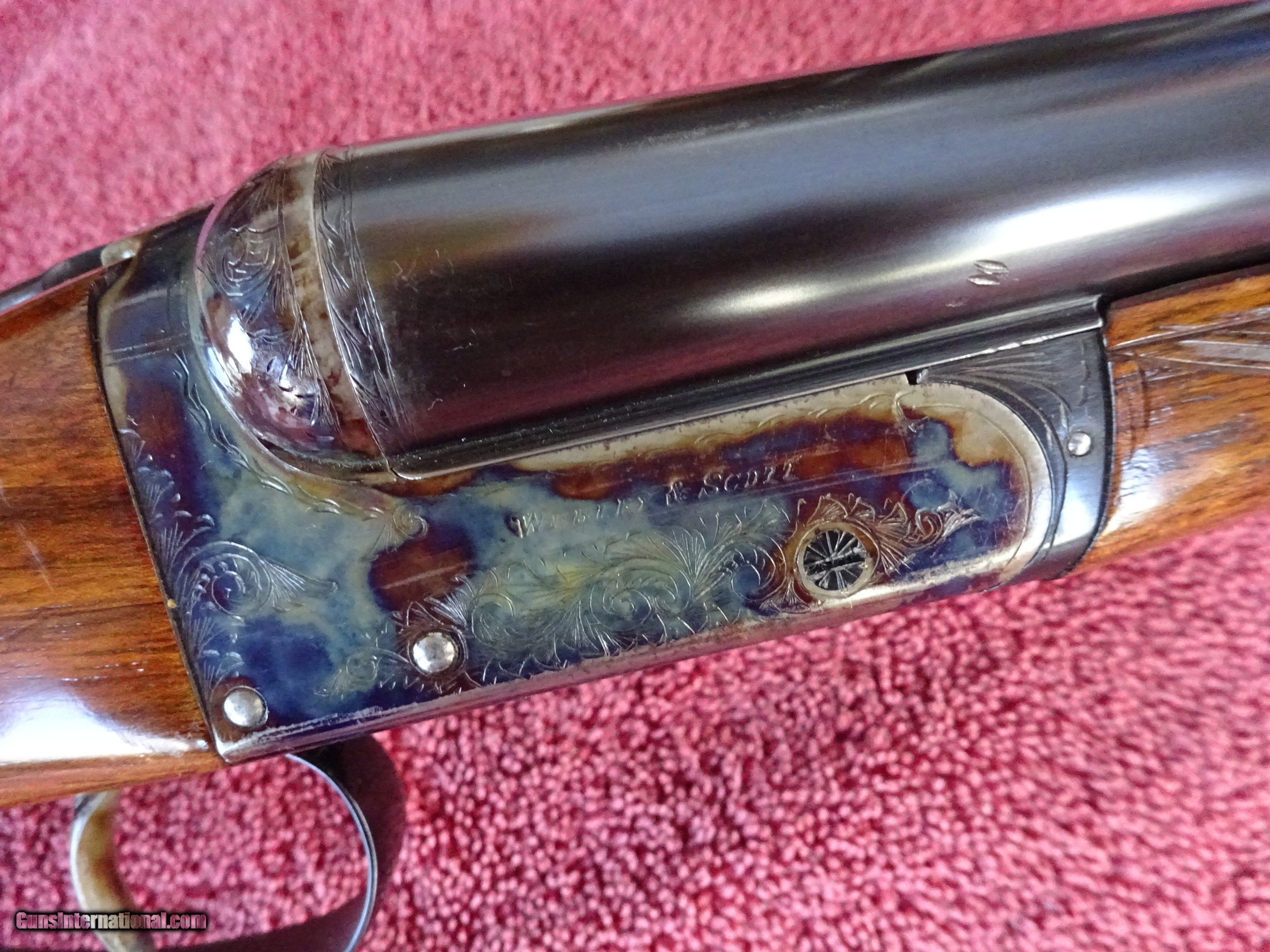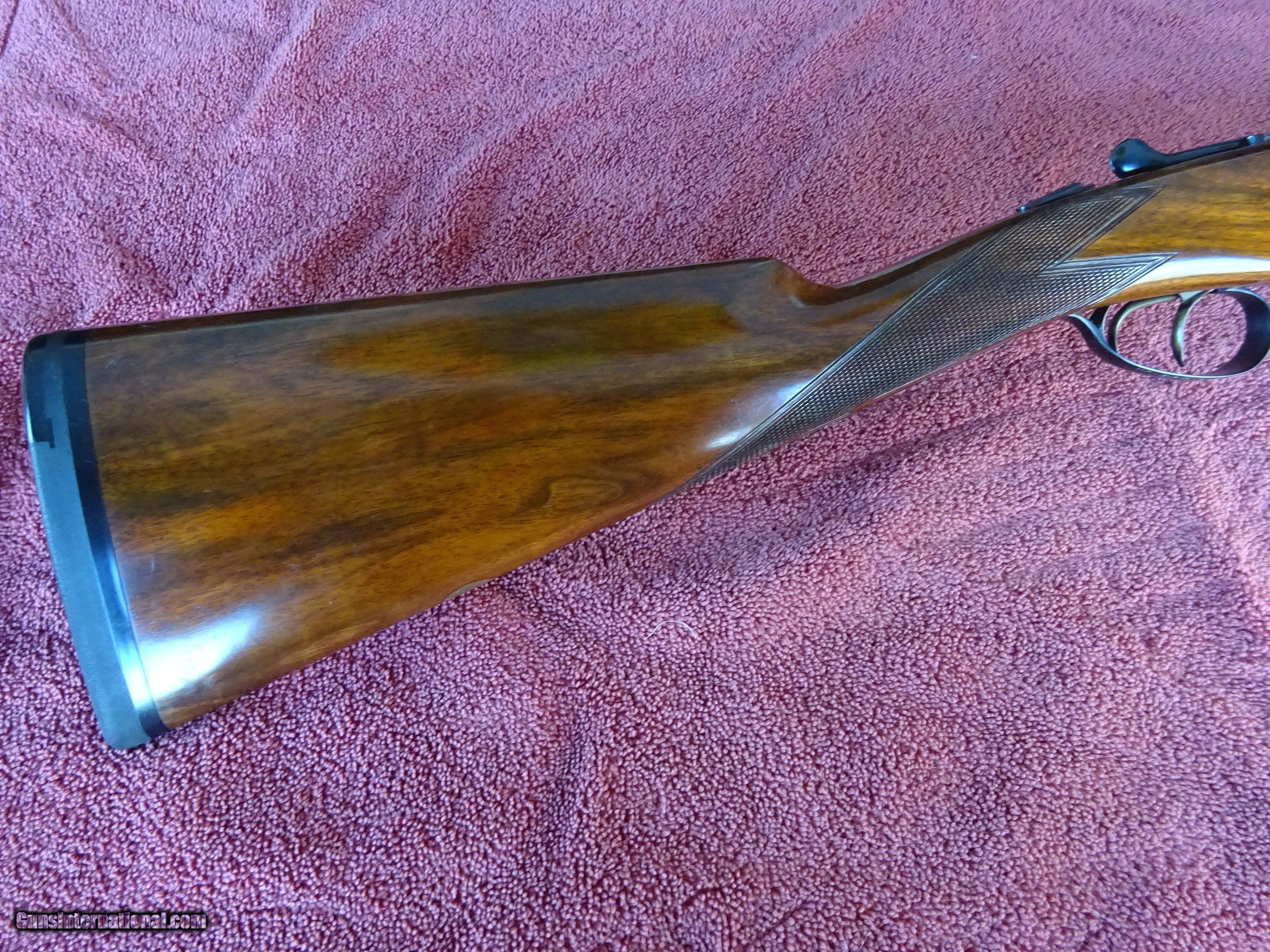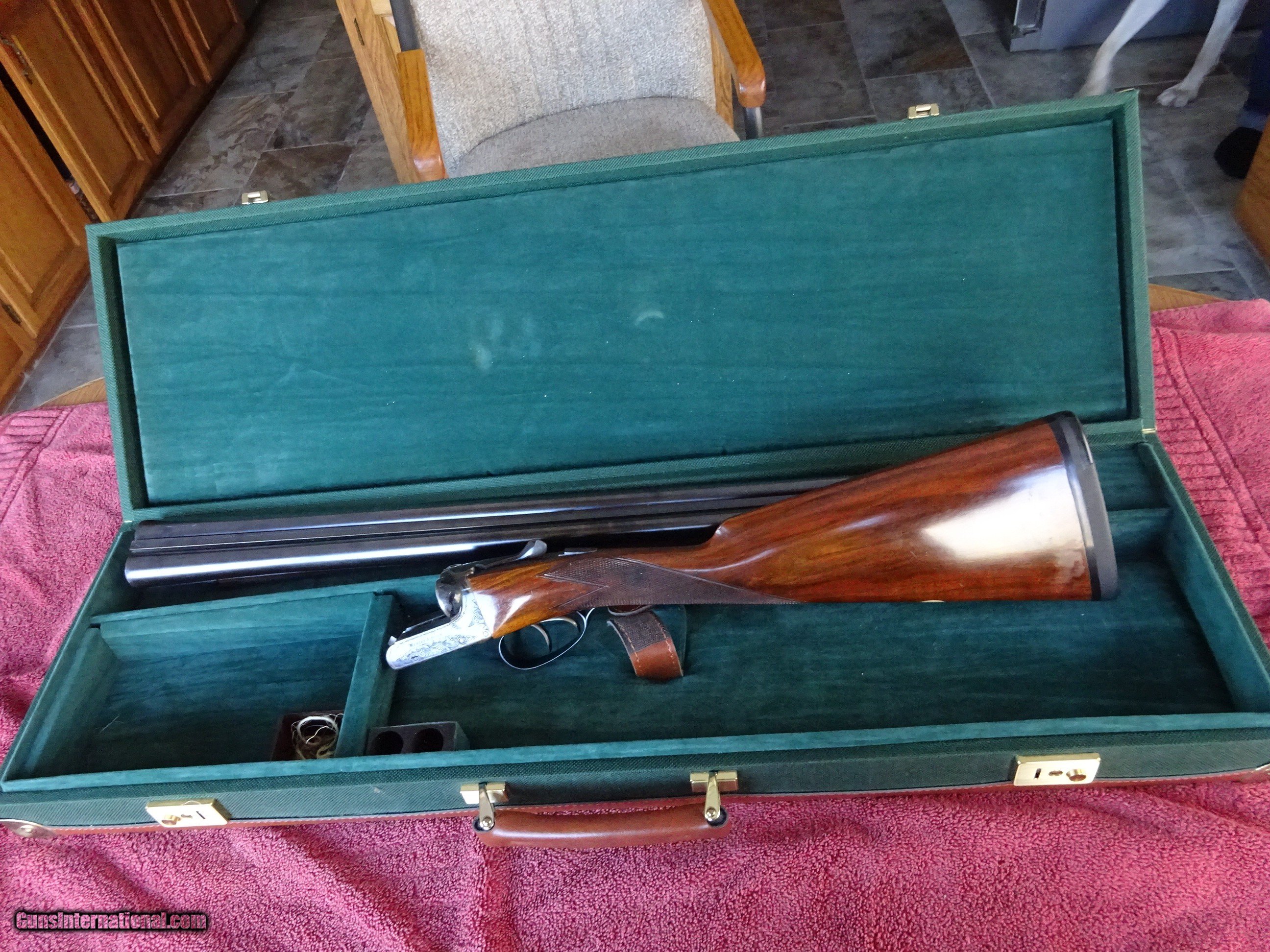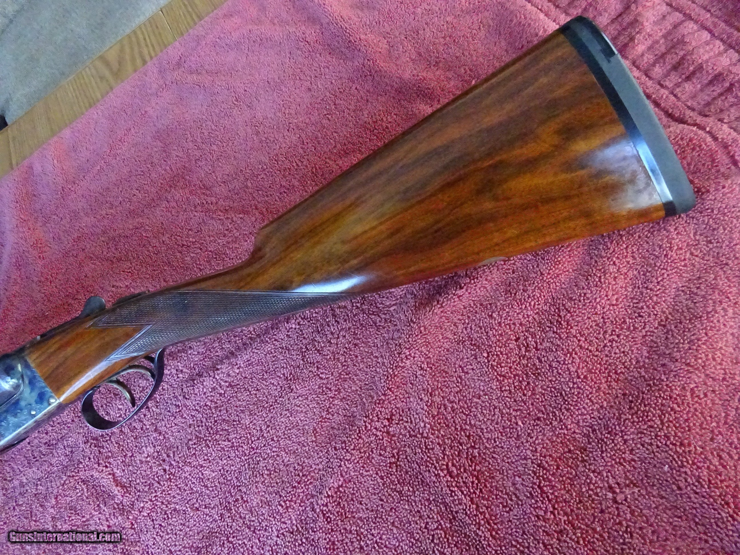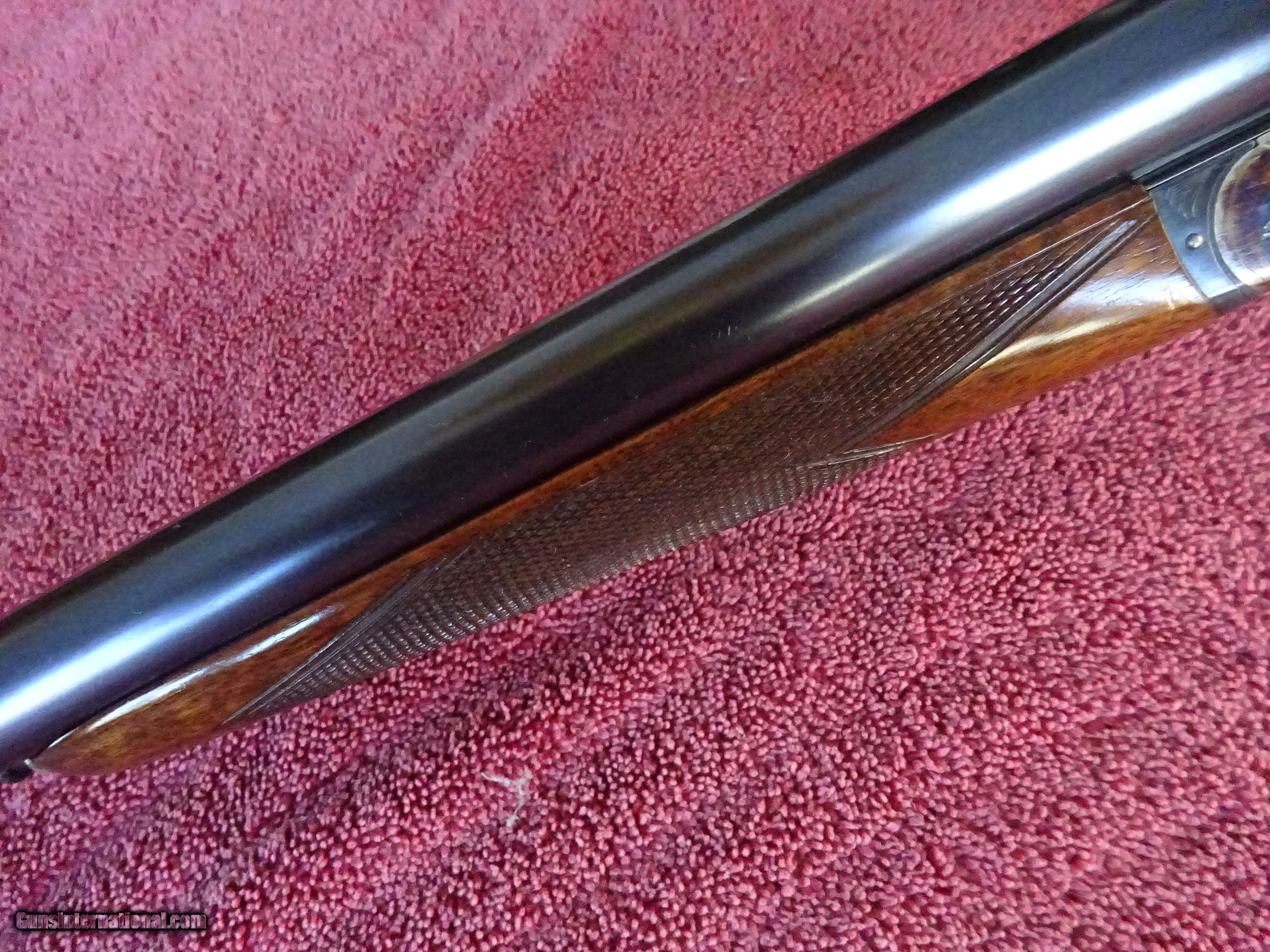 Description: WEBLEY & SCOTT, BIRMINGHAM, MODEL 700 12 GAUGE. 26" BARRELS ENGRAVED "ABERCROMBIE & FITCH BEVERLY HILLS CALIFORNIA USA" ON TOP RIB, IMCYL. AND MODIFIED, 2 3/4" CHAMBERS, 100% BRIGHT BLUE, MIRROR PERFECT BORES, SINGLE BEAD SIGHT, AUTOMATIC EJECTORS. DOUBLE TRIGGERS, AUTO SAFETY, BOXLOCK FRAME, 100% BOLD VIVID CASE COLOR. SCROLL ENGRAVING PATTERN, PERFECT ENGRAVED SCREWS. STRAIGHT GRIP STOCK SPLINTER FOREARM, VERY ATTRACTIVE EUROPEAN WALNUT, PERFECT FINE CHECKERING. EXCELLENT WOOD FINISH, 1 1/2" X 2 1/4" X 14 7/8", DELUXE SOLID BLACK PAD, 6 POUNDS 6 OUNCES. CASED IN A GOOD QUALITY CANVAS AND LEATHER, FELT-LINED TRUNK CASE. $2750.00 + $70.00 Insured shipping to an FFL address. Layaway is available. See all Pats gun listings on this site! We also have hundreds of ORIGINAL gun company advertising & memorabilia pieces available for sale on our site SPORTINGCOLLECTIBLES. We have no reprints or reproductions. Email for more information. If you need to call, morning or evening is best, and please note the Seller's Inventory number. SOLD Curio/Relic: Yes |
