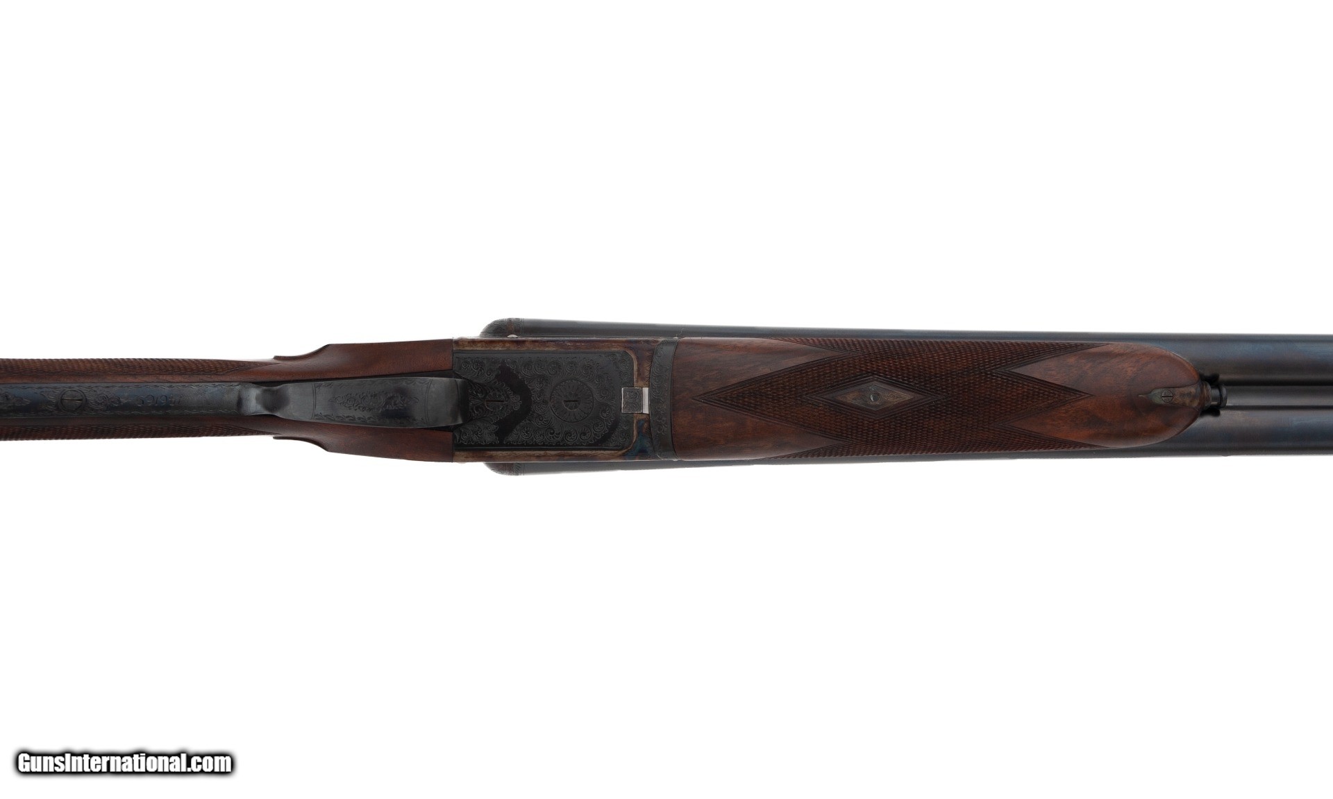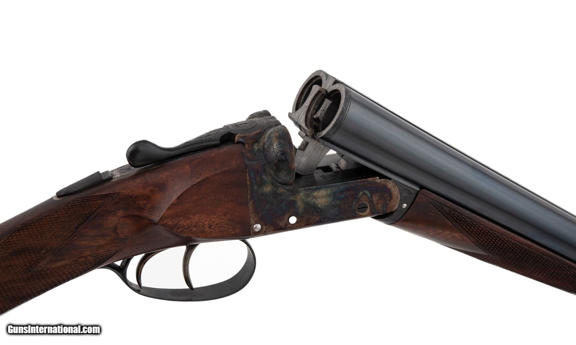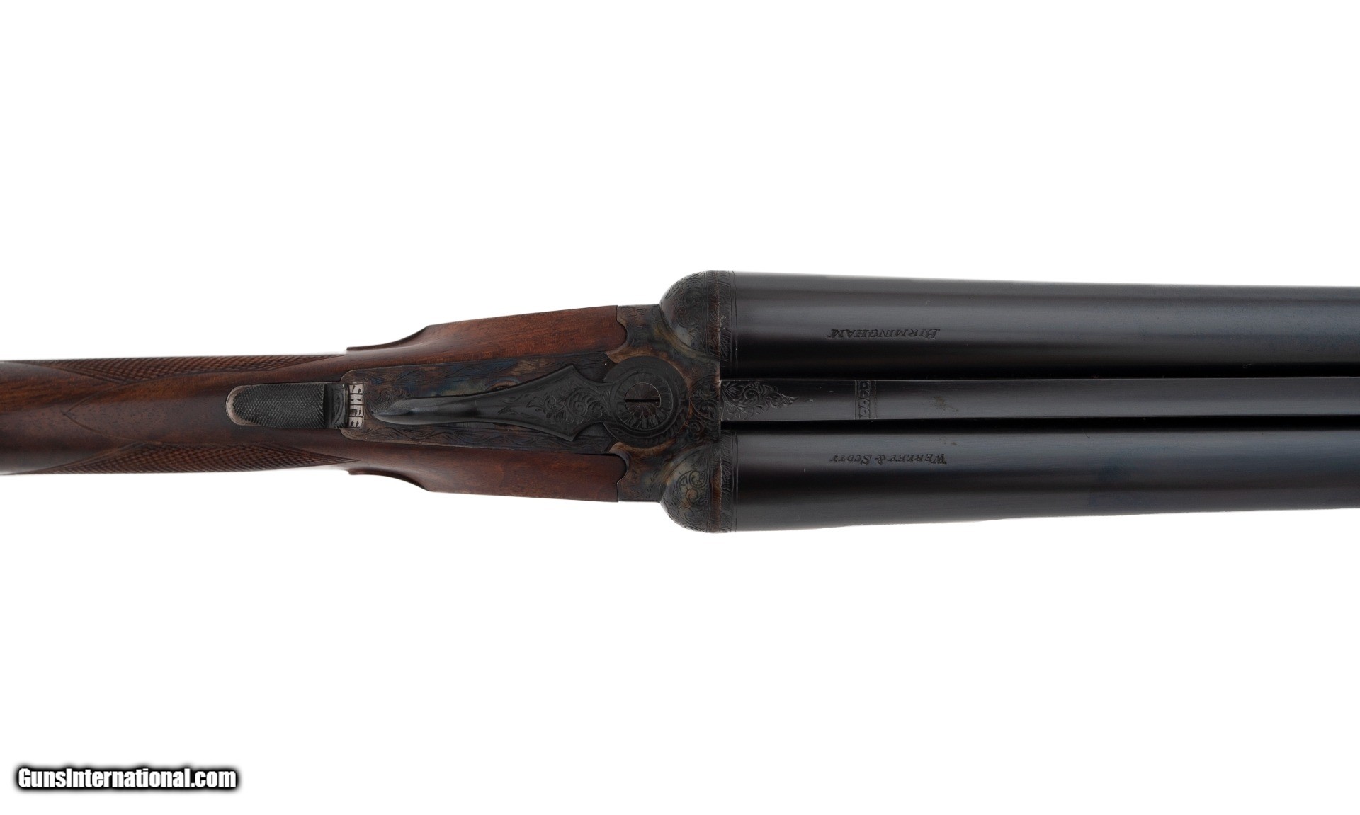 Description: Clean gun with some light cabinet marks. SOLD Manufacturer: Webley & Scott Model: Boxlock Ejector Caliber Info: 12 Gauge Ejectors: Yes Condition: Preowned Metal Condition: Very Good Barrels: 28 Action: Boxlock Triggers: Double Gauge Info: 12 Gauge Stock Comb: 1 1/2 Stock Heel: 2 1/8 Stock Cast: Off Fore End: Checkered LOP: 14 5/8 Rib: Concave Weight: 6.500000 Chokes: M/F Case: Maker's Case |