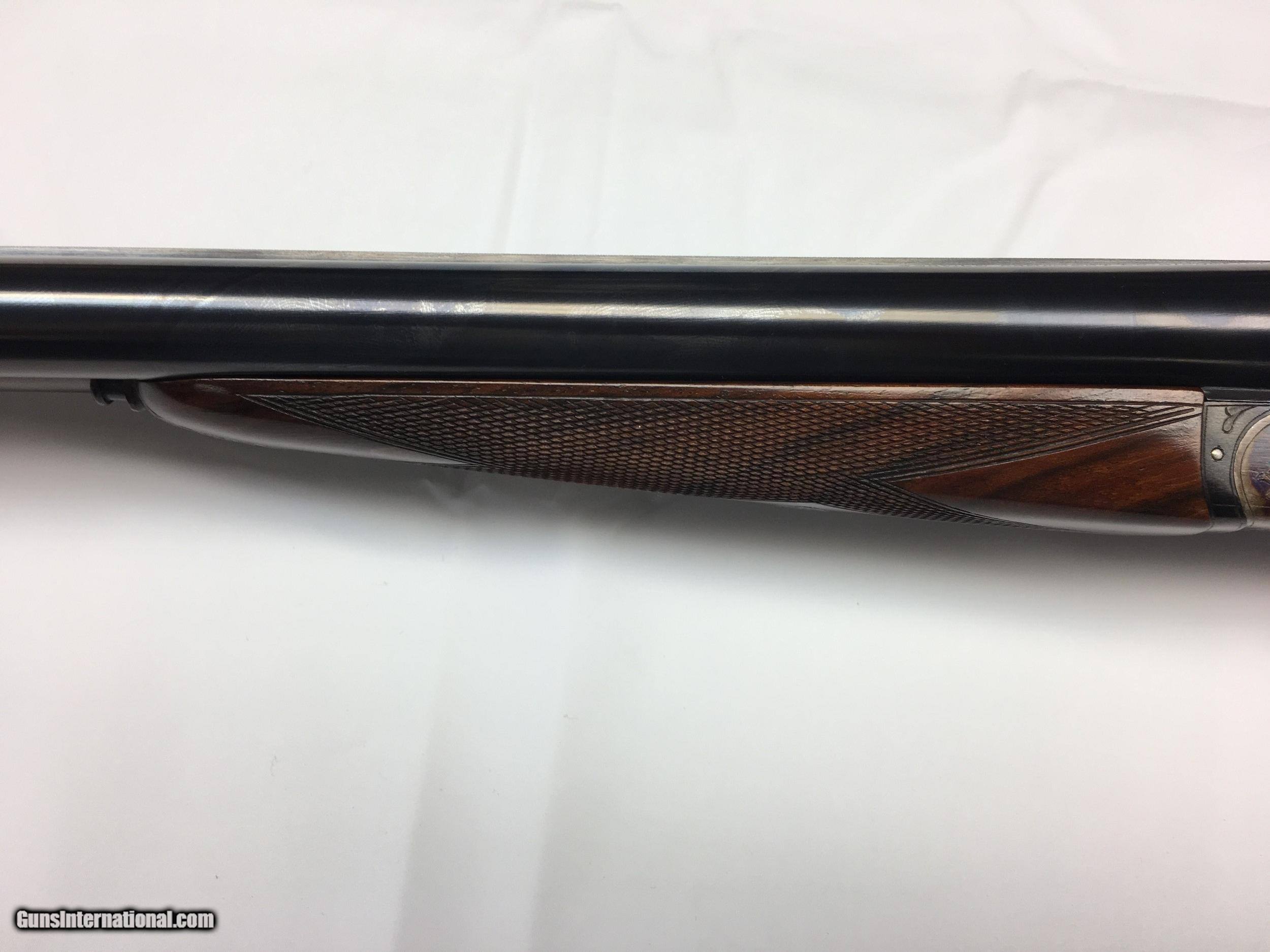 Description: ***SOLD*** We are offering a Webley & Scott M700 in 12 Gauge, one of many pieces from the private collection of firearms and outdoors retailer/distributor Lew Horton. This M700, serial number 140425 has excellent bluing, case color, and wood. The English stock has had a Pachmyer “White Line” butt pad installed. The right barrel is marked “Webley & Scott England” while the left barrel is marked “Service Armament Cp. Ridgeford, N.J.” and there is a single silver bead. It has the following attributes: