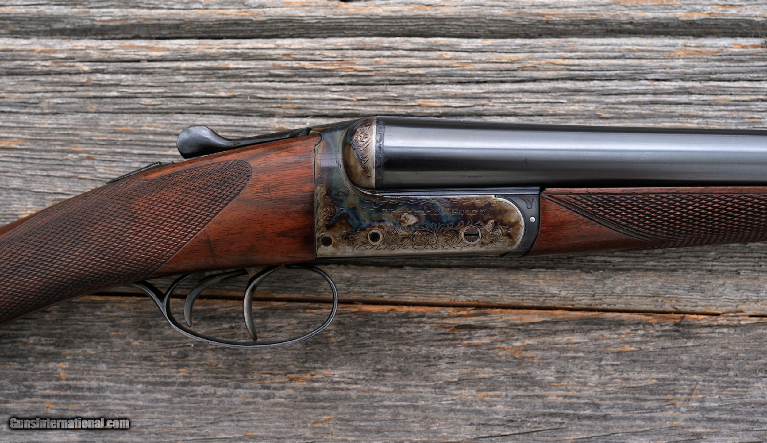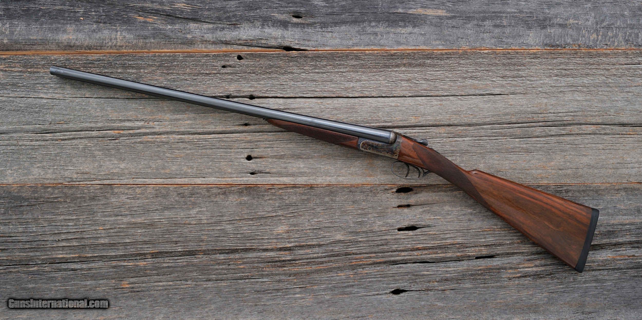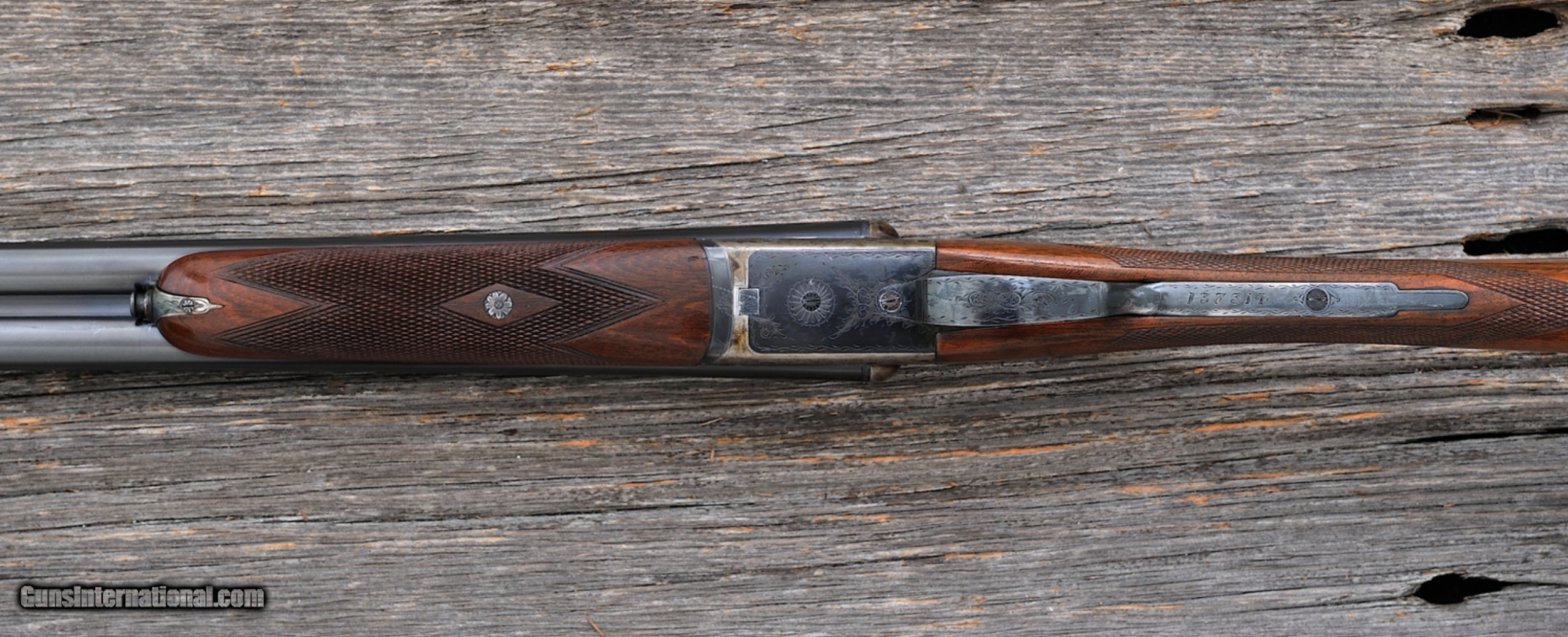 Description: Shotgun type: SxS Action: Boxlock Ejectors: Yes Trigger: Double Grip: Straight Grip Forend: Checkered Lop: 14 3/4 " Pad thickness: 0.5 " Type of butt: Decelerator Pad Drop comb: 1 3/4 " Drop heel: 2 7/8 " Cast amount: 1/8 " Cast: Off Weight: 6 lbs, 12 oz Manufactured in: England Finish: Case Colored Overall condition: Very Good Stock condition: Very Good Metal condition: Very Good Stock: Original finish Metal: Original finish Type of Case: none Extra barrels: 0 Barrel info: Gauge: 12 ga Chamber: 2 3/4 " Length: 28 " Chokes: IC/M Rib type: Concave Comments : Gun has some very light handling marks. SG-86 SOLD |