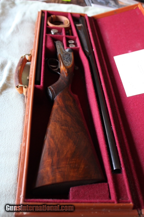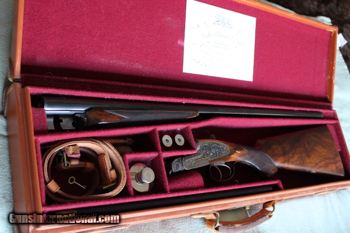 Description: 20gauge 2 3/4" chambers, Westley Richards Side Lock Ejector Double Shotgun, 26" Barrels, Doub Trig, DAC 1 3/8" DAH 2 1/8" Chokes Right .025/ Left .035 Beautiful little SLE 20 ga. weighing 5.8 LBS SOLD |