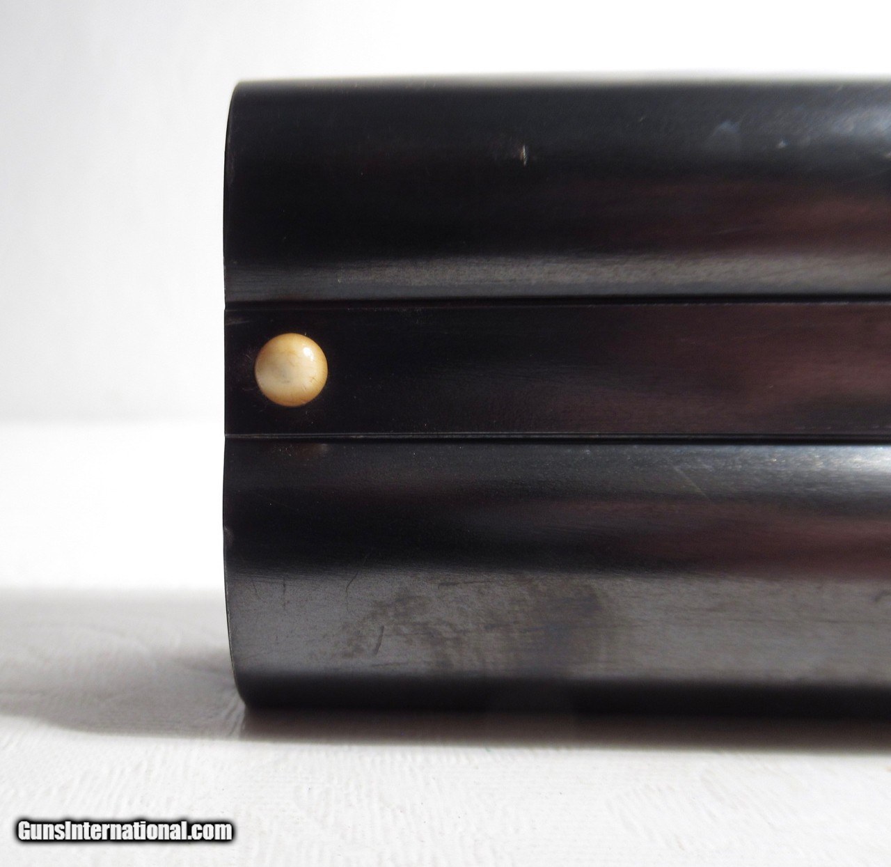 Description: Westley Richards English Double Barrel Shotgun; Serial No. 2452; 12 Gauge Nitro Proof 1-1/8 – Box Lock with Auto Ejectors and Automatic Safety; Double Trigger; 28” Barrels; Perfect Bores Choked Improved Modified and Improved Cylinder; 2 ¾” Chambers; 15 ¼” LOP from Front Trigger to Recoil Pad; Couple of small cracks in fore end and chip in wood near heel; One hole plugged in stock; Very Nice Wood and Metal Finish; Nice 116 Year-Old English Double; Weighs 6 ½lbs.; See All Photos for Condition; No Texts; Call (254)541-5765 or Email Only; PERSONAL PROPERTY of Harold Wieser; Price: $1,975 + $75 S&H Via USPS PRIORITY MAIL; Payment Address: Harold Wieser - 1466 U.S. Hwy 77 - Rosebud, TX 76570; SEND PAYMENTS VIA USPS PRIORITY MAIL; BEWARE of SCAMS!!! – DO NOT SEND MONEY or CORRESPONDENTS ELECTRONICALLY UNLESS YOU HAVE SPOKEN to HAROLD WIESER FIRST! 254-541-5765 SOLD Manufacturer: Westley Richards Model: Double Serial Number: 2452 |