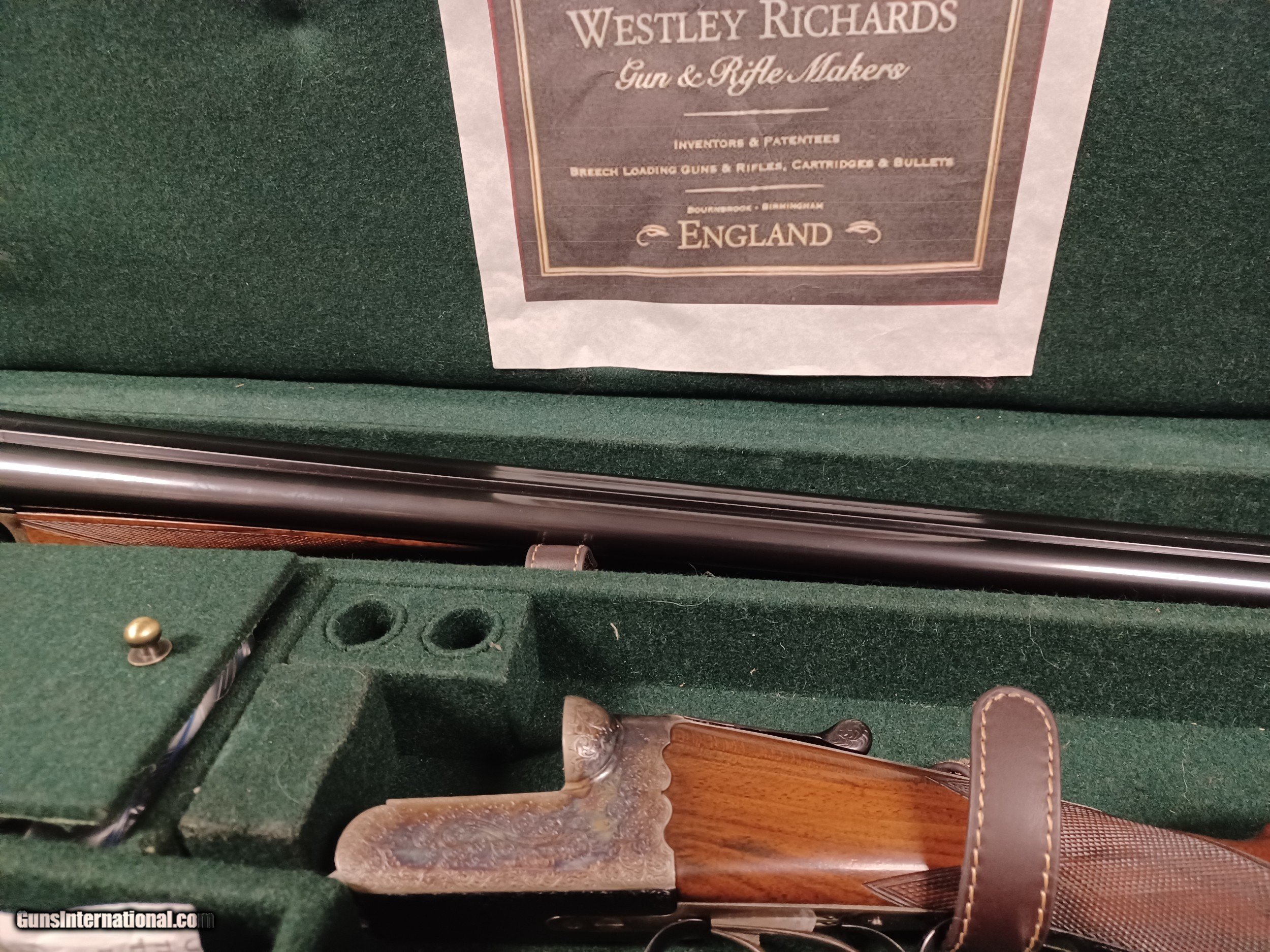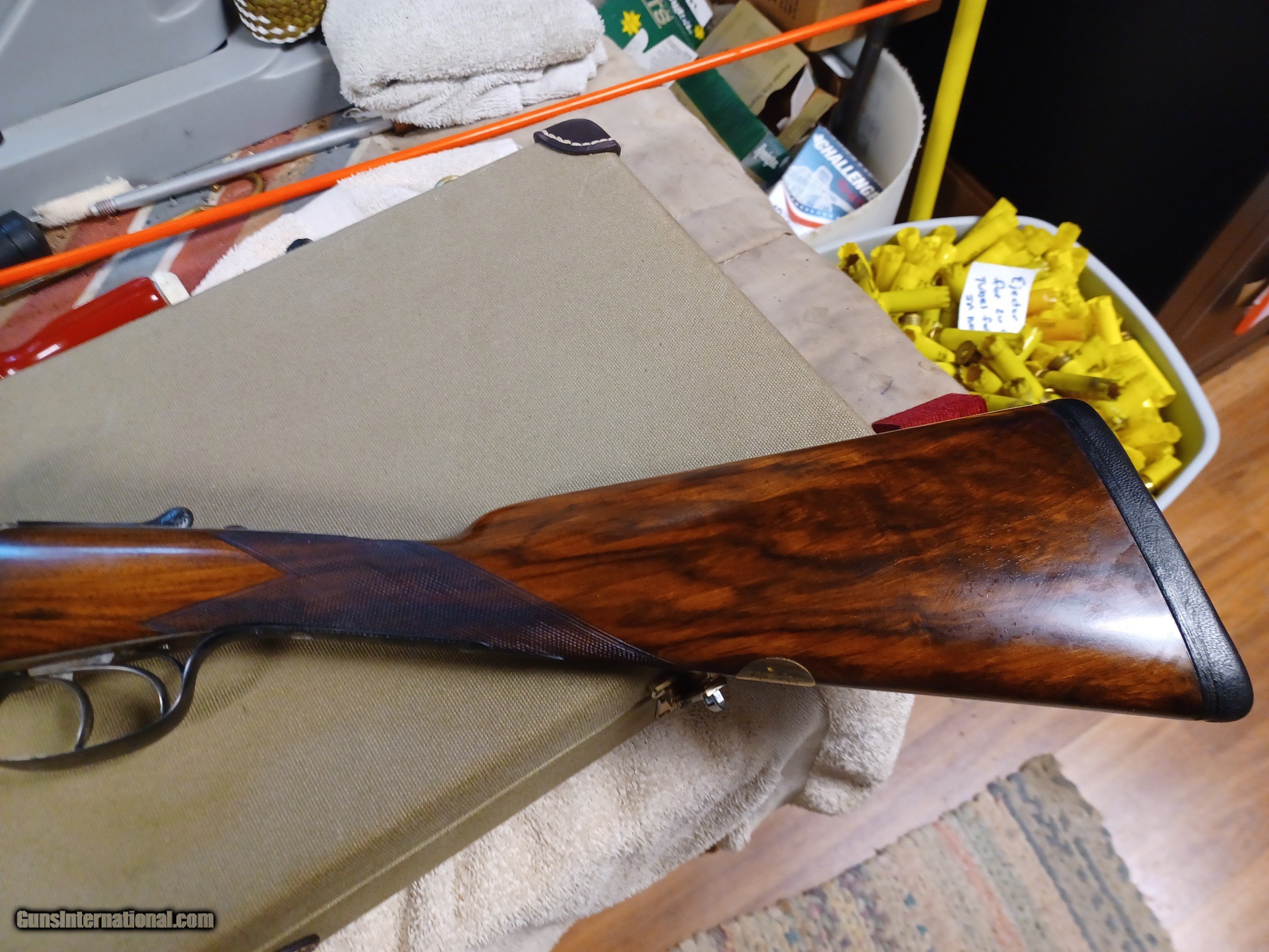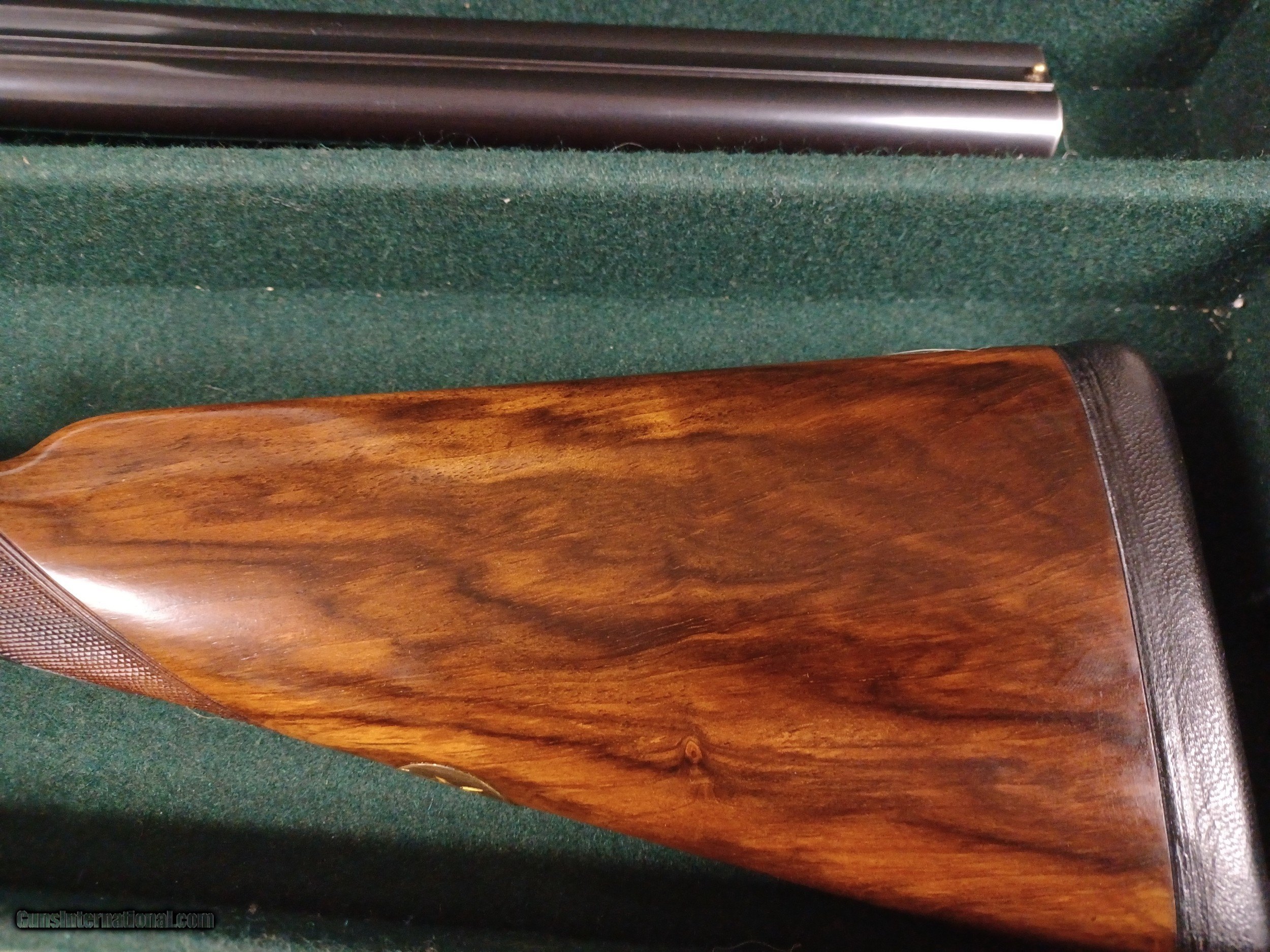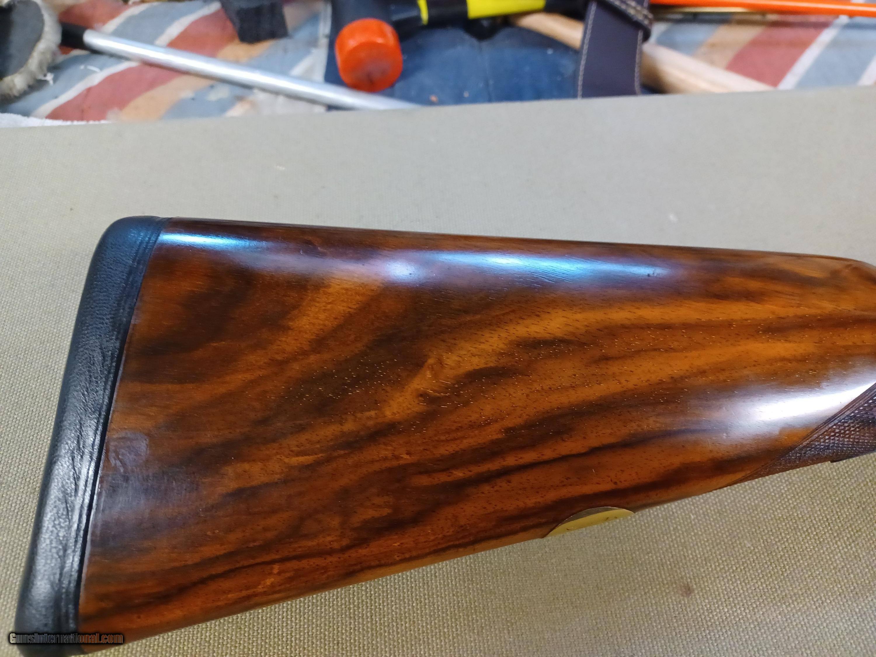 Description: Wesley Richards Drop Lock 12 gauge. In very good condition. This gun is chambered in 12 gauge with 2 1\2 chambers. The gun has been sleeved . If the gun was not marked sleeved it is almost impossible to tell . When doing the sleeving most of the forcing cones have been removed so you can shoot light 2 3\4 shells in it. It has a very nice piece of wood with a black leather pad. The stock has very little cast of any. I have owned this gun for two years and have put only about 200 rounds through it. I believe it to be manufactured in the 1920s. I paid $7000.00 for it, I am in need of money for health reasons. I am asking $5000.00 plus shipping $100, And will guaranty you will love it. This would be in the twenty thousand dollar range If it would not have been sleeved. If for any reason you wouldn't just pay shipping to send it back. If you would like to see the gun I will be taking it Aug 27th to the Hausford Cup at the Ann Arbor Moose. For more pictures or information call me at 5672396565 SOLD Shotgun Gauge: 12 Gauge Manufacturer: Westley Richards Model: Drop Lock Barrel Length: 28 inches Ejectors: Yes Condition: Great Metal Condition: Good Wood Condition: Good Bore Condition: Good Action: SxS Triggers: Double LOP: 14.25 Choke Left: Mod Choke Right: IC Engraving: Yes Case: yes |