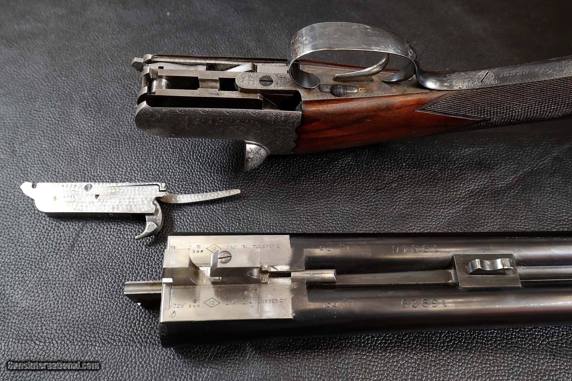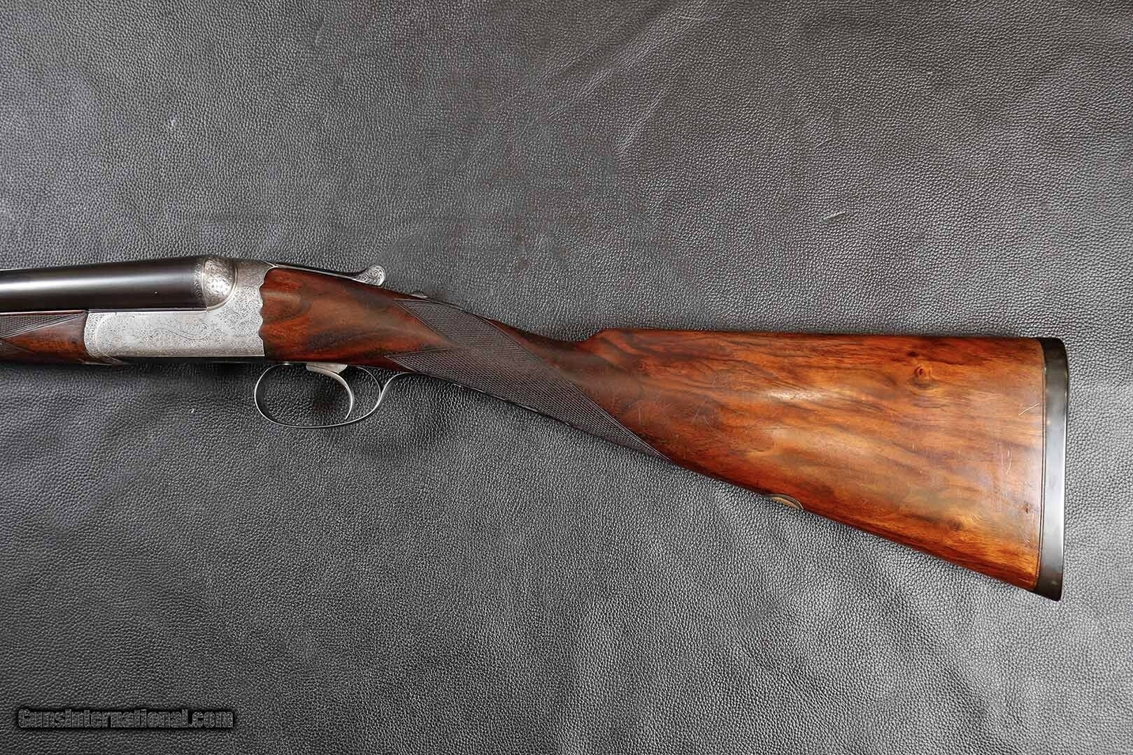Description: 1960's Westley Richard droplock ejector,single trigger 12 bore shotgun. A very good conditions pre-owned side by side. Action Calibre: .12 - 3 3/4 Action: droplock ejectors, round action Triggers: selective single Safety : autosafety Barrels Barrel Length: 28 inches Wallthickness : 27/27 Chokes : Modified / Imp modified (0,3 mm - 0,7 mm) Stock Type: French Walnut Length: 14,57 inches Grip: Classic Straight Cast : OFF - Drop C : 1,71 - Crop H : 2,362 Engraving Description: Typical english scrolls and bouquets Finish: original colour case hardening Other Information Weight: 6,9 lbs Original case NO Date of Manufacture: 1965 This magnificent gun comes from a french collection Original conditions, Please note that the estimated customs duties amount to 15 % and are subject to change. Sales tax be applied based on the purchaser’s state of residence. We handle all customs formalities and transport right to your gun shop. Armurerie Elysees USA (Colorado) is the official agent and importer Shotgun Gauge: 12 Gauge Price: $16,000.00 Shipping: $1,500.00 Contact Seller |