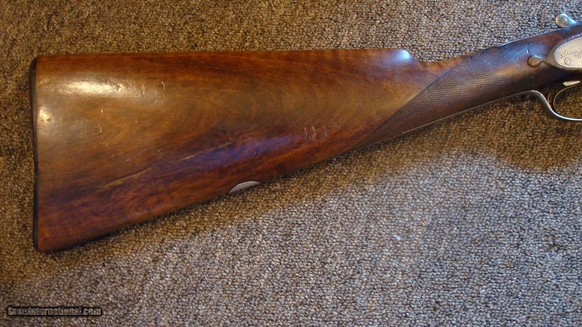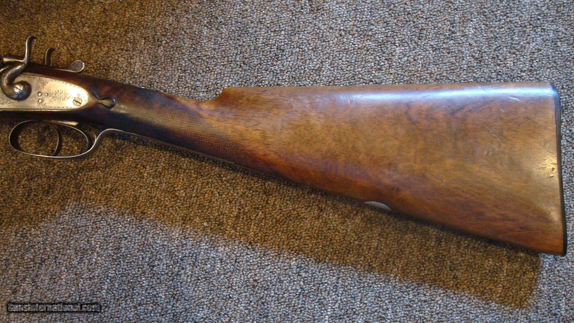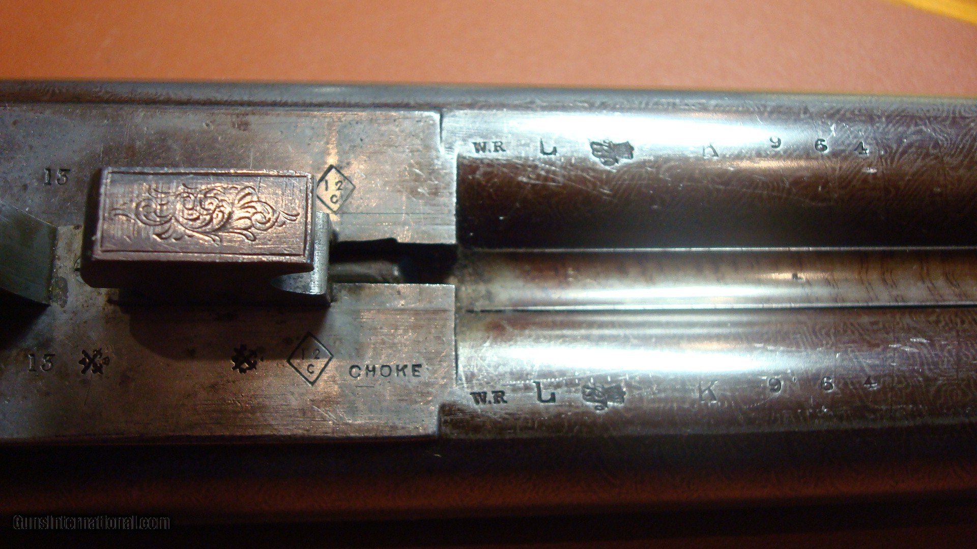 Description: A nice old Westley 12 gauge double hammer gun. I am not a knowledgeable English Double guy so I will have to let the photos do the talking. Bore looks good with small dents. The gun is slightly off face. Will ship in the lower 48 states where legal for $55.00. ATTEN: SINCE LISTING THIS SHOTGUN I HAVE BEEN INUNDATED WITH QUESTIONS ABOUT SHOOTING IT, WALL THICKNESS, CHAMBER DIMENTIONS, PROOF MARKS AND MORE. IT WAS NEVER MY INTENTION TO SELL THIS TO HUNT WITH OR SHOOT. IT IS JUST AN OLD ENGLISH DOUBLE HAMMER GUN TO ME. PLEASE MAKE YOUR OWN DECISIONS ABOUT SHOOTING IT BASED ON A GUNSMITH OR ENGLISH DOUBLE EXPERT'S ADVICE. SOLD Manufacturer: Westley Richards Model: K Series Serial Number: K964 Barrel Length: 30 Inch |