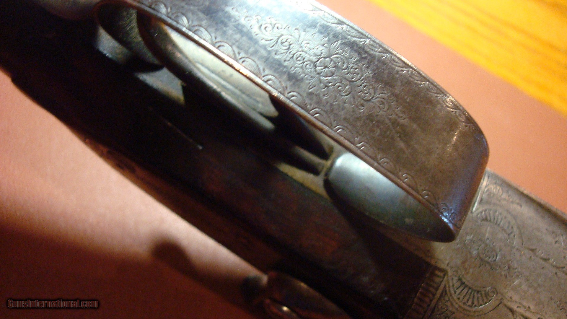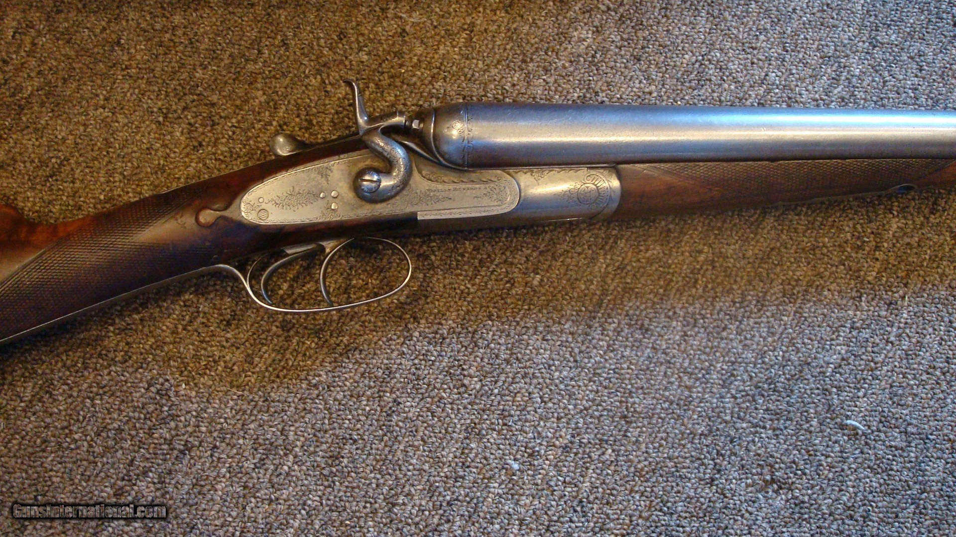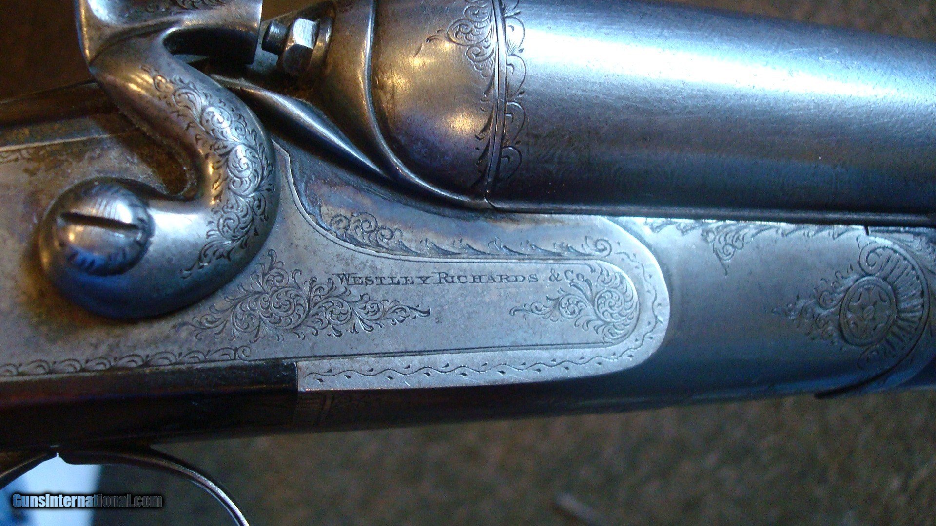 Description: A nice old Westley 12 gauge double hammer gun. I am not a knowledgeable English Double guy so I will have to let the photos do the talking. Bore looks good with small dents. The gun is slightly off face. Will ship in the lower 48 states where legal for $55.00. ATTEN: SINCE LISTING THIS SHOTGUN I HAVE BEEN INUNDATED WITH QUESTIONS ABOUT SHOOTING IT, WALL THICKNESS, CHAMBER DIMENTIONS, PROOF MARKS AND MORE. IT WAS NEVER MY INTENTION TO SELL THIS TO HUNT WITH OR SHOOT. IT IS JUST AN OLD ENGLISH DOUBLE HAMMER GUN TO ME. PLEASE MAKE YOUR OWN DECISIONS ABOUT SHOOTING IT BASED ON A GUNSMITH OR ENGLISH DOUBLE EXPERT'S ADVICE. SOLD Manufacturer: Westley Richards Model: K Series Serial Number: K964 Barrel Length: 30 Inch |