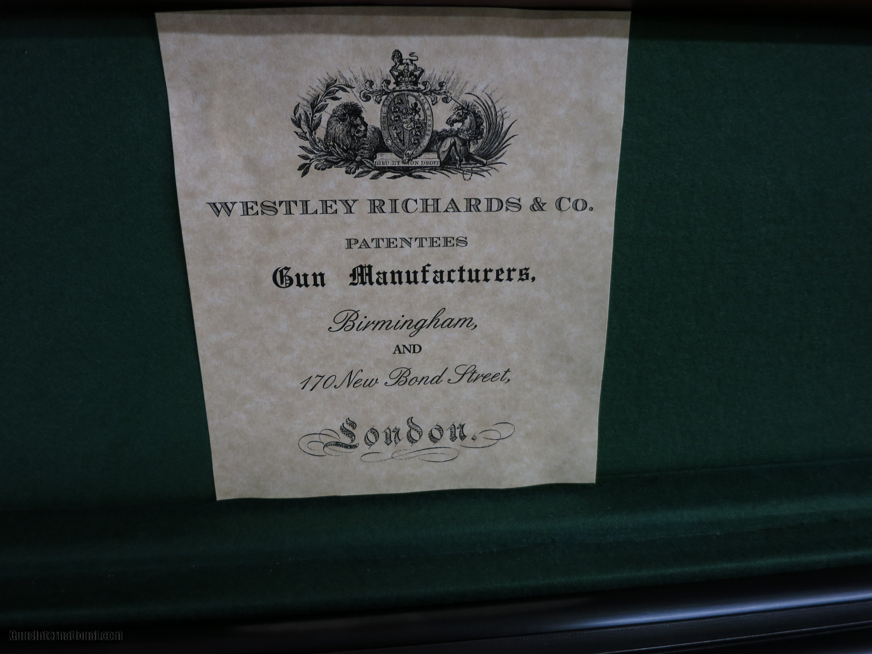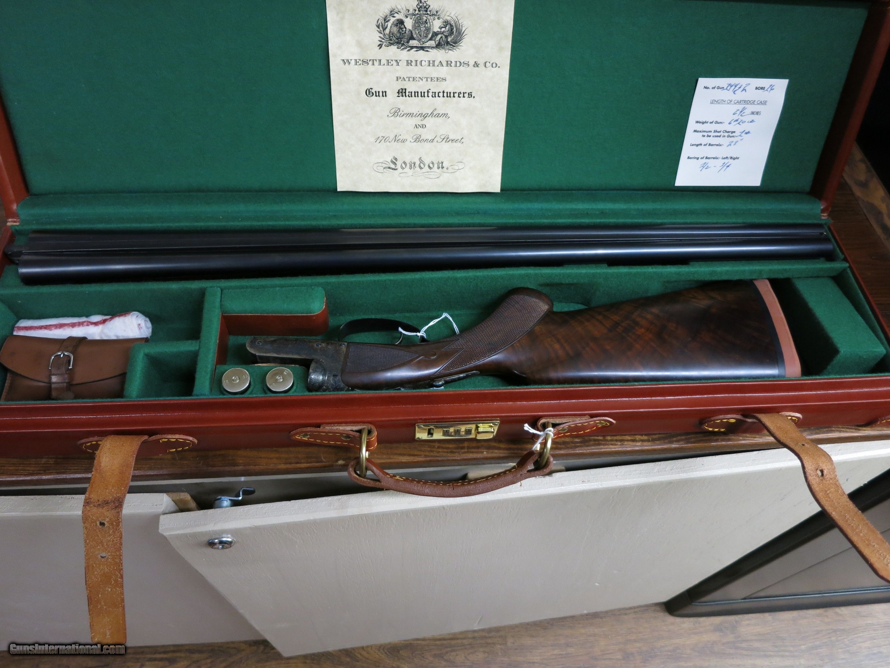 Description: "SALE PENDING" WESTLEY RICHARDS BEST GRADE BLE, T BOLT, 16 ga. COMES WITH NEW BELGIUM BARRELS, MILLER NON SELECTOR TRIGGER, 28" BARRELS CHOCKED I/C / I/C LOP IS 14 3/8" DAC IS 1 1/2" DAH IS 2 1/4". AWESOME WOOD & SCALLOPED FRAME. ONE SMALL CHIP AT PISTOL GRIP CAP. CASED AND READY TO FOLLOW THE DOGS AROUND. CALL OR E-MAIL WITH QUESTIONS: SOLD |