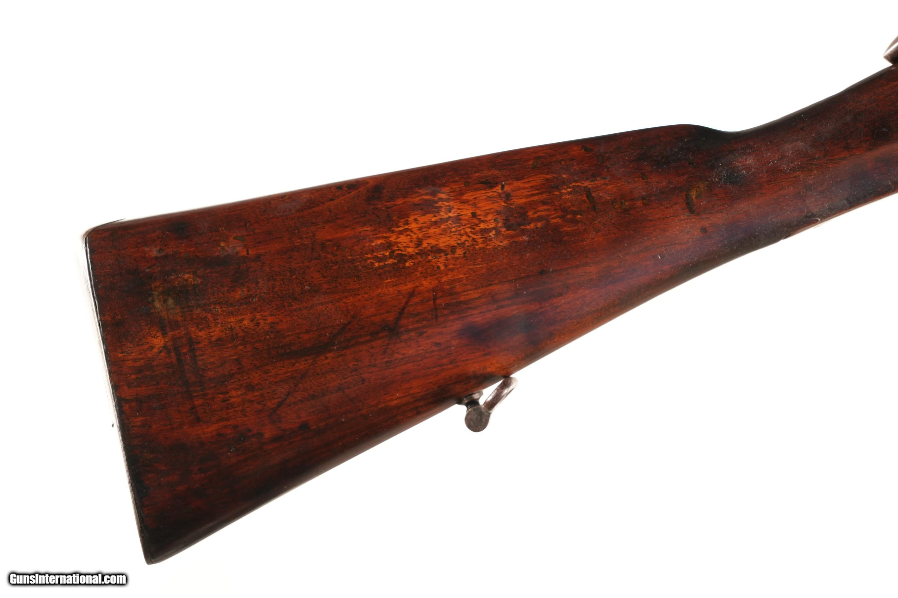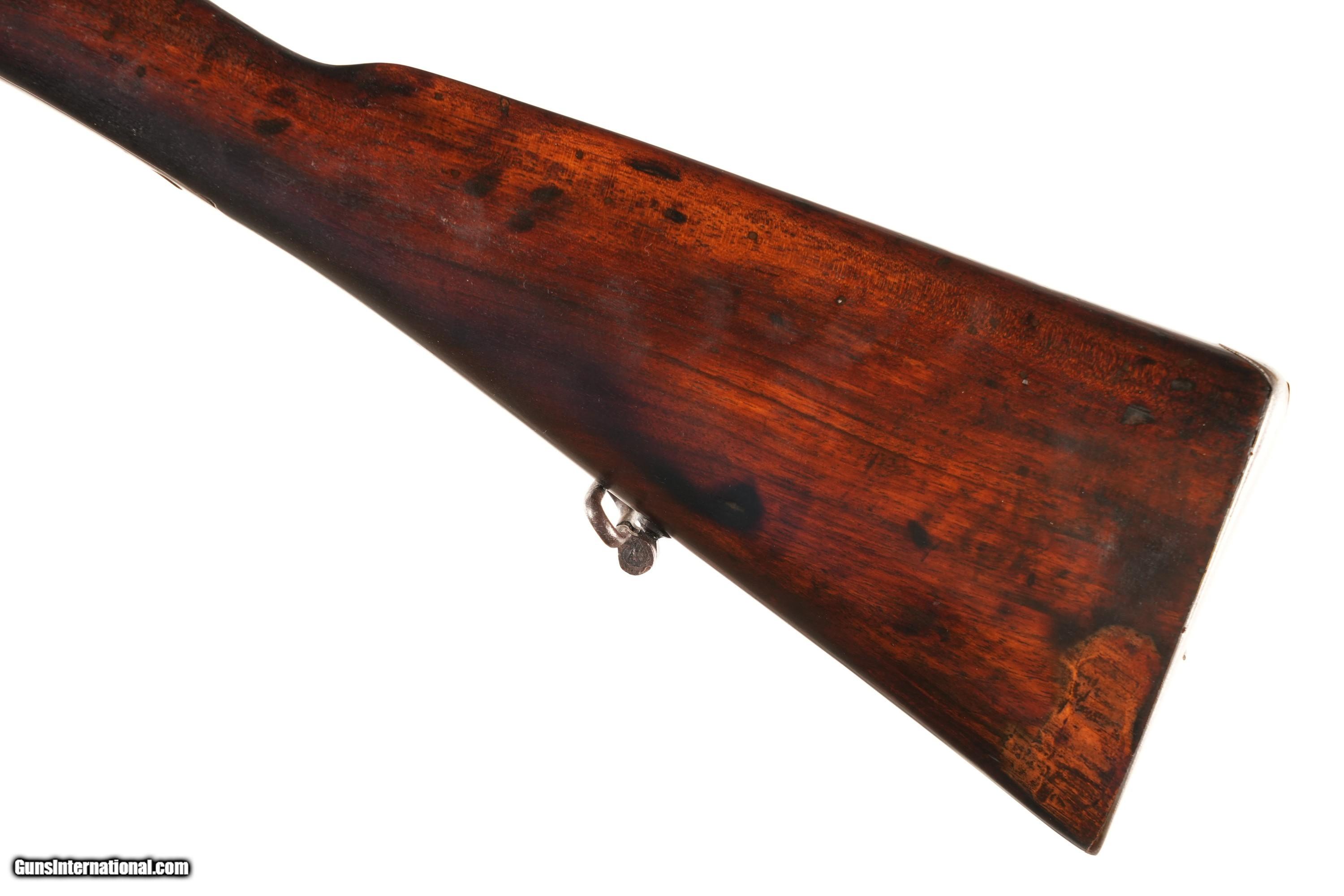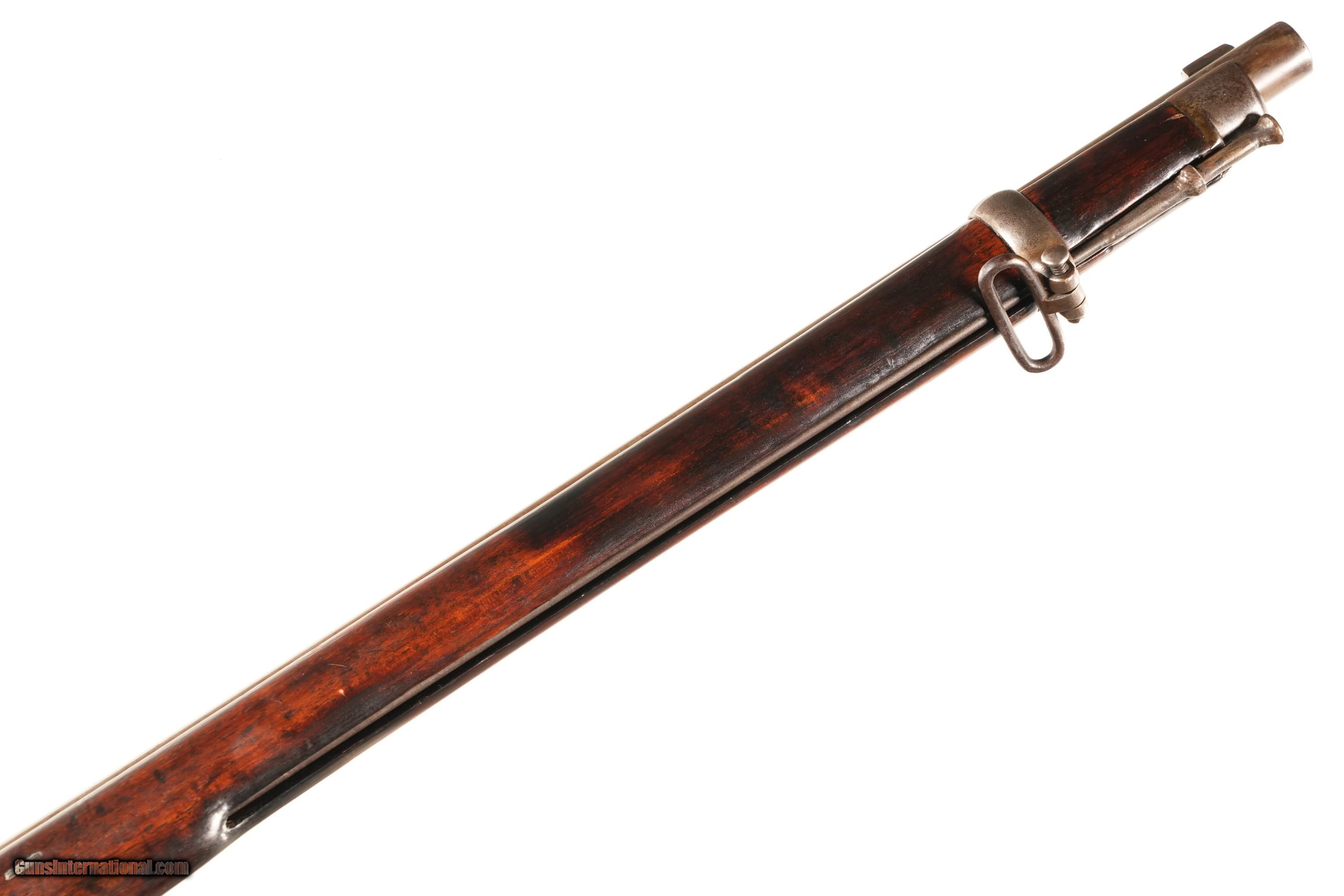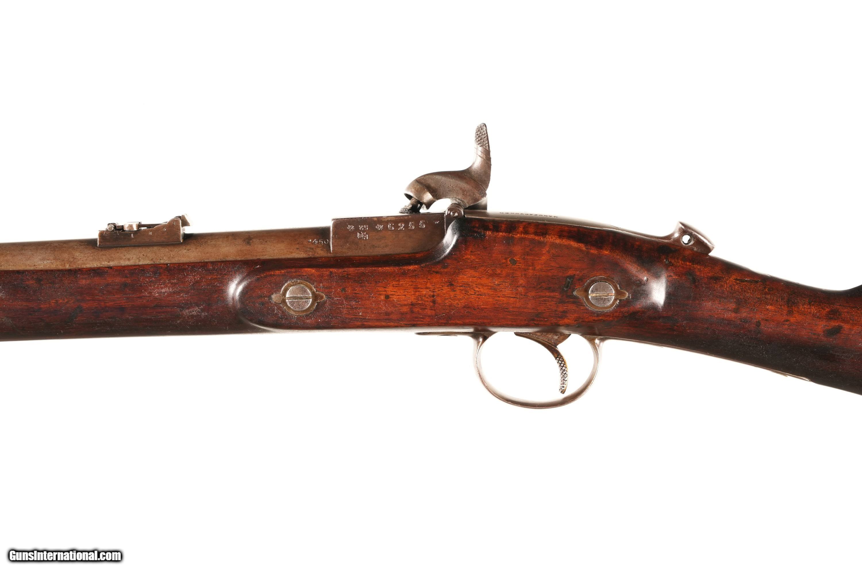 Description: Westley Richards Monkeytail Percussion Carbine – .450 Whitworth – 25" Barrel Serial #6255 | Dated 1873 | .450 Whitworth Caliber | No. 4473 A fine example of the Westley Richards Monkeytail Percussion Carbine, chambered in .450 Whitworth and dated 1873, this scarce breechloader features the distinctive monkeytail lever breech system. This particular model likely served a commercial or colonial market and retains the original character and working integrity that made Westley Richards a major name in 19th-century firearms innovation. Features a 25" barrel, percussion ignition, and military-style sights. The bore is bright and sharply rifled, showing the accuracy potential of the Whitworth pattern rifling. Metal surfaces have aged to a mottled, untouched patina, and the gun remains in mechanically sound condition.