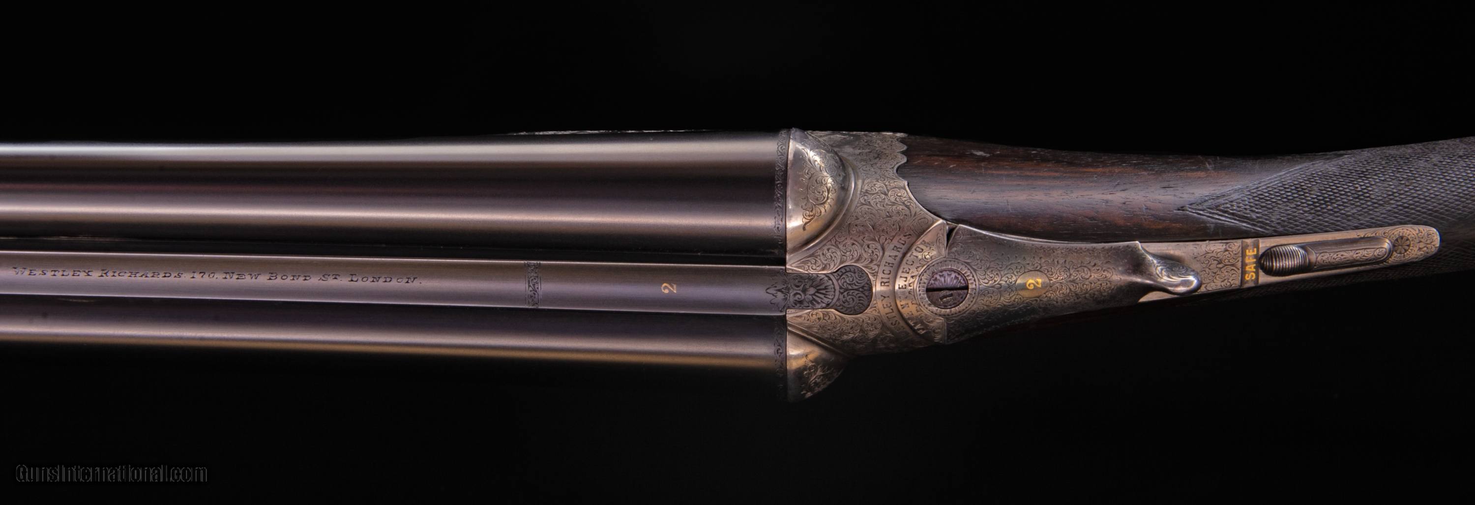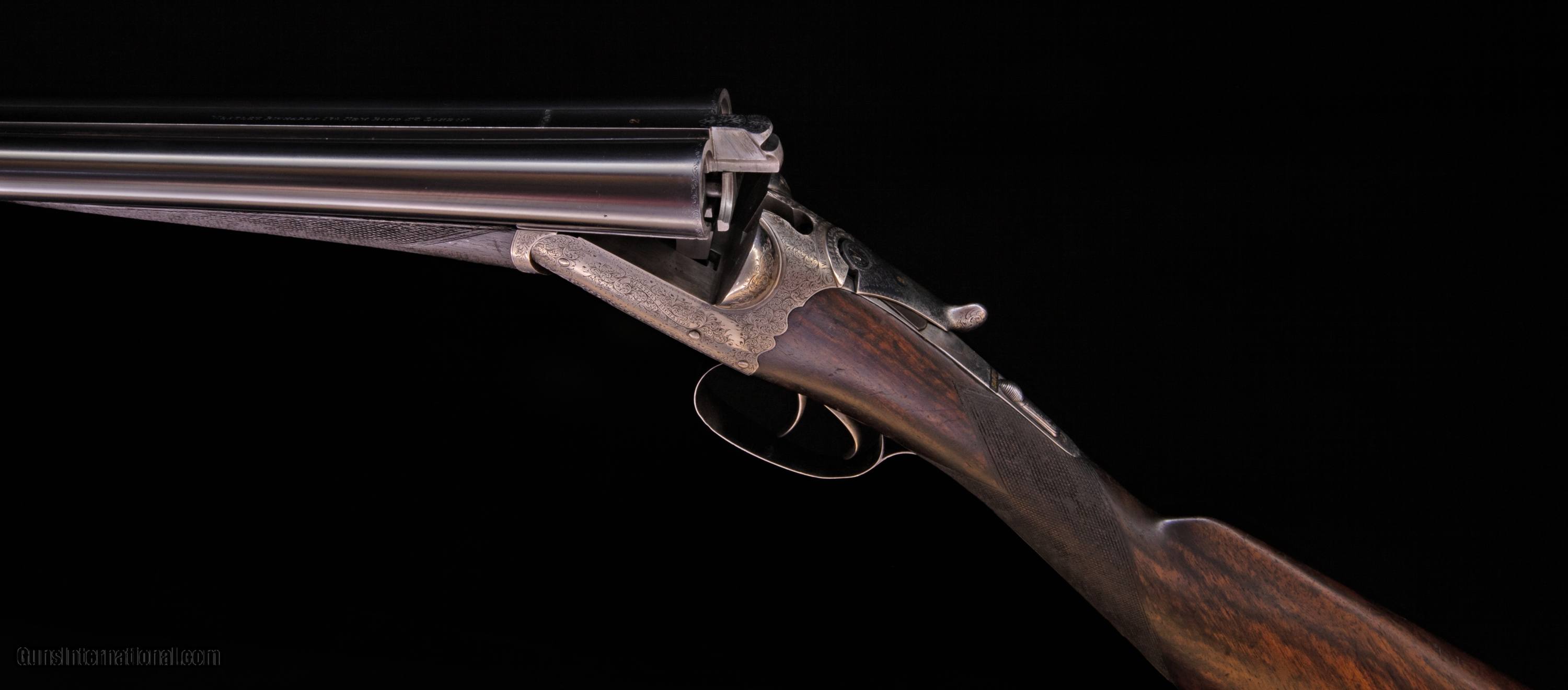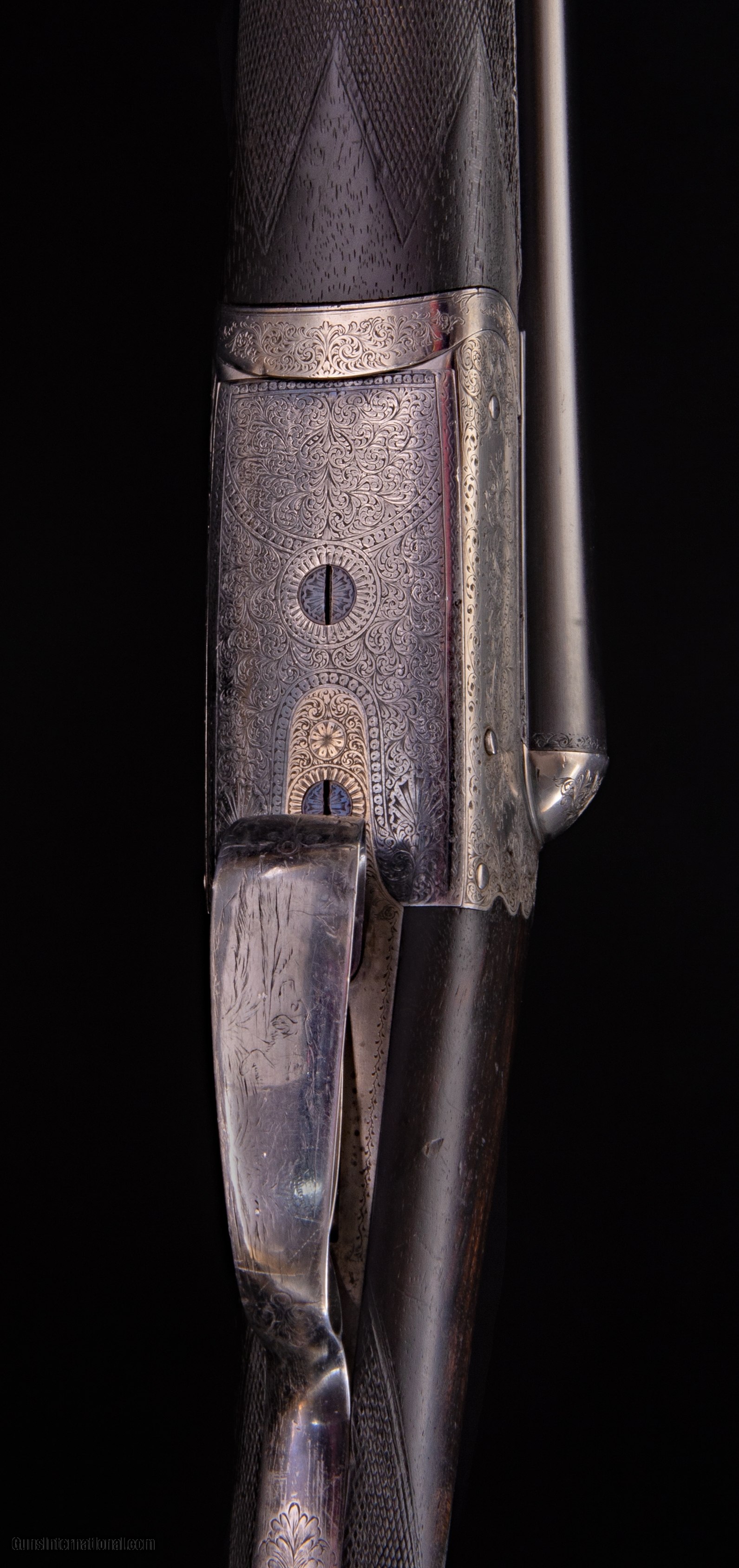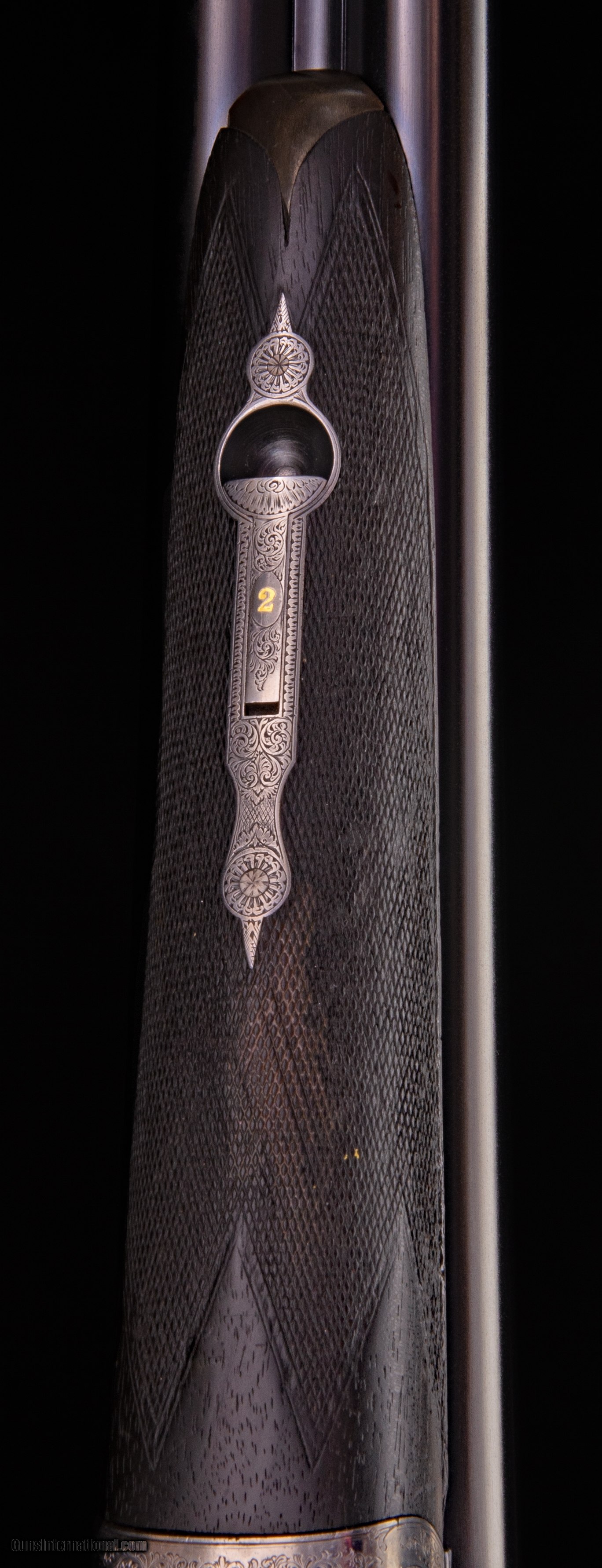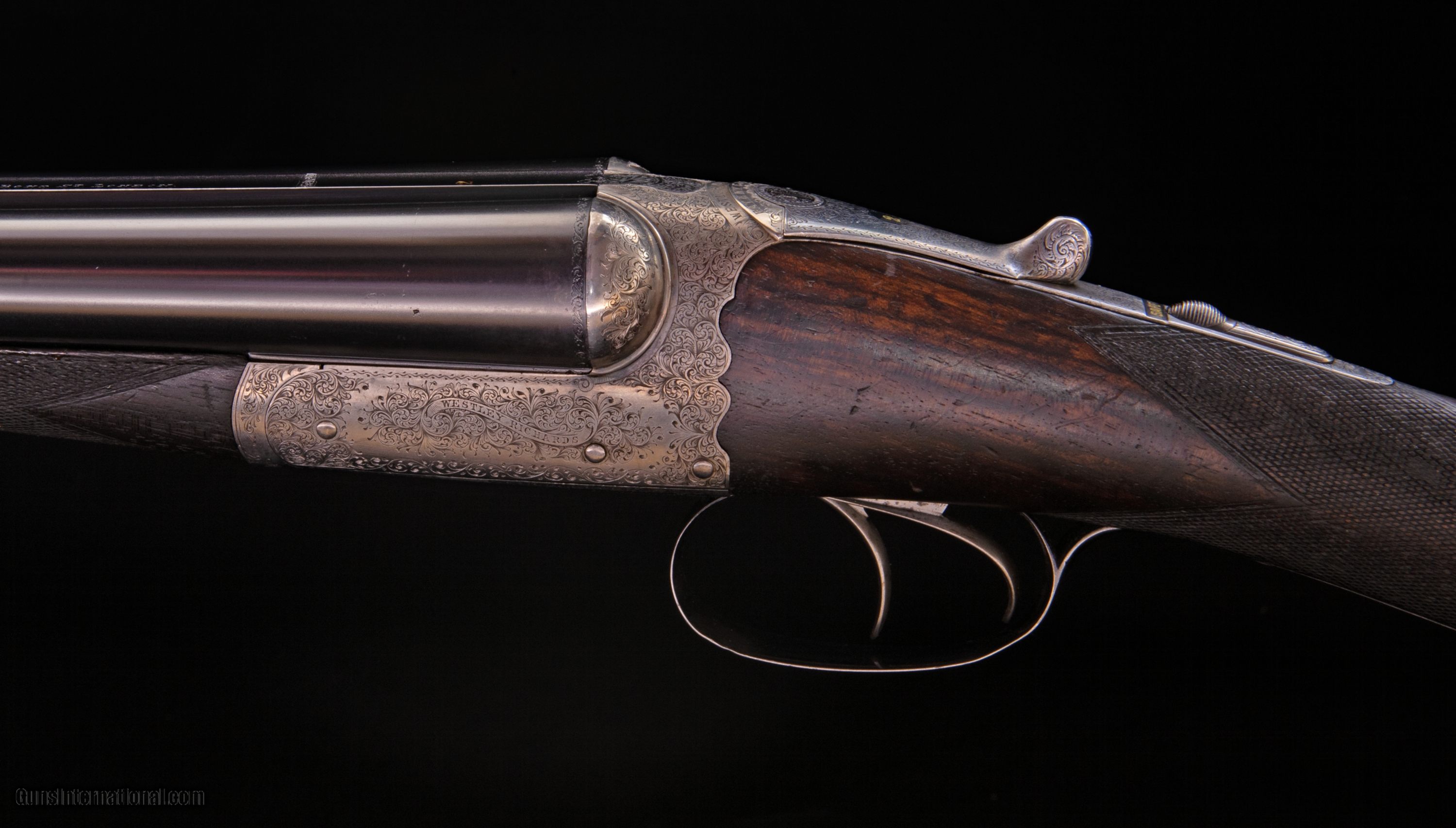Description: Boxlocks - Beautiful engraving and wood on this high grade Westley. I love the scalloped rounded action. The gun balances and handles extremely well with just a touch of barrel weight forward which is the way I personally like them. *** Note: To see this gun with high resolution photos and a zoom-in feature, go to the vintagedoubles main site and search for the gun ID: 4585 or browse the main site to see our full gun collection. SOLD Manufacturer: Westley Richards Deluxe Scalloped Boxlock ~ check out the wood and engraving! Miss priced so am re-listing. Model: None Serial Number: 15216 Ejectors: Yes Barrels: 30 Barrel Type: Sleeved Action: Box lock ejector Gauge Info: 12 gauge Stock Comb: 1 1/2 Stock Heel: 2 1/8 Stock Cast: 3/8 LOP: 14" to checkere Weight: 6 lbs. 3oz. Choke Left: .015 Mod Choke Right: .015 Mod Proof:Nitro: 2 1/2 Minimum Wall Thickness Left: .020 Minimum Wall Thickness Right: .023 |