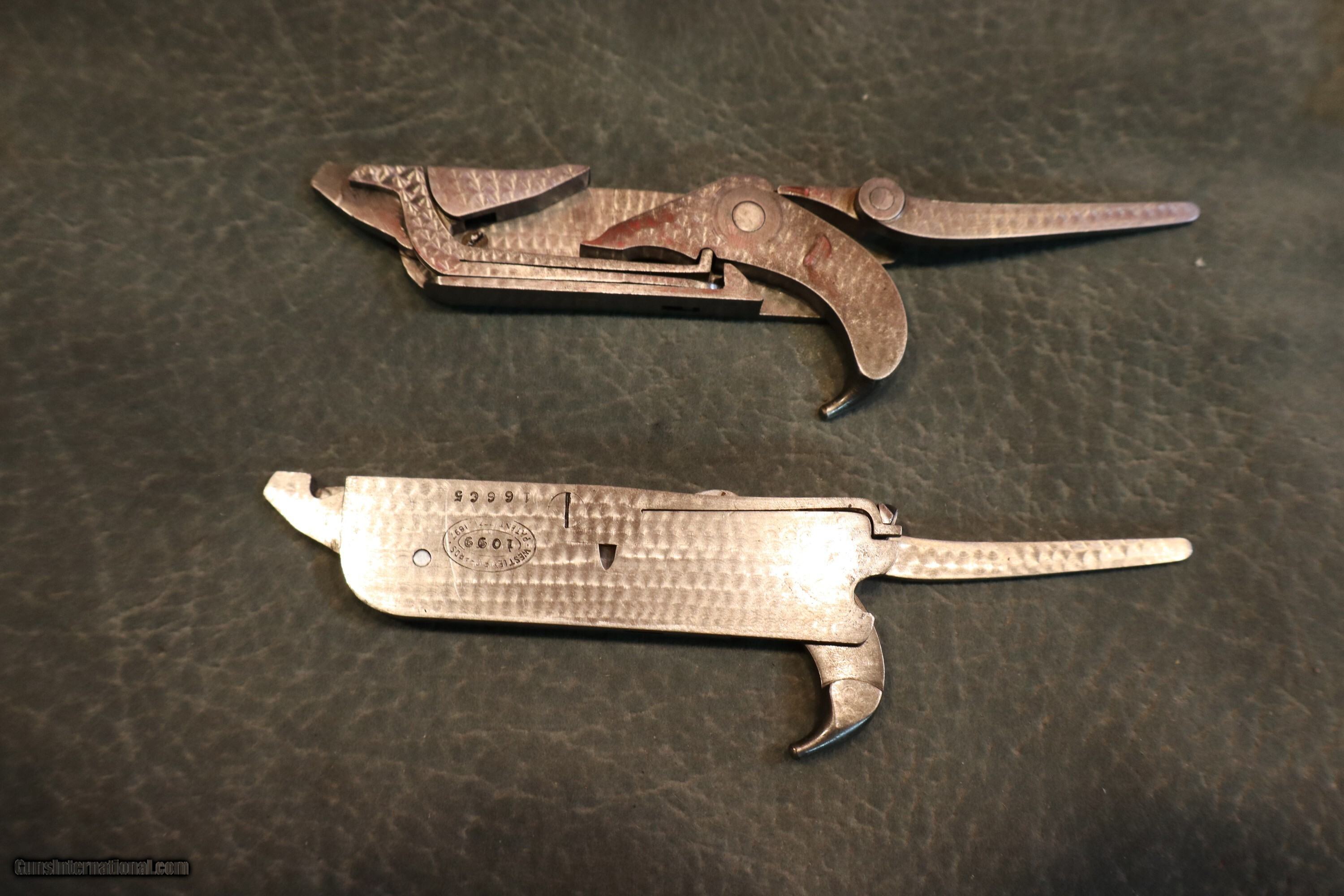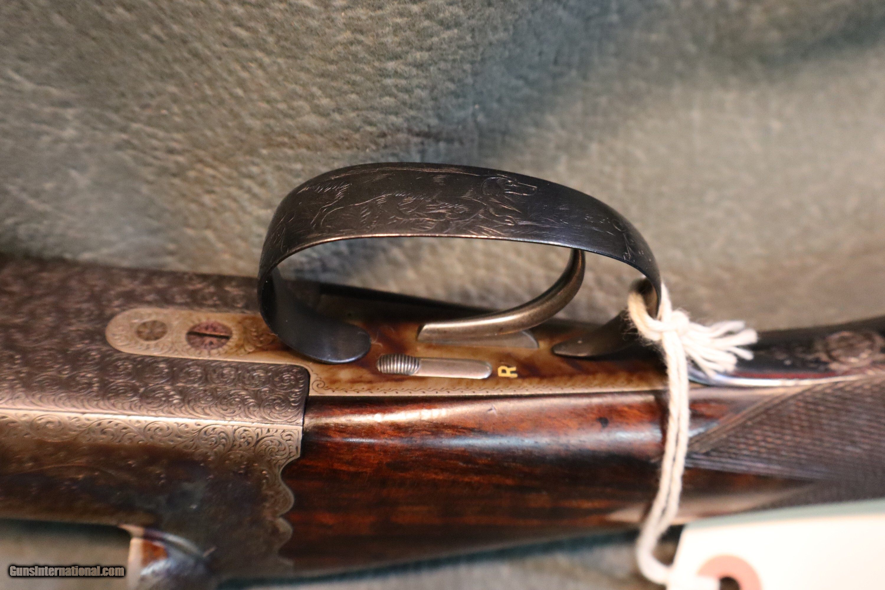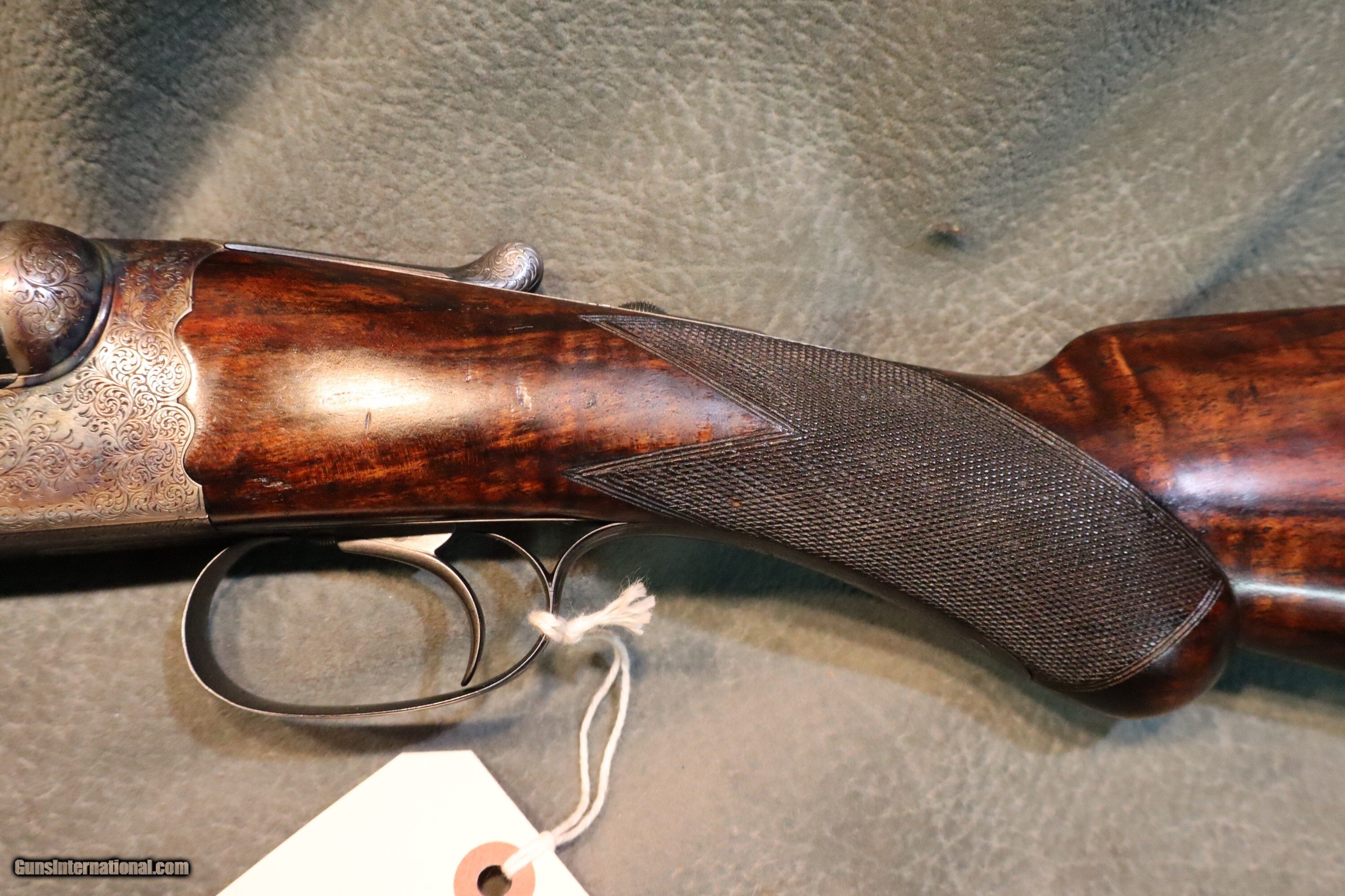 Description: Westly Richards Droplock 12ga 2 3/4" 27" IC/IM chokes,made in 1905 and returned to Westley Richards in the 50s for modern steel barrels and refinishing,single selective trigger,automatic ejectors,serial #16665,scroll engraved casecolored receiver,excellent bluing,high grade checkered pistol grip stock with mullered borders,beavertail forearm,14 3/8" LOP,7.3 lbs.A beauty! GUN COLLECTIONS WANTED FOR CASH! We buy, sell, consign and trade new and used firearms.We travel for large collections,finders fee available. This is our 50th year in business. We offer 90 day layaways with 20% down. No return on layaways. Firearms will need to be transferred through a FFL dealer. Prices reflect a cash discount. There will be 3% added to credit card sales. We trade for gold and silver. THANK YOU! Price: $10,995.00 Shipping: $125.00 Contact Seller |