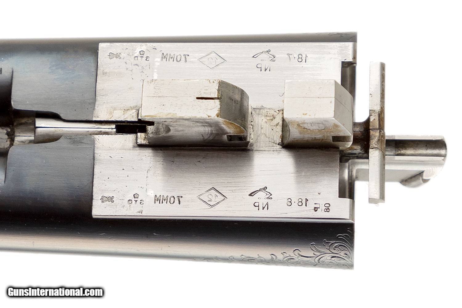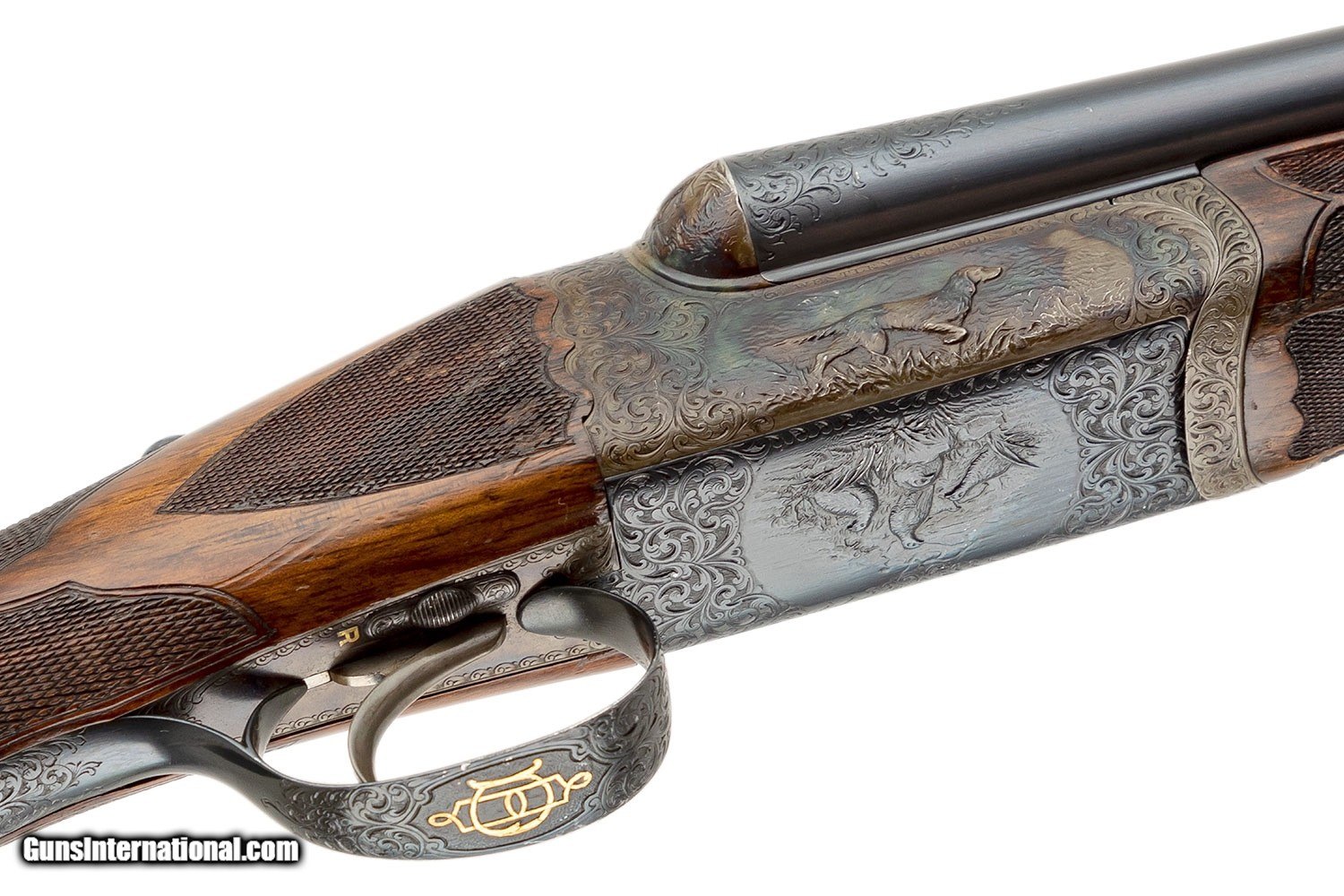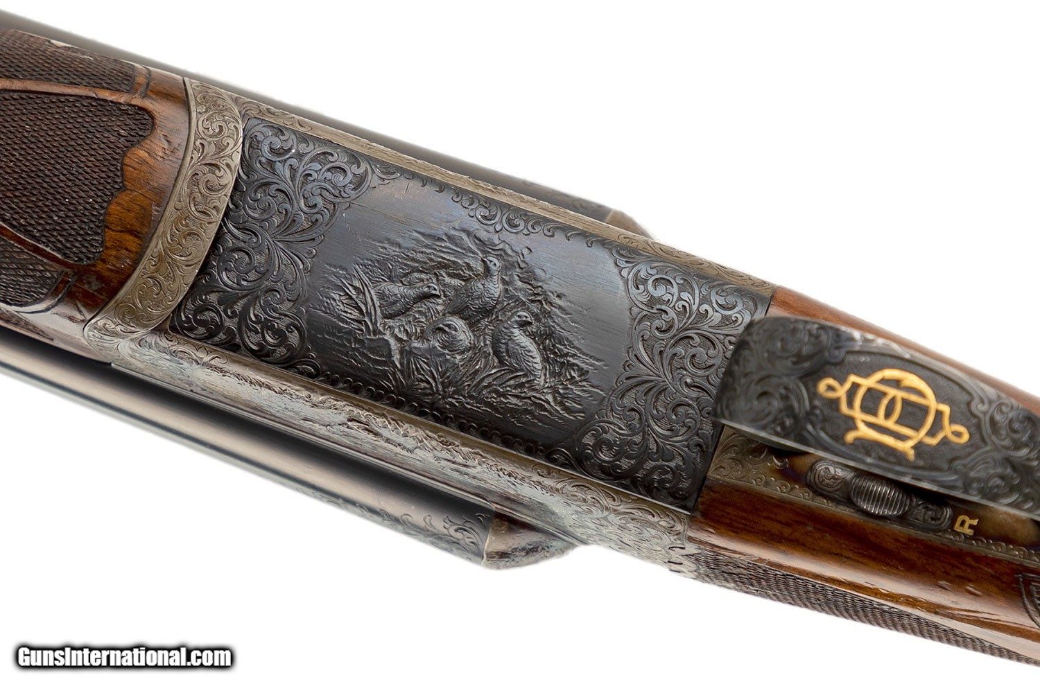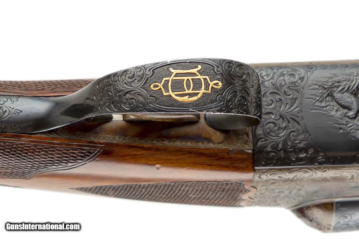 Description: SN# 17XXX 28" SOLID RIB BARRELS (.013 AND .019 CONSTRICTIONS) 2 3/4" CHAMBERS LONDON REPROOF 2008 TO 2 3/4" WALLS: .023 LT, .023 RT BORES: .739 LT, .737 RT SINGLE SELECTIVE TRIGGER EJECTORS SPLINTER FOREARM ENGLISH GRIP CHECKERED BUTT GREAT REFINISHED CONDITION WITH SOME LIGHT HANDLING FEW MINOR FINSIH SCRATCHES ON BARREL BORES ARE BRIGHT AND SHINY 6LBS 2 OZ 2 1/8" DAH 1 1/2" DAC 14 5/8" LOP CASED EXTRA SET OF LOCKS IN FAUX CROCODILLY CASE SOLD |