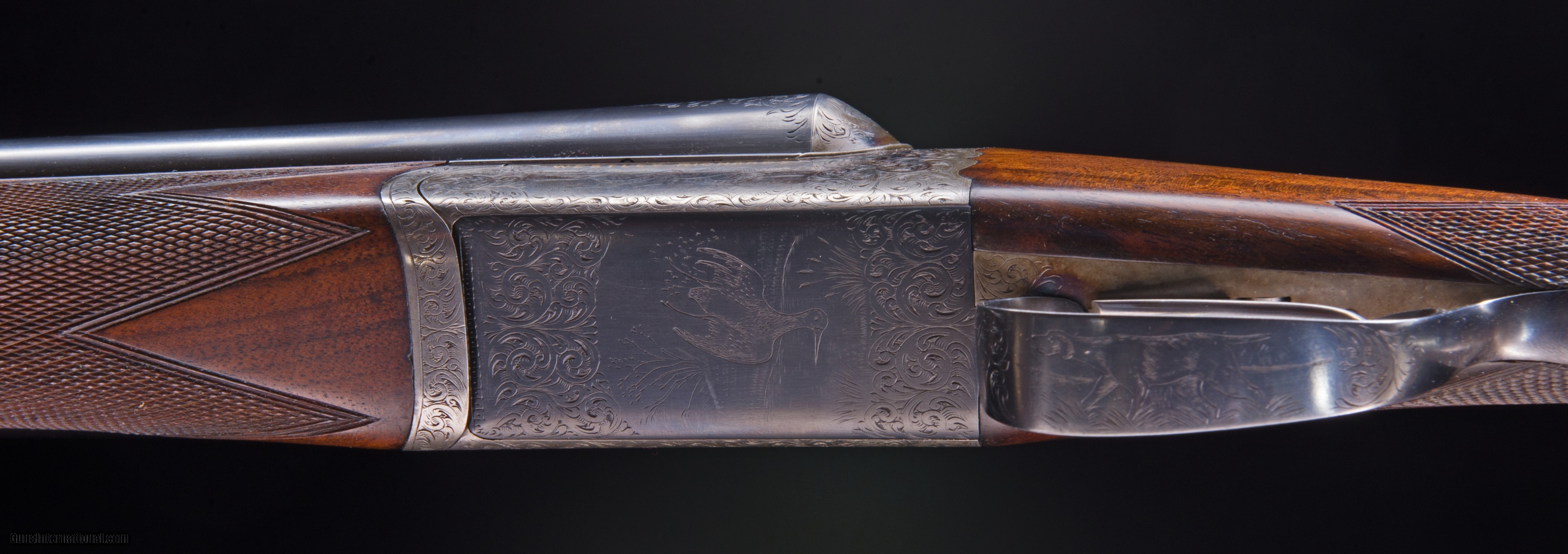 This gun is beautiful to behold with its wonderful engraving and stunning marbled English walnut. *** Note: To see this gun with high resolution photos and a zoom-in feature, go to the vintagedoubles main site and search for the gun ID: 3936 or browse the main site to see our full gun collection.