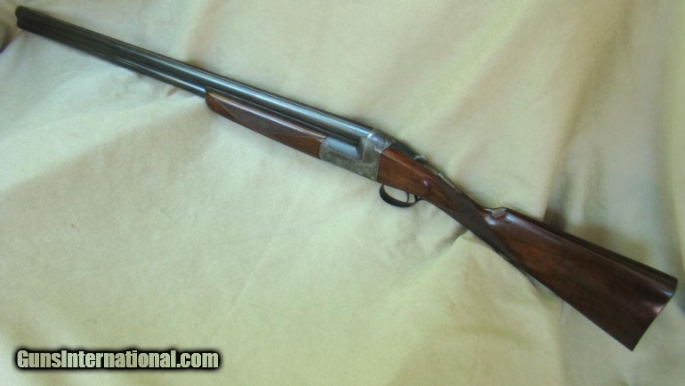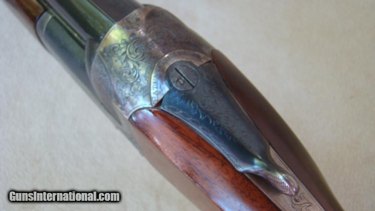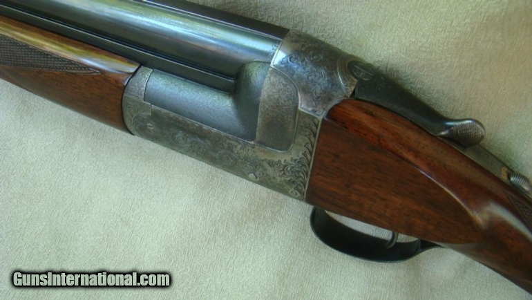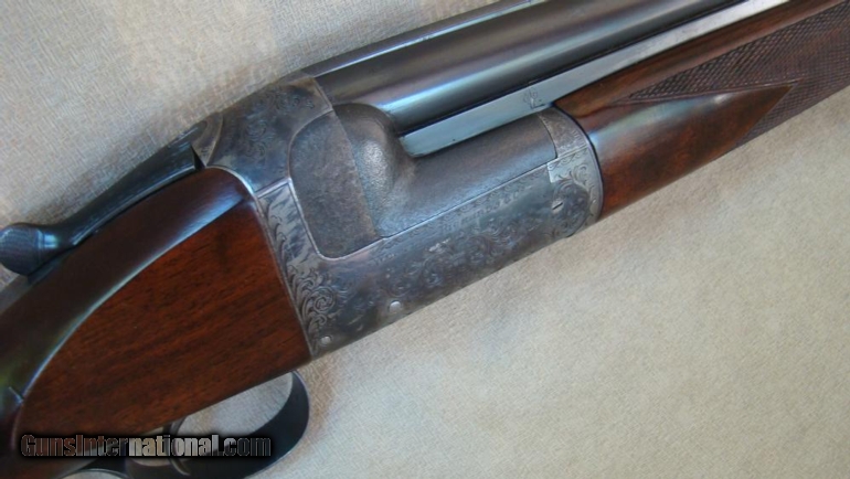 Description: Westley Richards Ovundo 12 ga., 28" solid rib barrels, 2-5/8" chambers, choked improved cylinder and improved modified (.011/.022), automatic ejectors. Scroll engraved action features patented sliding top bolting. Westley selective "one trigger" and automatic safe. Stock and forend of dark European walnut with nicely contrasting color and fiddleback measures 1-5/8" comb, 2-1/8" heel, 14-1/4" LOP to the rear position trigger. Weighing just 6 lbs, 11 oz. and balancing at the pin, the gun has a lively feel in your hands. A seldom-seen vintage British O/U that doesn't break the bank!! SOLD |