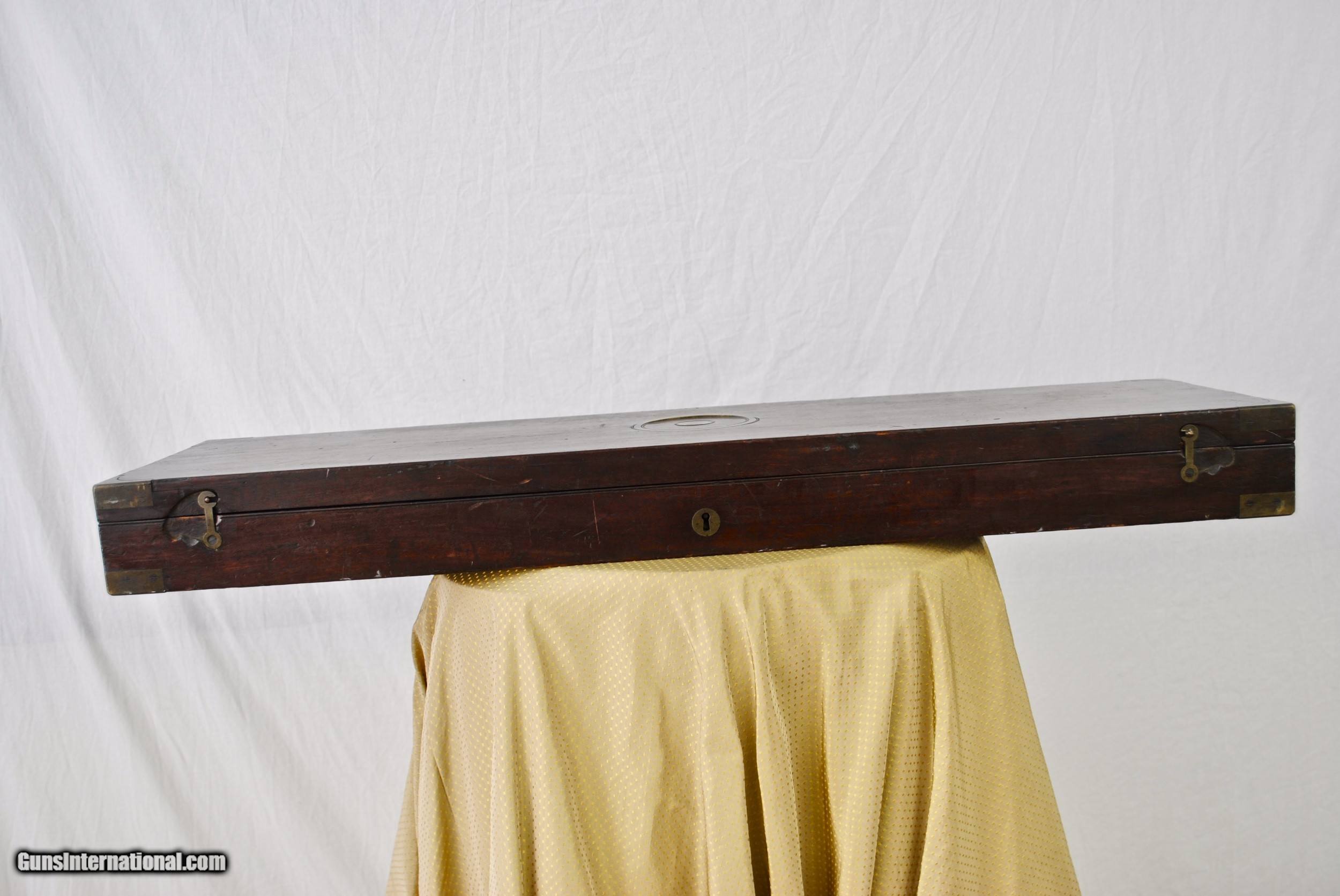 Description: Here is an Westley Richards Percussion Shotgun in excellent condition with makers case and assesories as shown. Fully functional with excellent bores - no visable pitting. Bores measure .725. Barrels are 30". Lock work remains in great condition with the typical half and full cock system. Engraving is sharp in all areas. Case color is strong. Weight of gun is 6 LBS 14 1/2 OZ. Well figured straight grip stock with flat top checkering. No cracks to the wood. LOP is 14 3/8" to a steel butt plate. Drop at come is 1 5/8". Drop at heel is 2 3/8". Shipping is $75 and can be sent directly as local law allows. For inquiries please call Guy - 407-721-3748 SOLD Antique: Yes |