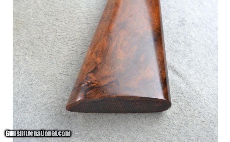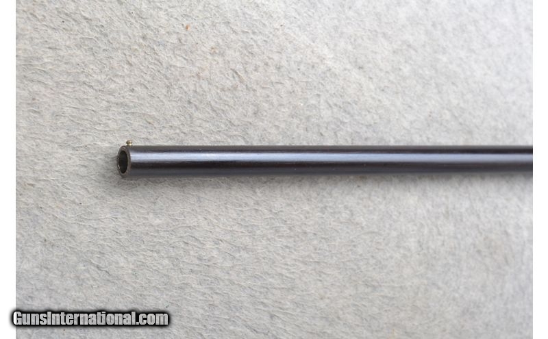 Description: This Westley Richards Single Shot break open is a .410 Ga. shotgun. It has a 26 inch half round half octagon barrel. A brass bead front sight. The butt stock is a checkered grip walnut round knob pistol grip. The forearm is a checkered grip walnut with a black tip. The Pewter colored receiver has a dot pattern and is nicely engraved. S/N 1508. .410 Gauge SOLD Chambers: 2.5 inch. Metal Condition: Very good. Wood Condition: Very good with some light handling marks. Bore Condition: Bright and shiny. Barrels: 26 inch half round half octagon. Stock Dimensions: LOP 14 inch. Fore End: Checkered grip walnut with a black tip. Butt Pad: Checkered butt stock end. Weight: 4 lb. 4 oz. Sights: Brass front bead. Chokes: Fixed Extra Full. Item Location: Richfield, WI |