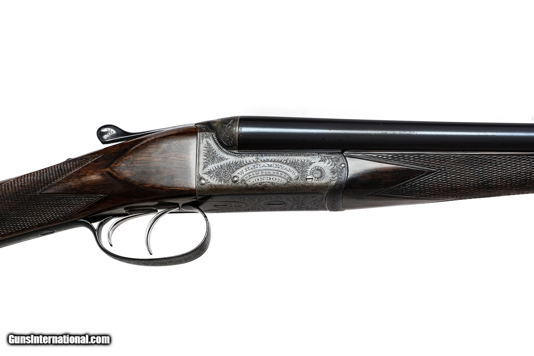 Description: William Evans (From Purdey's London) - SxS, 28ga. 28" Barrels Choked IC/IC. DOUBLE TRIGGER, auto ejector, splinter forend, 2 ½" chamber, dolls head extension, raised panel stock, serrated butt, straight grip, miniature delicate English scroll engraved, nicely figured wood, excellent checkering, very tight, Gold oval , marked on barrels and frame “From Purdey’s London”, very hard to find small bore gun. This gun has lots of blue and case coloring, engraving is sharp and crisp! Just a nice Boxlock gun with all the features! Inv: 77659 5 lbs. 5 oz. 14 ½" x 1 ½" x 2 ¾" $8,995.00 SOLD |