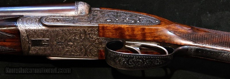 Description: WILLIAM EVANS LONDON, BEST QUALITY SIDELOCK 16GA S/S SHOTGUN, 1925 MFG DATE, CASE COLORED ACTION WITH BEAUTIFUL ORNATE SCROLL & FULL COVERAGE, 28"BBLS WITH DOLLSHEAD 3RD FASTENER, 2 1/2Z', CHOKED 1/4, 3/4, STANDARD GAME RIB, EJECTORS, DBL TRIGGERS, BEAUTIFUL HIGHLY FIGURED WALNUT, ST/SP, LOP 15 3/8 TO TOE & HEEL ENGRAVED PLATES, 1 1/4, 2 1/8, 6LBS 8OZ, MAKER'S CASE WITH ACCESSORIES, 98% BLUE, WOOD, EXCELLENT BORES, TIGHT ACTION ~! SOLD Shotgun Gauge: 16 Gauge Manufacturer: WILLIAM EVANS Model: BEST QUALITY SIDELOCK Barrel Length: 28" BBLS WITH DOLLSHEAD 3RD FASTENER Bore: 16GA Chambers: 2 1/2 Ejectors: YES Condition: 98% CONDITION ! Metal Condition: 98% BLUE Wood Condition: 98% WOOD Bore Condition: EXCELLENT BORES ! Action: S/S Triggers: DBL TRIGGERS Stock: BEAUTIFUL HIGHLY FIGURED WALNUT, ST/SP LOP: LOP 15 3/8 TO TOE & HEEL ENGRAVED PLATES, 1 1/4, 2 1/8 Rib: STANDARD GAME RIB Weight: 6LBS 8OZ Chokes: 1/4, 3/4 Engraving: CASE COLORED ACTION WITH BEAUTIFUL ORNATE SCROLL, FULL COVERAGE Case: MAKER'S CANVAS & LEATHER CASE WITH ACCESSORIES Item Location: SAFARI OUTFITTERS LTD. 2517 ROUTE 44 SALT POINT, NY 12578 |