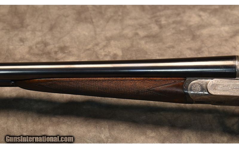 Description: This William Evans London Sidelock 12 Gauge has 2 1/2" Chambers and is choked .005 on the left barrel and .007 on the right barrel. This fine shotgun has elaborate hand engraving on the side plates, underside, and on the trigger guard which compliments the beautiful walnut stock and fore end. 12 Gauge SOLD Chambers: 2 1/2" Chambers Metal Condition: Very Good Wood Condition: Very Good Bore Condition: Excellent Barrels: 30" Barrels Triggers: Double Triggers Stock Dimensions: 14 3/16" LOP Weight: 6 lbs 10 oz Chokes: Left Choke .005 / Right Choke .007 Item Location: Springfield, MO |
