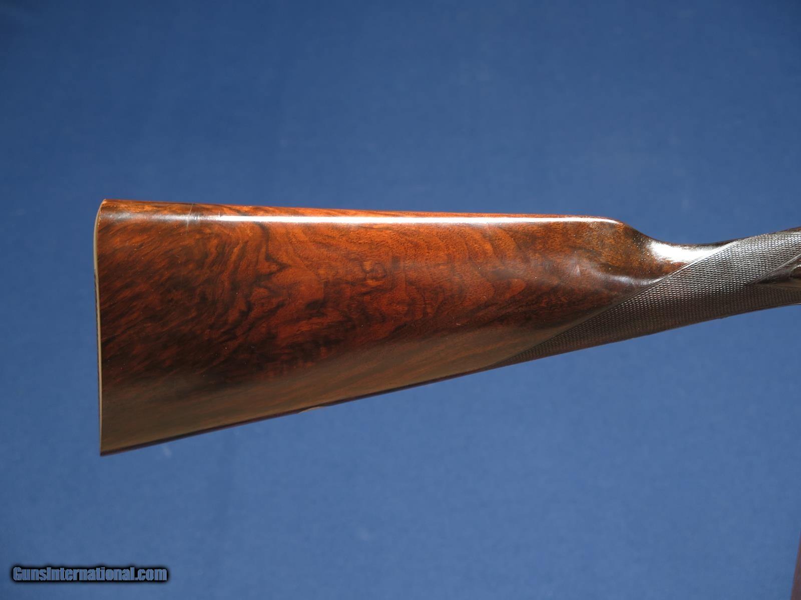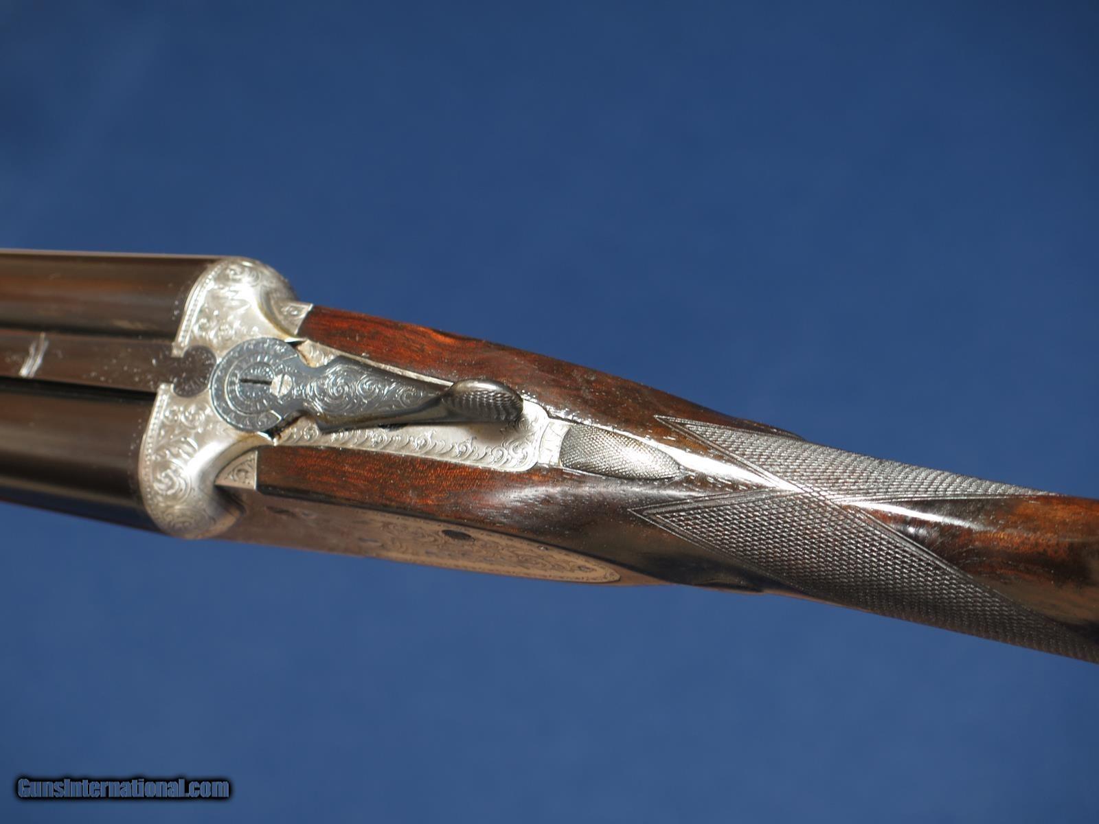 Description: William Evans (From Purdey) London Sidelock 12ga. 28 inch IC & Mod. .010 & .022. Double triggers. Ejectors. Factory reproofed to 2 3/4. Scroll engraved. Coin finish. 15 3/8 LOP checkered butt. 1 1/2 wood added. 97-98% blue. Very nice and tight gun. Excellent bores. With case. We have over 45 years in business, and not only do we buy guns, but we accept collections (and single/multiple guns) on consignment. SOLD |