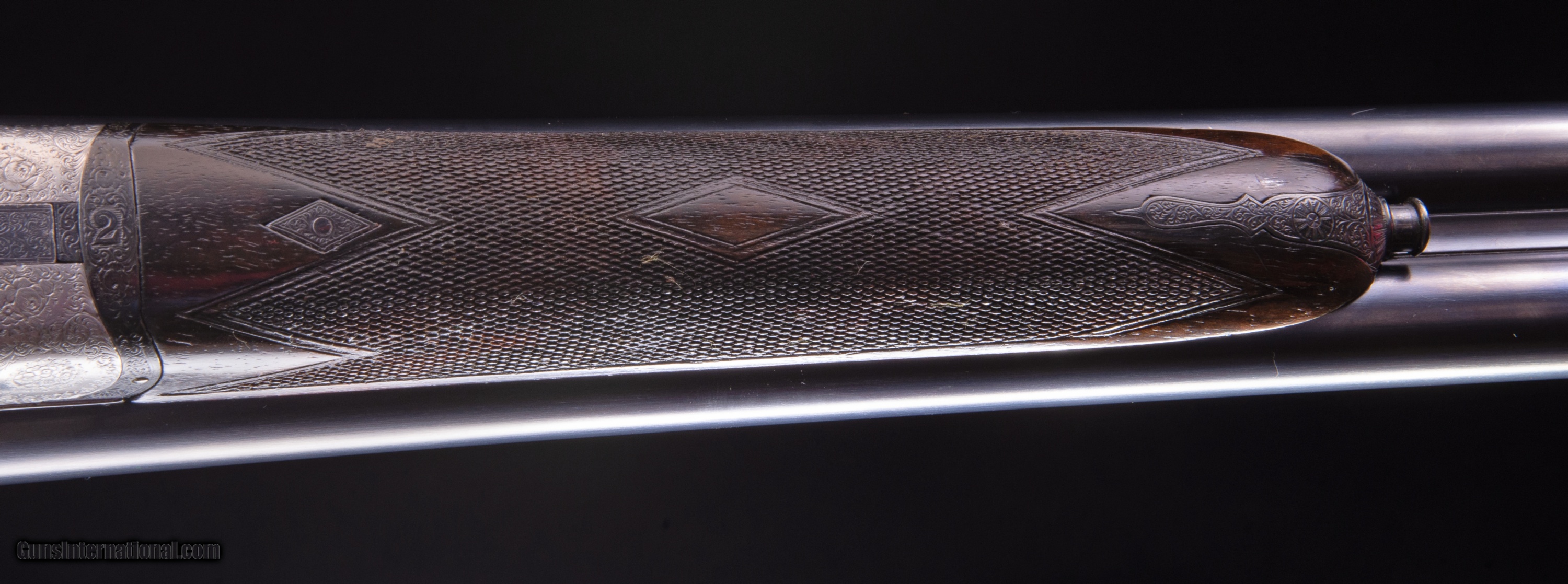 Description: Hammerless Sidelocks - A true Edwardian double completed in 1906. Exceptional wood and engraving on this fine example. Tight on face and field ready and only 6 lbs. 4 oz.! Close to my personal dimensions I am tempted to keep this one as it is in excellent condition but alas I cannot keep them all......... *** Note: To see this gun with high resolution photos and a zoom-in feature, go to the vintagedoubles main site and search for the gun ID: 4725 or browse the main site to see our full gun collection. |