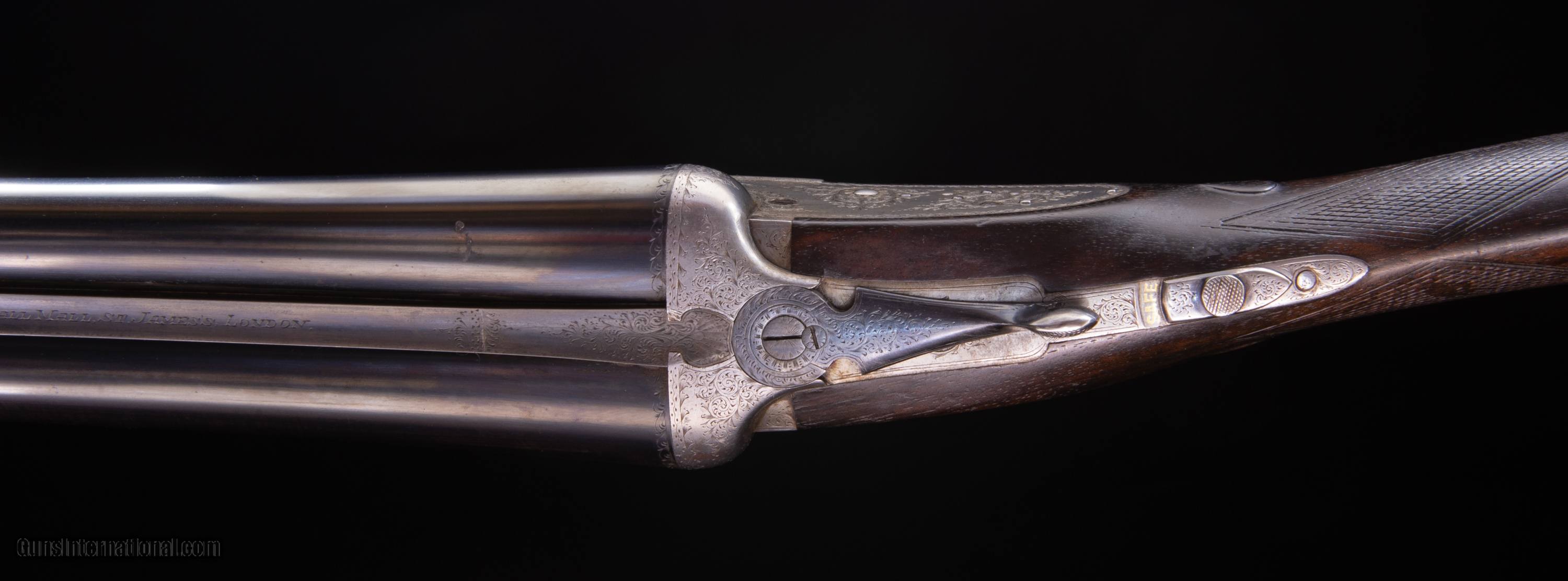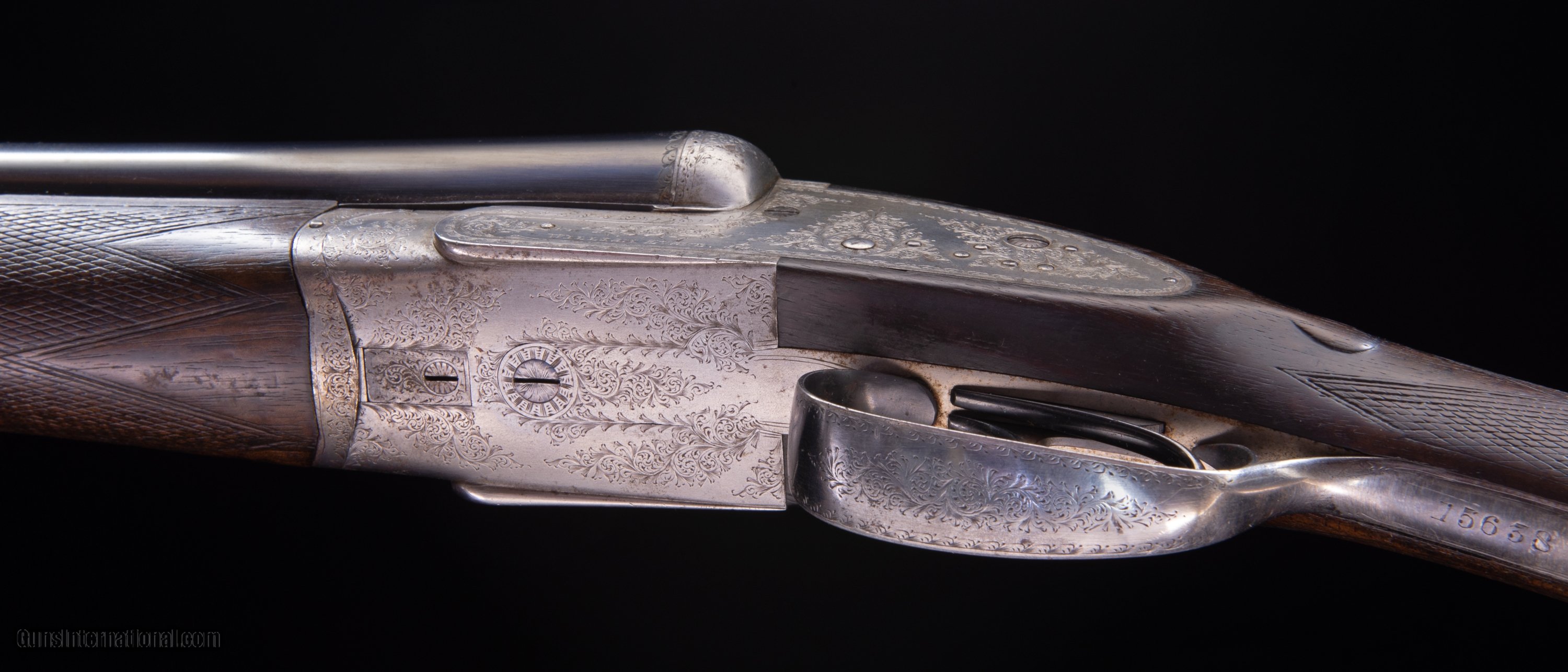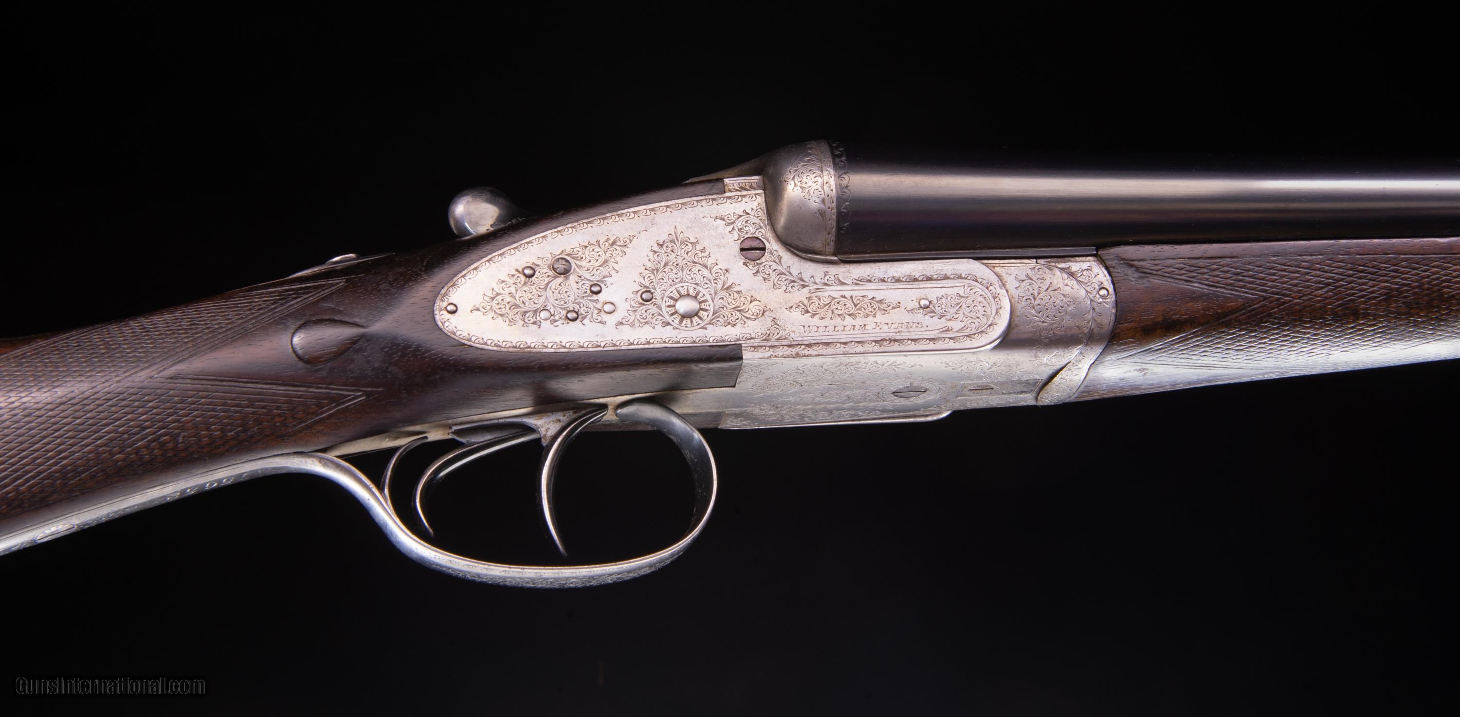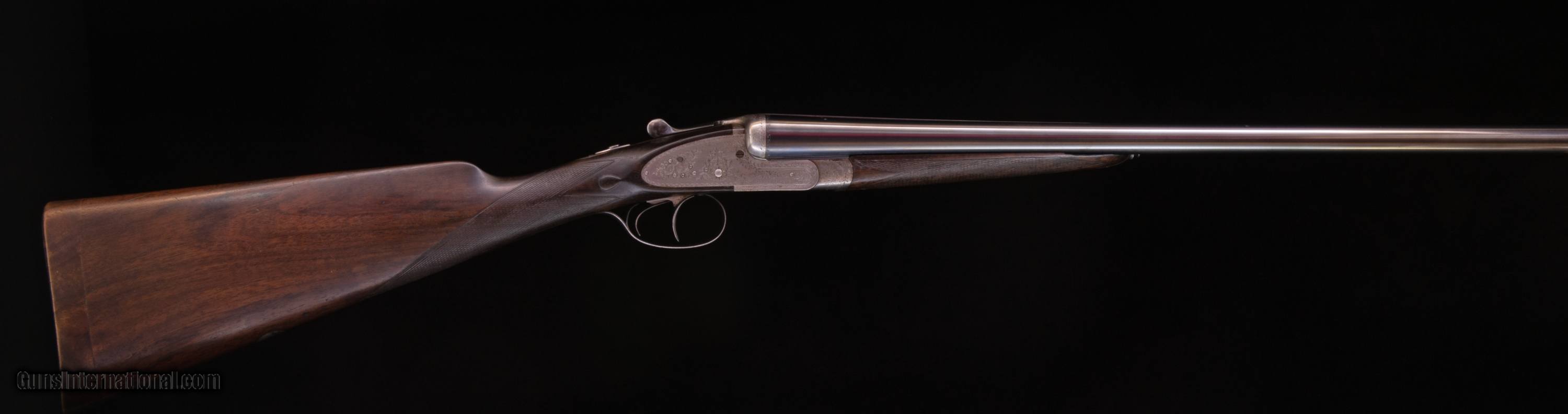 Description: Hammerless Sidelocks - If you can use these stock dimensions this is a bargain! *** Note: To see this gun with high resolution photos and a zoom-in feature, go to the vintagedoubles main site and search for the gun ID: 4814 or browse the main site to see our full gun collection. SOLD Manufacturer: William Evans Sidelock with a cross over stock ~ Built for the right shoulder but to line up with the left eye Model: None Serial Number: 15638 Ejectors: Yes Barrels: 28 Barrel Type: Steel Action: Side lock ejector Gauge Info: 12 gauge Stock Comb: 1 3/8" - 3/4&qu Stock Heel: 2 7/16 Stock Cast: 1 3/16 LOP: 15 7/8" (14 3/4 Weight: 6 lbs. 11 oz. Choke Left: .029 full Choke Right: .029 full Proof:Nitro: 2 1/2 Minimum Wall Thickness Left: .030 Minimum Wall Thickness Right: .026 |