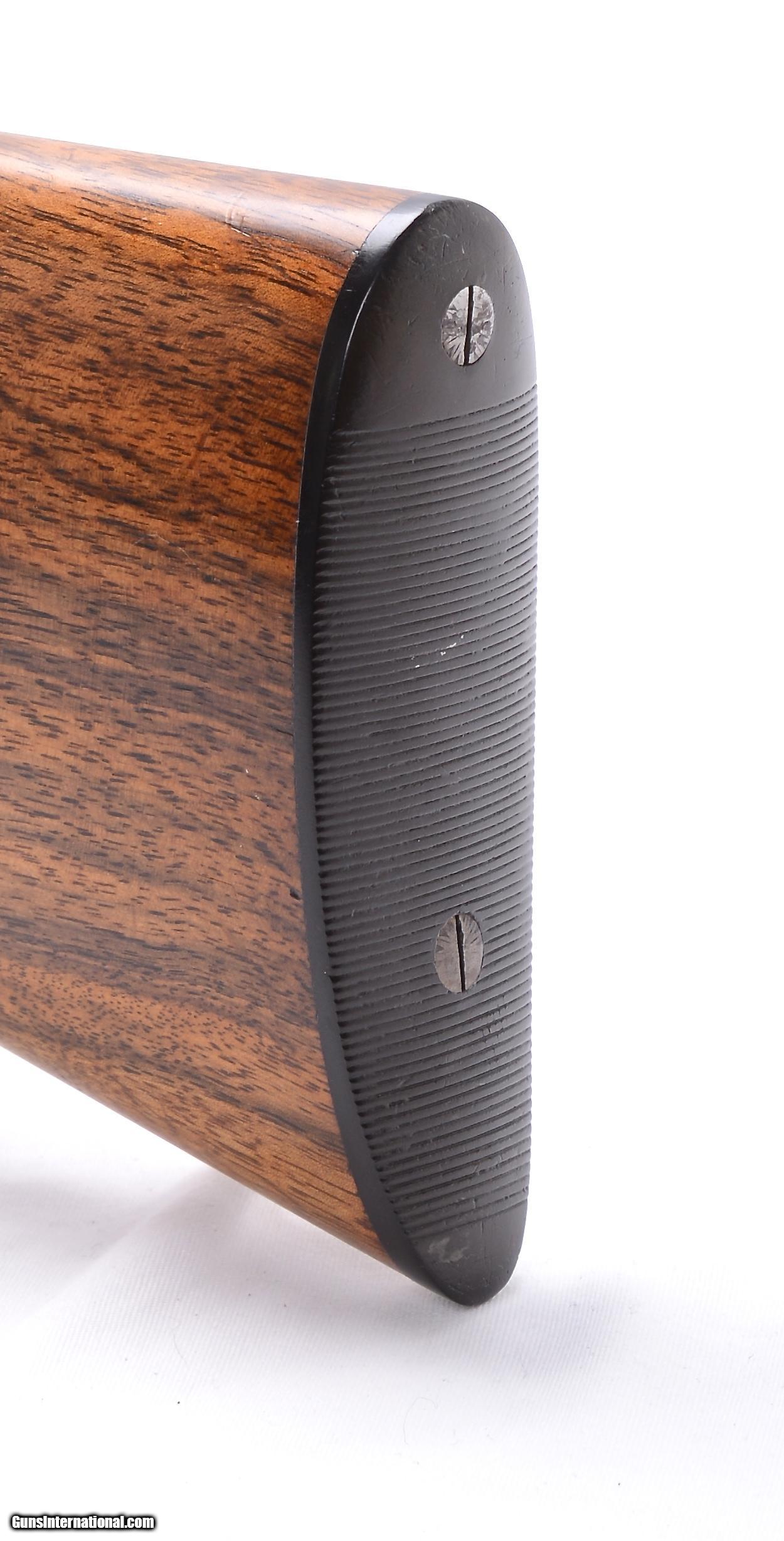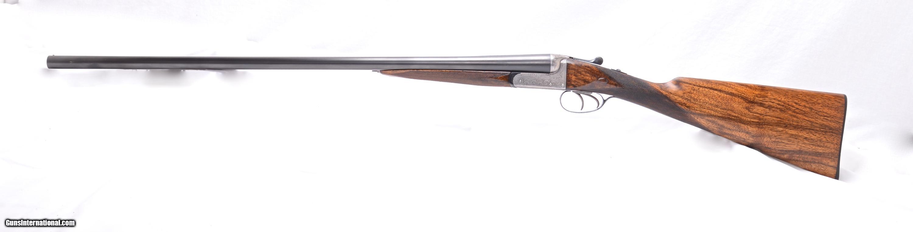 Description: William Evans, London, Boxlock 16 gauge SxS shotgun. Circa 1913 this 16 bore game gun, has double triggers, extractors, straight grip stock, and a splinter forearm. The 28” barrels have a concave/smooth slightly tapered solid rib, .665” bores, the chokes measure .005” & .015” constriction and there is .035” nominal wall thickness which indicates that the bores have never been polished. The bores are bright and shiny but there is a slight “ring” in each barrel about ½ way from the breech to the muzzle. There is also evidence that the rib has be re-soldered. The stock has very modern dimensions of 15” LOP to the factory butt plate, 1 3/8” DAC and 2 9/16” DAH with 3/8” right hand cast. Mechanically the gun is very good, with the forearm off the barrels and action you can feel just a little bit of being “off face”. Weight is a mere 5 lbs. 15 oz. and balances nicely between the hands. This is a great 16 bore game gun that will provide years more of hunting use just the way it is. SOLD Curio/Relic: Yes |