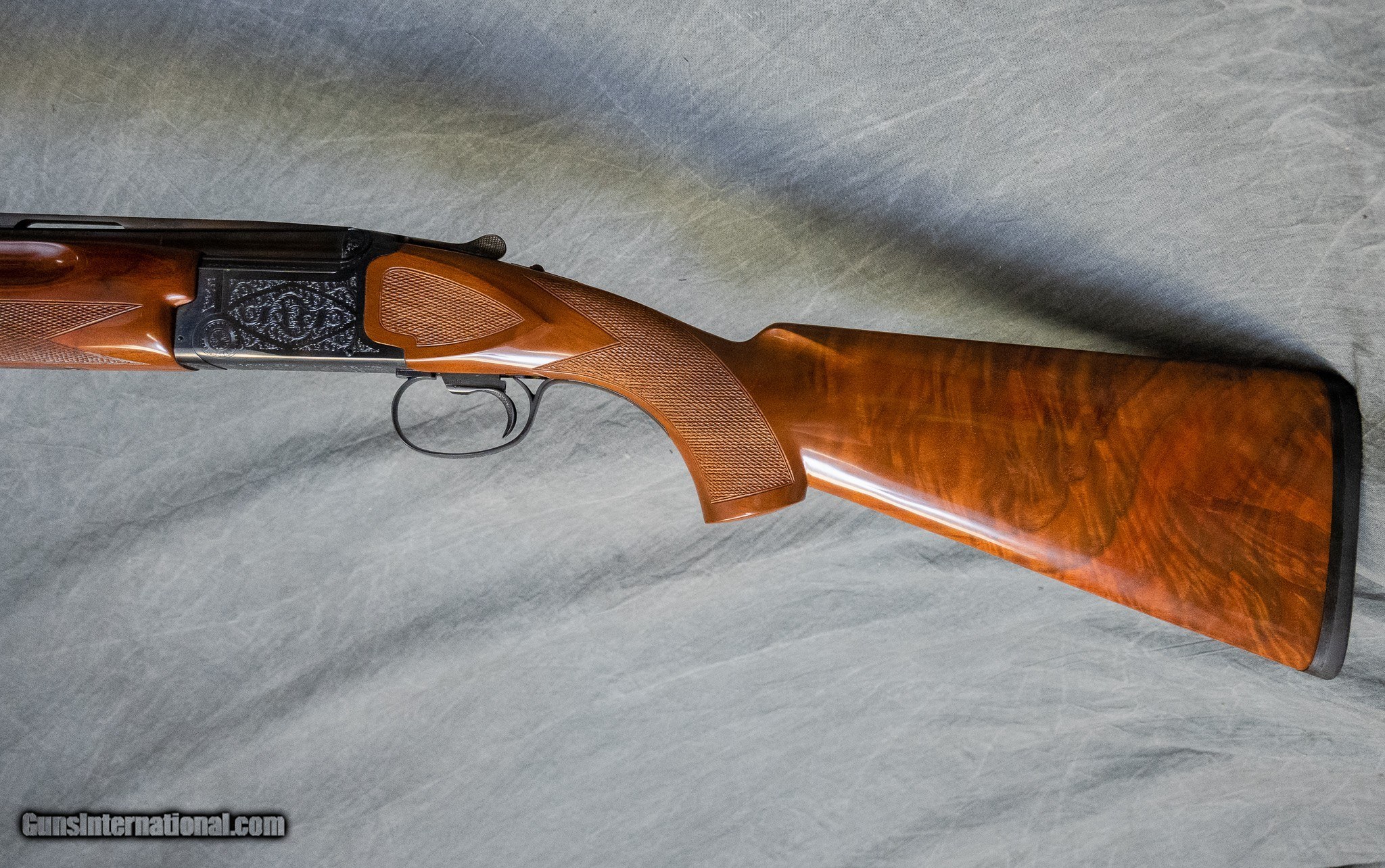 Description: Specifications Maker:WINCHESTER Model:101 CLASSIC DOUBLES FIELD Gauge/Caliber:20 GA Barrel Length:28" Chambers:2 3/4" & 3" Rib Design:VENTILATED Weight:6lbs 15oz Bore/Chokes Choke Tubes:WINCHOKES 2 SKT, 1 IC, 1 MOD & 1 FULL Stock Dimensions Drop At Comb:1 1/2" Drop At Face:1 13/16" 4 1/2" Drop At Heel:2 1/4" Cast At Face:0 4 1/2" Cast At Heel:1/16" OFF Length Of Pull:14 1/2" Pitch:1 1/2" / 3 DEGREES Special Features: BLUED SCROLL ENGRAVED ACTION EJECTORS WELL FIGURED STOCK FLAT KNOB PISTOL GRIP FLUTED FIELD STYLE FOREARM MANUAL SAFETY VENTILATED SIDE RIBS NO BOX CONDITION: EXCELLENT/ AS NEW Circa:1987/ SERIAL # CBS979 Number:C8506 To see and enjoy the entire inventory of fine shotguns, rifles and handguns on display in the Fieldsport Gun Room, please visit us at: Fieldsportltd/gunroom/all.php SOLD Shotgun Gauge: 20 Gauge |