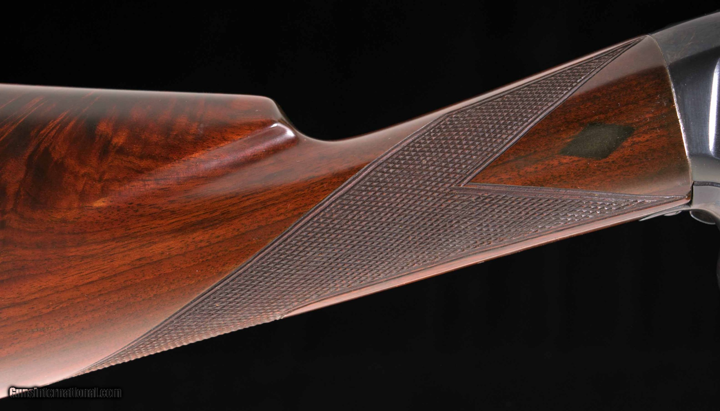 Description: General Specs: Winchester, Year 1927, 12 Gauge, 7lbs 11oz, Chokes Full, LOP 14", DAH 1 3/4", DAC 1 9/16" Serial Number: 505764 The Winchester Model 12 was a famed gun on the trap fields and won many National Championships. Known throughout the world as the very finest pump action shotgun ever made, these guns were hand fitted and machined to perfection. The Trap Grade was a special gun, with deluxe, high figured wood, fine hand cut checkering, fancy checkered forend, and tuned to be smooth as glass in operation. The butt stock had a black diamond inlay just behind the receiver, hence the name “BLACK DIAMOND TRAP”. This fine Winchester Model 12, sn505764 made in 1927, has been well cared for during its 9 decades of use. This gun has been restored and is ONE OF THE FINEST RESTORATIONS I HAVE SEEN…IT IS PERFECTION! (JUST NOTICED THE DING IN FOREND CHECKERING. THAT WILL BE FIXED TO PERFECTION BEFORE SALE) The gun is historically correct in all ways and is 100% new condition and mechanically excellent as well. The action is still tight and operates smoothly, 30” Full choke barrel has mirror perfect bores and Winchesters solid rib. English style stock is highly figured feather-crotch black walnut, and measures 14” to the Winchester butt plate, all to factory specs. What a great gun for waterfowl, long pheasants, and the fine game of trap, and a collectible Winchester to boot. The gun will continue to gain value as you enjoy its use. Thanks for looking. Barrels Barrel Length: 30" Chokes: 0.034 full Bores: excellent Bore Diameter: 0.73 Wall Thickness: 0.039 % Blue: 100% Chambers: 2 1/2" Ribs: solid rib Sights: white bradley front Action Action: pump Case Color: rec blue 100% Screws: perfect Trigger Type: single, crisp Trigger Guard Color: 100% Stock Type: english stock/small forend LOP: 14" LOP To End Of Wood: 13 3/4" DAH: 1 3/4" DAC: 1 9/16" Cast: 1/8" off Checkering Condition: perfect Butt Treatment: winchester plate There are more photos upon request. We offer a 30 day mechanical warranty on this fine firearm. Call us for full details. PLEASE SEE MY OTHER FINE VINTAGE FIREARMS. Just open one of my ads and click on the line that says “see all items from this seller” and a very nice list of fine sporting and collectible arms will appear. I have many more fine sxs shotguns not yet listed. Thanks for looking! Payment Methods: Credit Card, Money Order, Certified Check, Personal Check, Wire Transfer (Advertised price represents the 3% cash discount price. Actual price if paid by credit card is 3% higher cost) Inspection Period / Return Policy: Three Days from the date the item was received. Sales Tax: 6% Michigan Only Shipping & Insurance: Ground $45.00 We ship internationally! Item Condition: Used Requires FFL?: Yes Call to purchase #616-292-6240. If you have any questions please call or email us. Thanks! Vintage Firearms Inc We employ a full time gunsmith on premises and can perform alterations to suit your needs within a few weeks of purchase. Common requests are: -stock bending to suit your particular requirements -addition of any specified butt pad to increase length of pull -alteration of chokes to suit your shooting preferences -lengthening of chambers and forcing cones -darkening stock color with penetrating stains -restoring any part of the gun including rust blue, charcoal blue, bone and charcoal case color, wood restoration and checkering recuts. If you like one our guns but it needs "tweaked", let us know and we can quote you a time and price. Some enthusiasts like the guns "as found" and others want them "just so". We often list guns as found and let the particular buyer choose how they want their gun to fit or look. SOLD Curio/Relic: Yes |