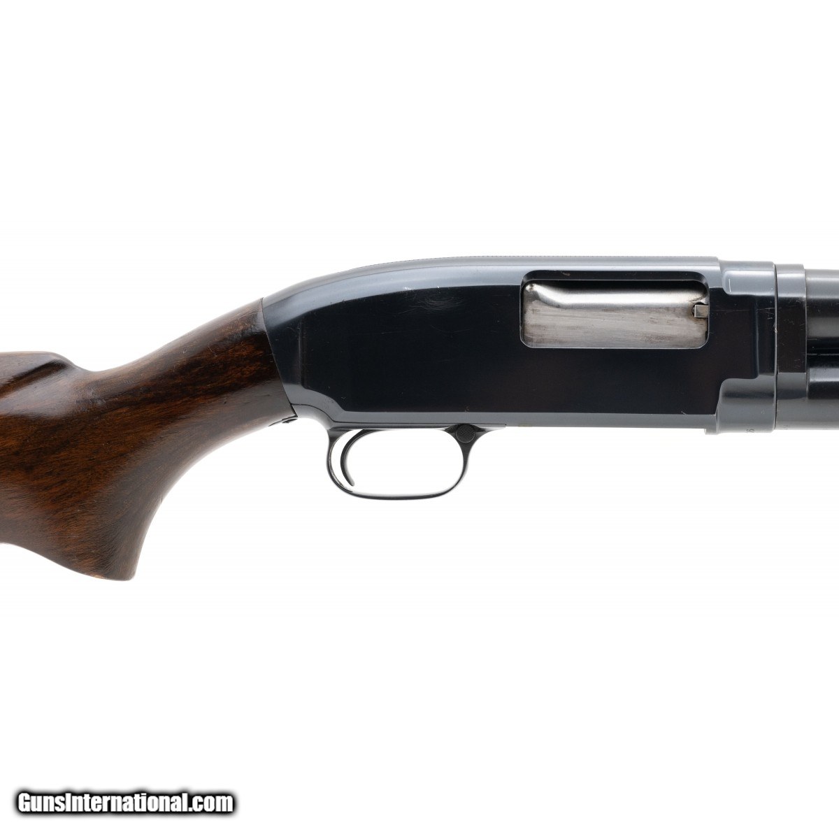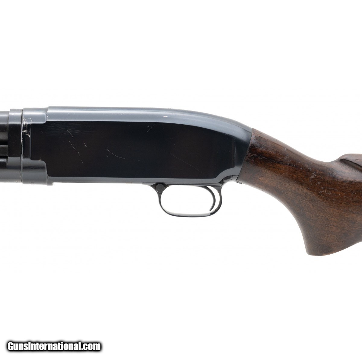 SN:901698. Manufactured circa 1941, 12 Gauge with a 28"" barrel. Bore is in excellent condition. pump action shotgun with wear on left side of recvier, modify choke, wooden stock and 14""LOP. Overall condition is good to very good with handling wear.